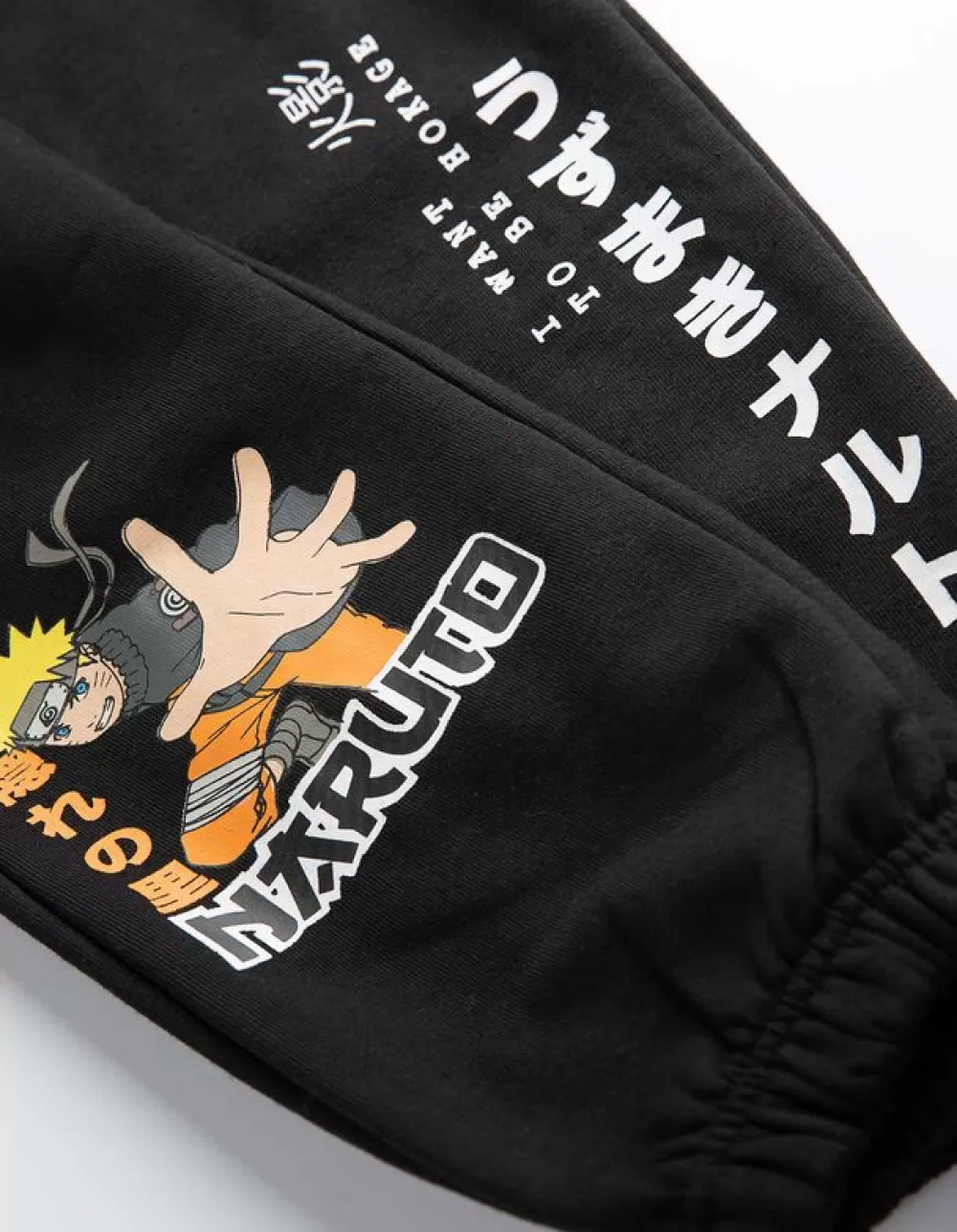 ZwartNarutoRegular WaistRinse WashedNormale LengteSweatstofKoordPrintElastische Band
