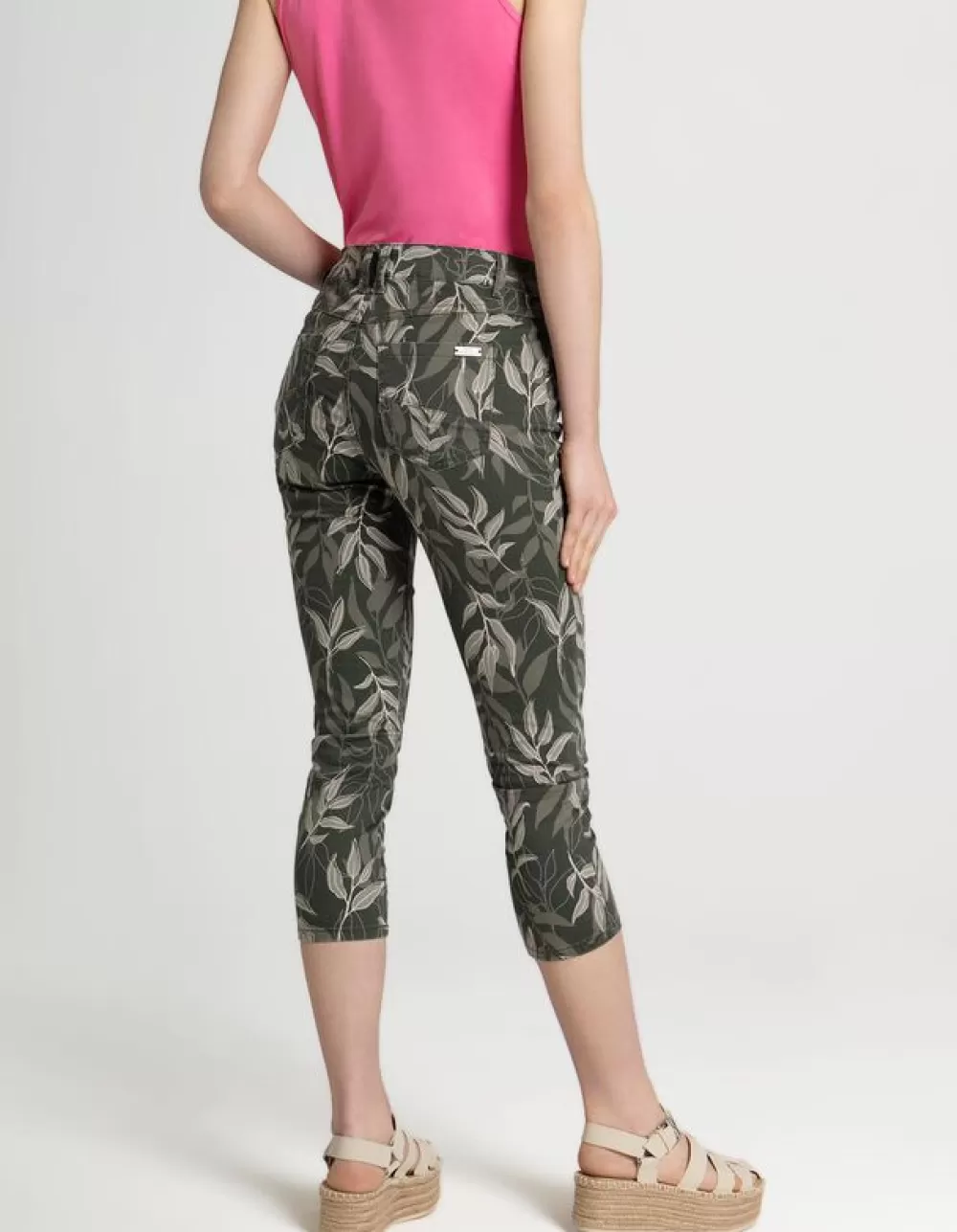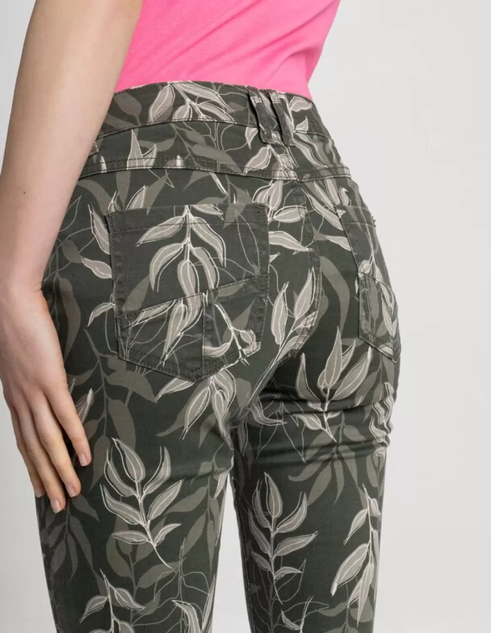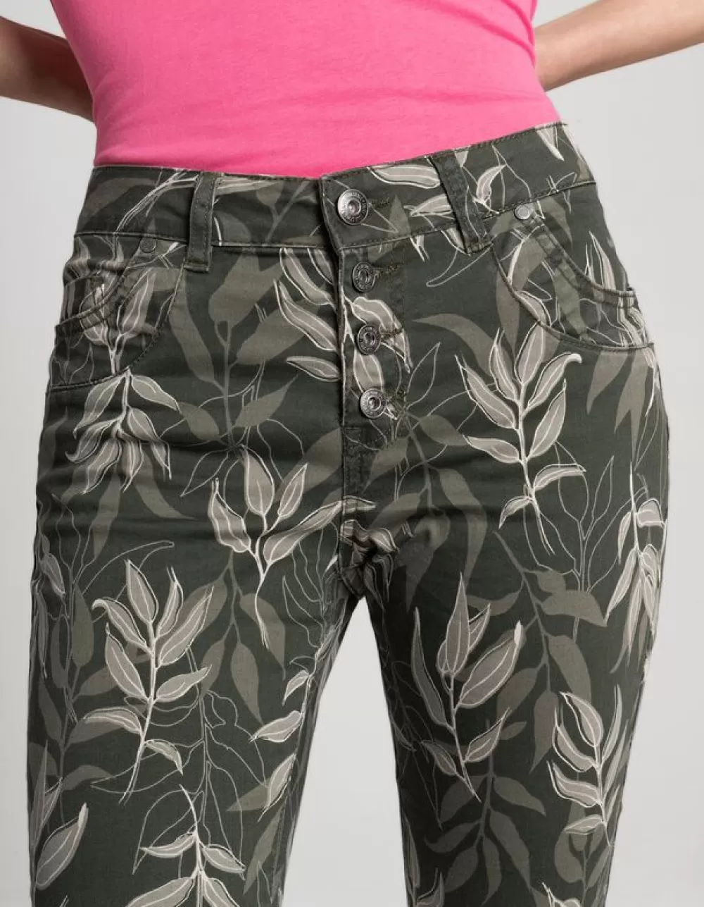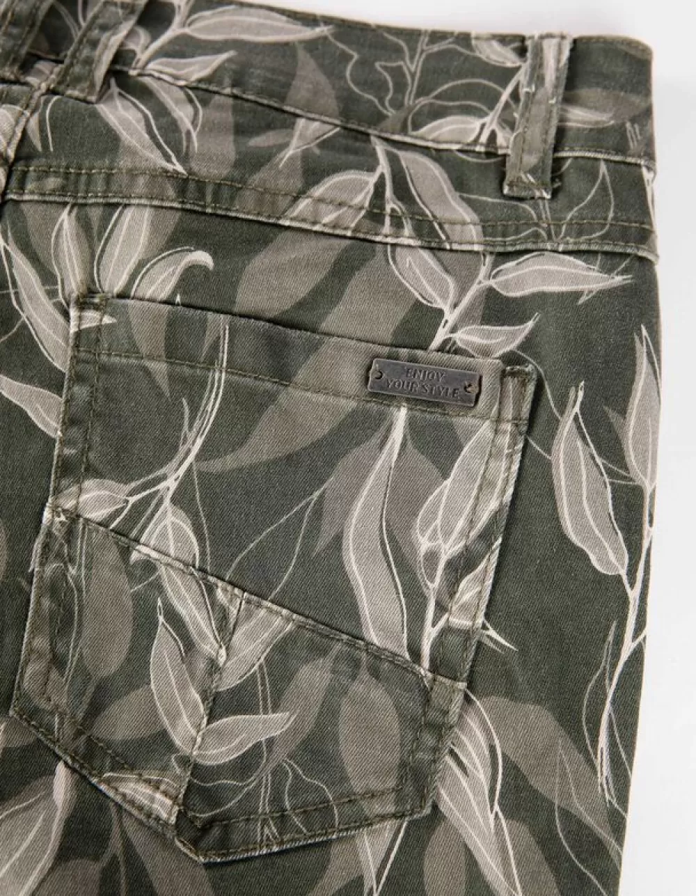 DonkergroenMotief All-OverRegular WaistKnoopsluitingMet Stretch