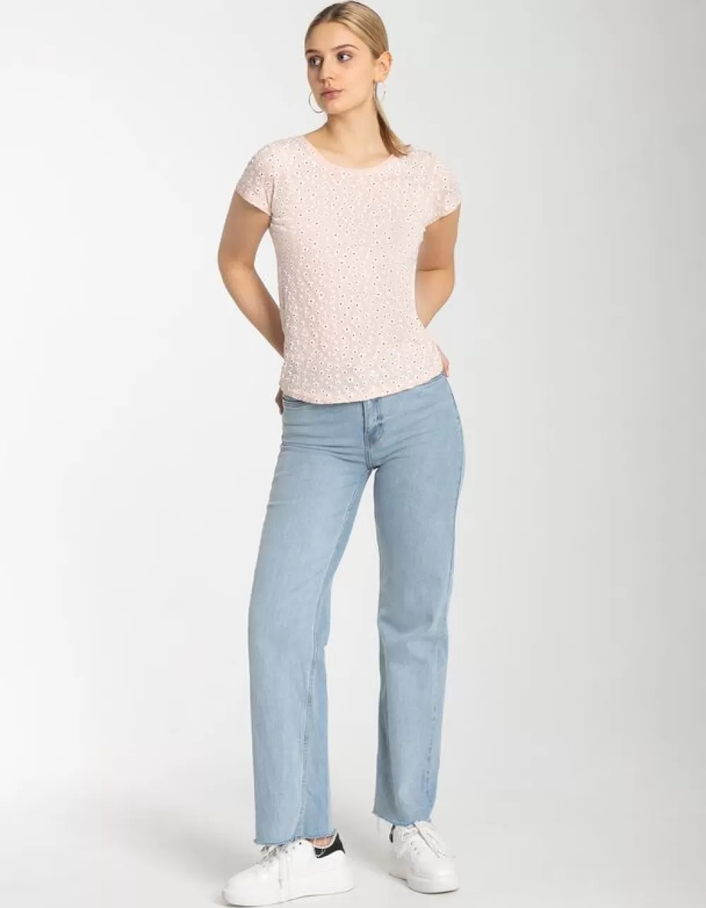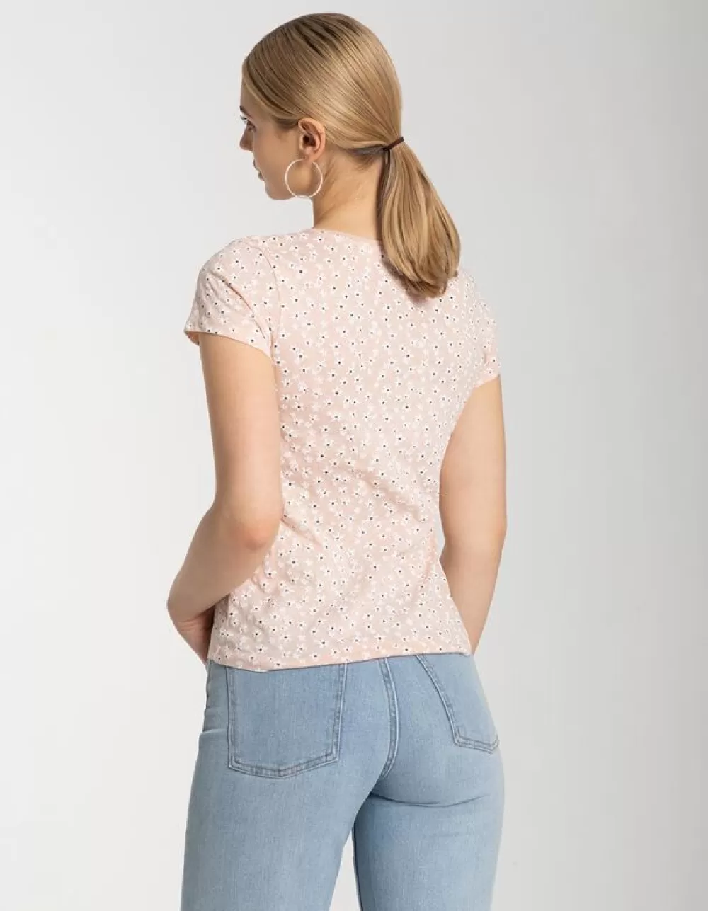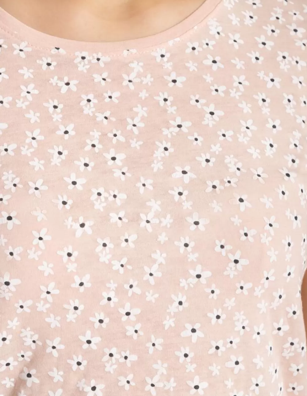 RozeBloemenmotiefRonde HalsKorte MouwenKatoenZacht Materiaal