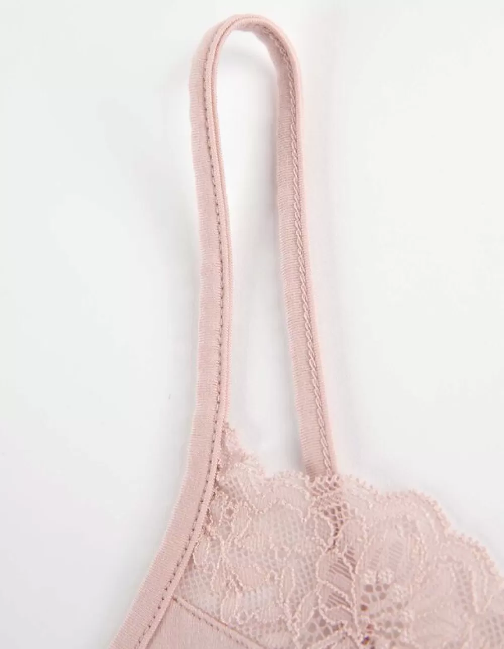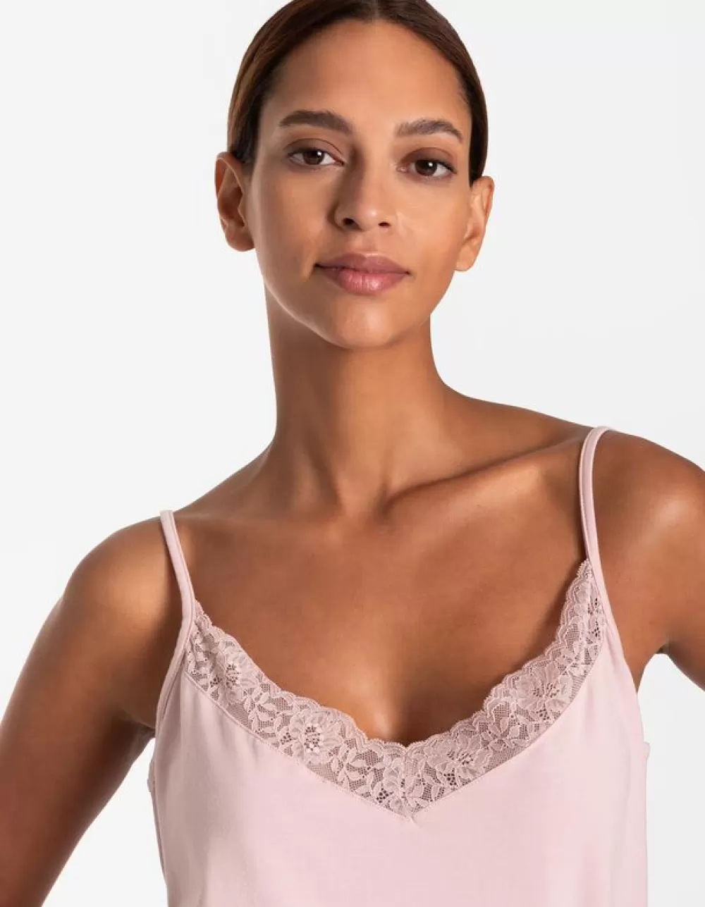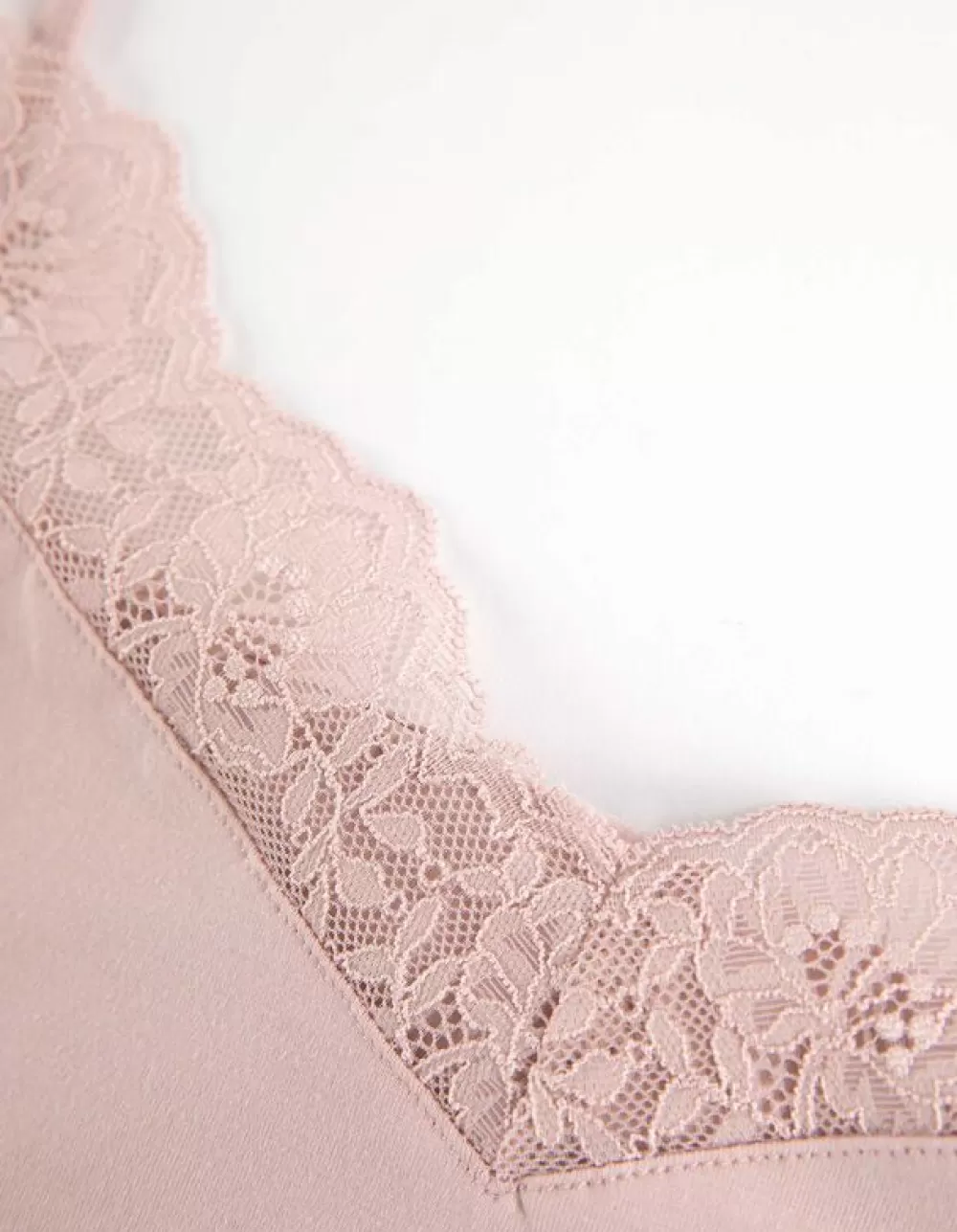 RozeEffenV-HalsSpaghettibandjesModaalMet KantMet Stretch