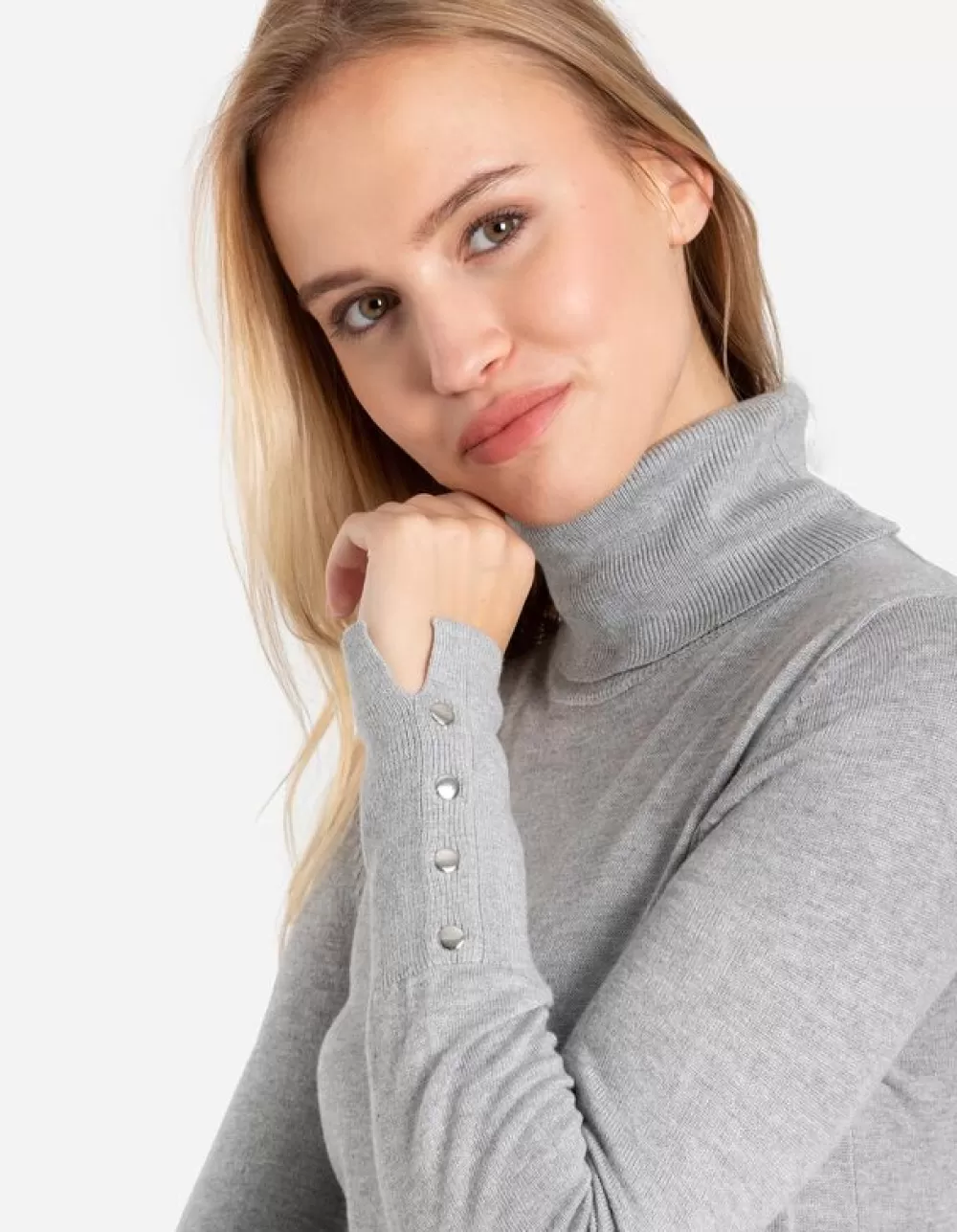 GrijsGemeleerdColViscosemixZonder SluitingMet StretchSierknopen