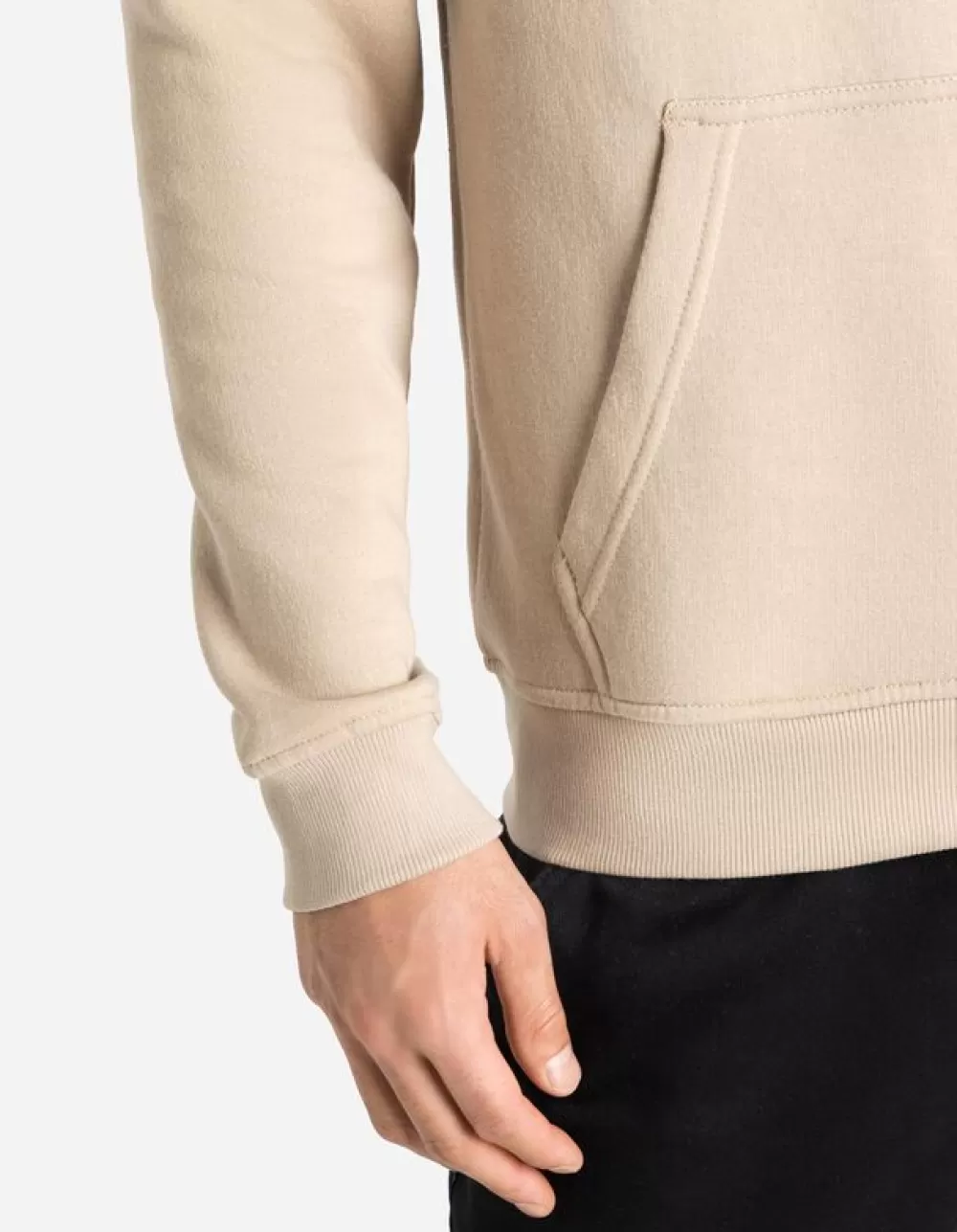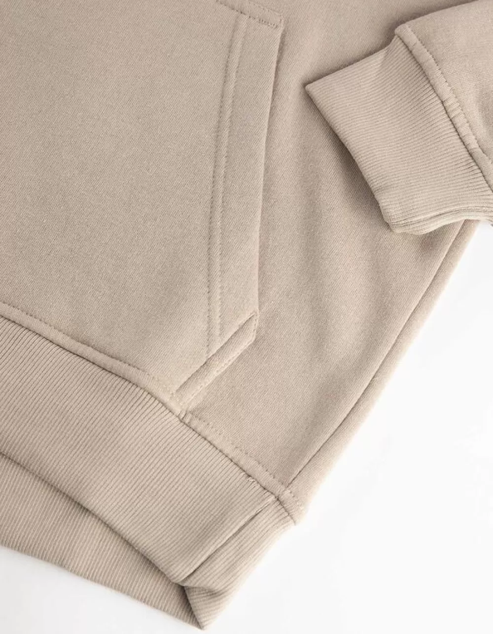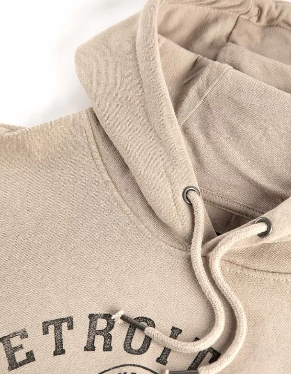 BeigeEffenKapLange MouwenSweatstofKoordTekstprintKangoeroezak