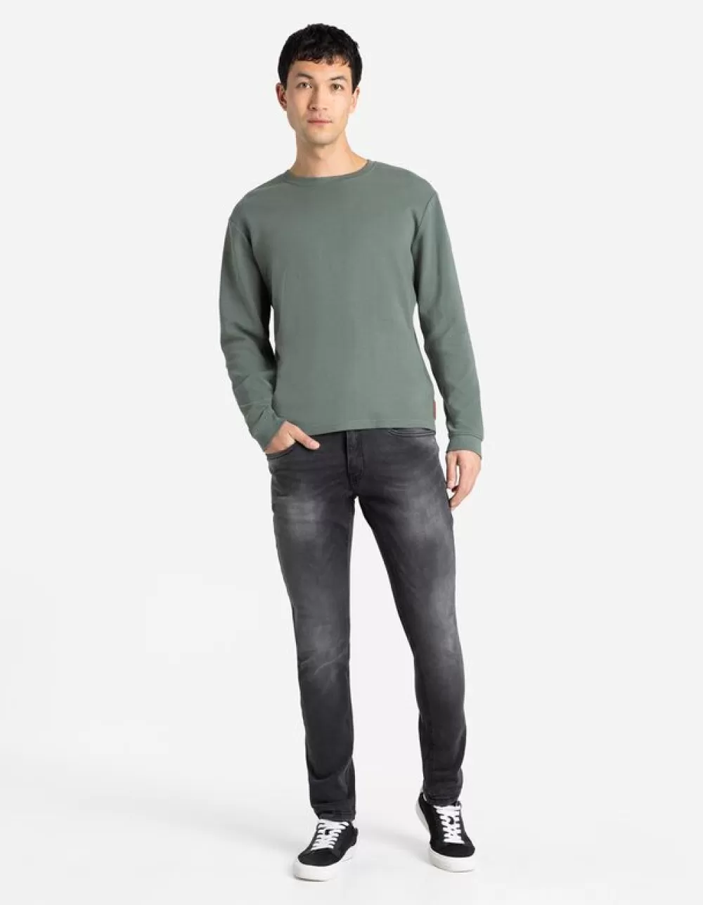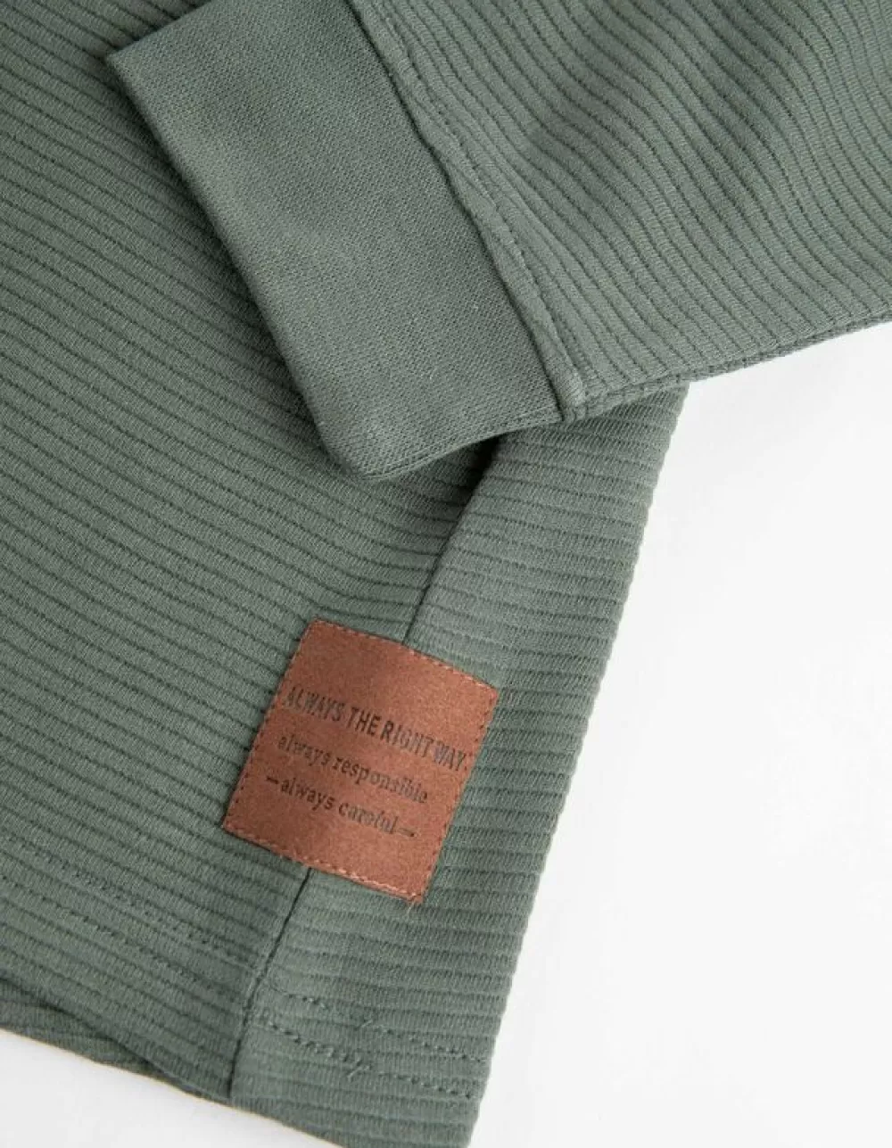 DonkergroenEffenRonde HalsLange MouwenKatoenLabelElastische RandenLabel