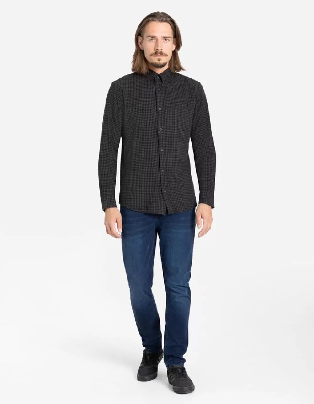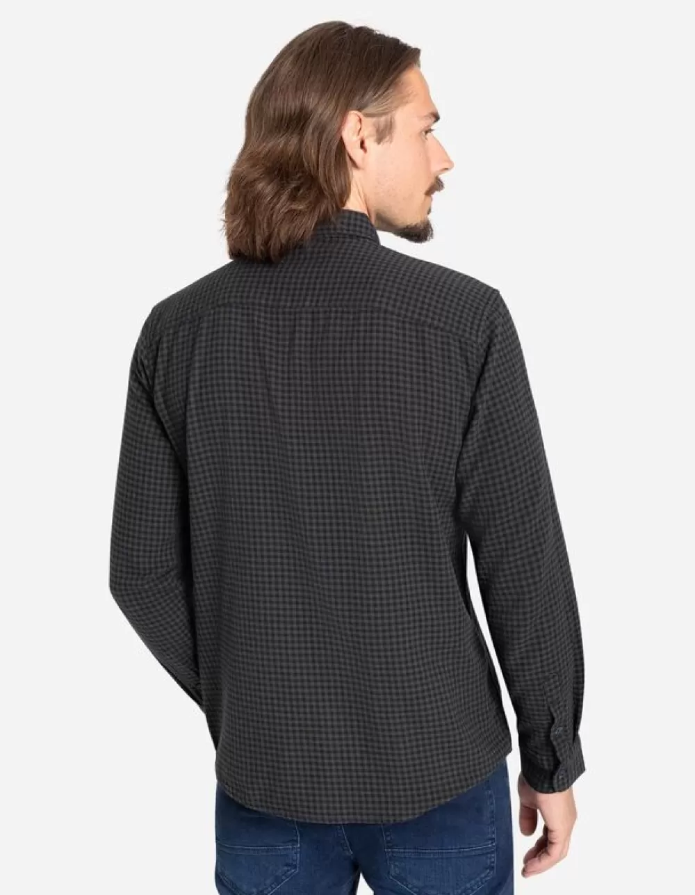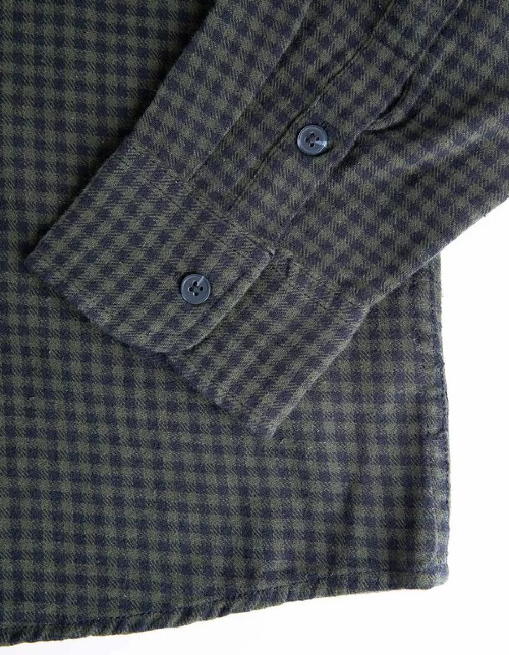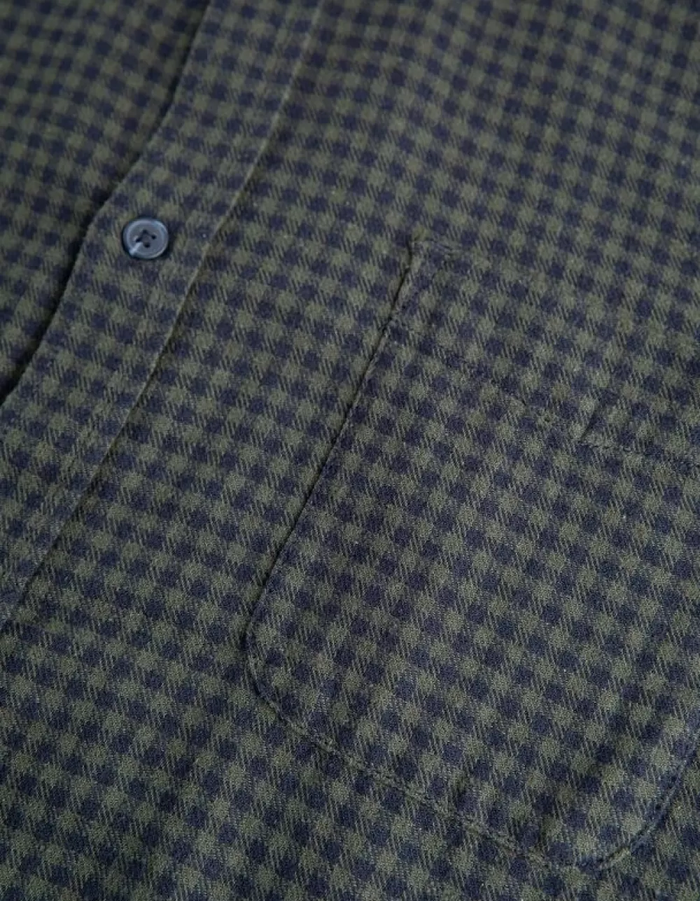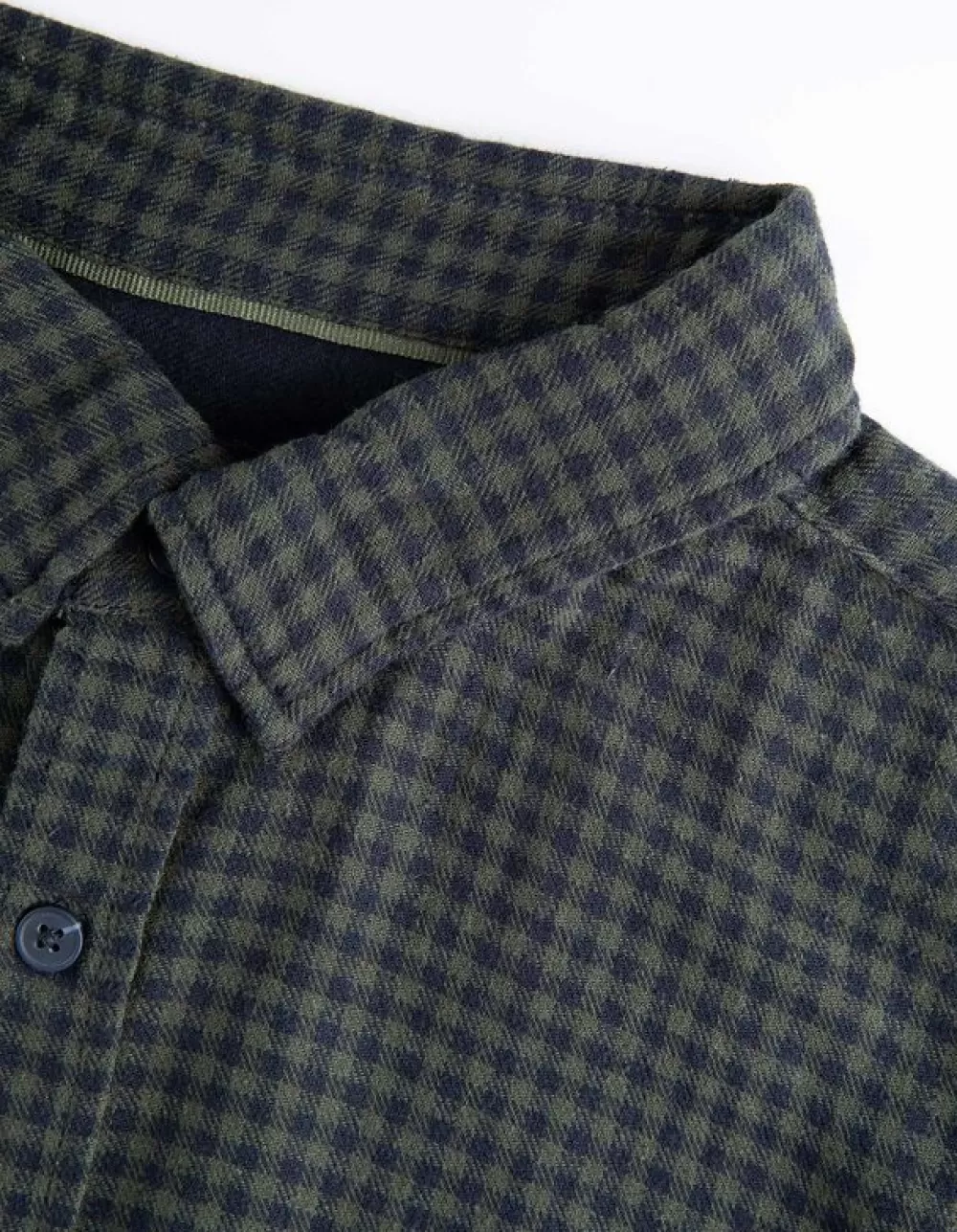 DonkergroenRuitmotiefOverhemd KraagLange MouwenKatoenKnoopsluitingBorstzakElastische Randen