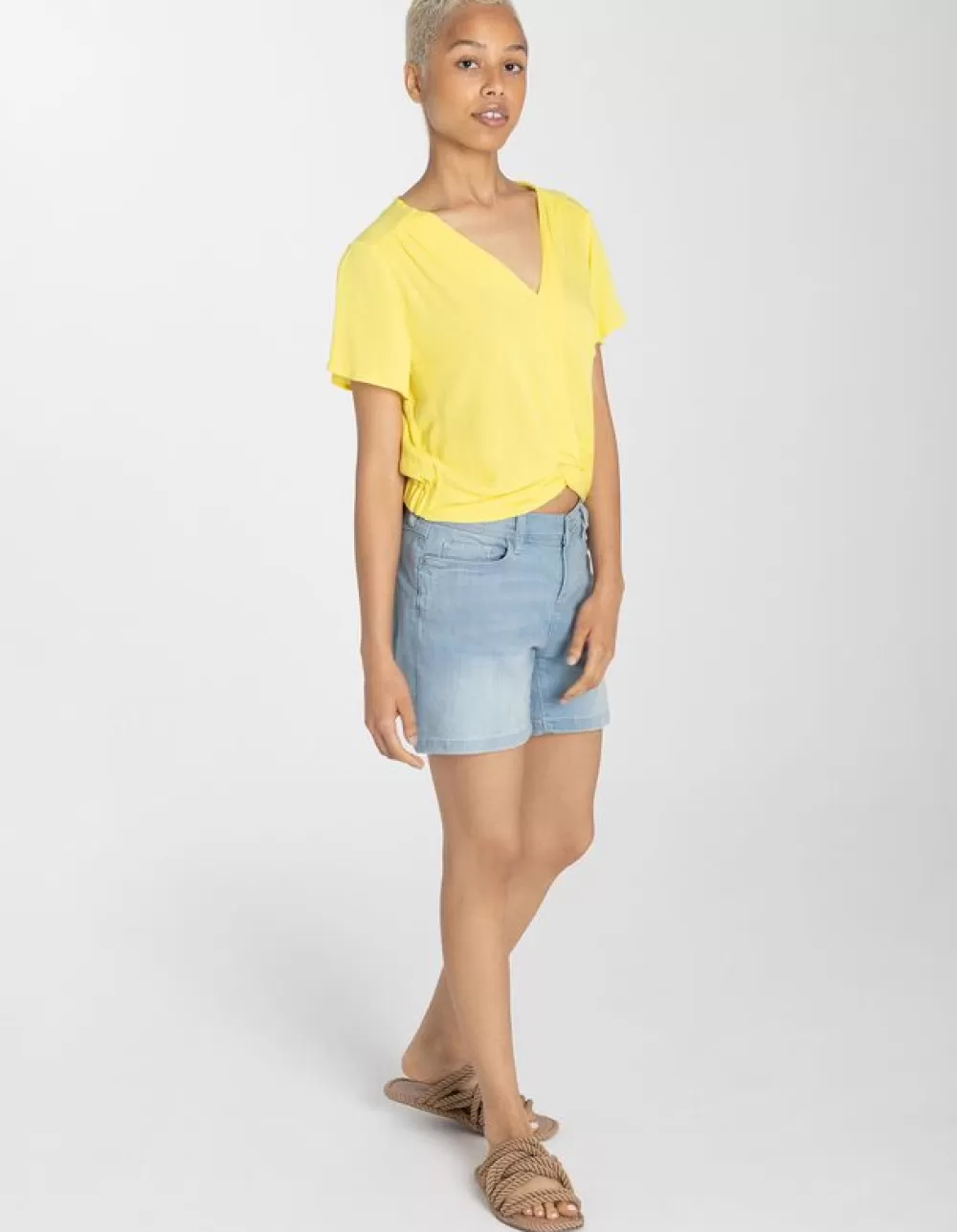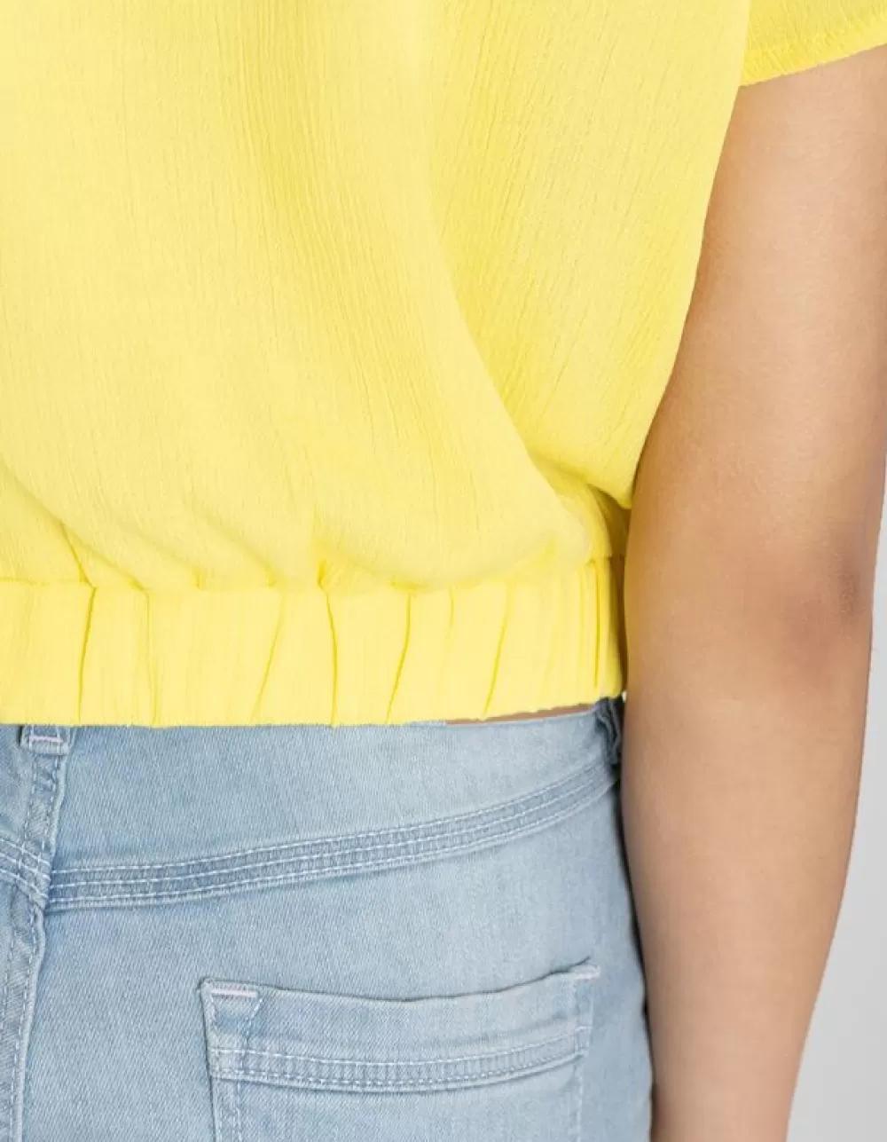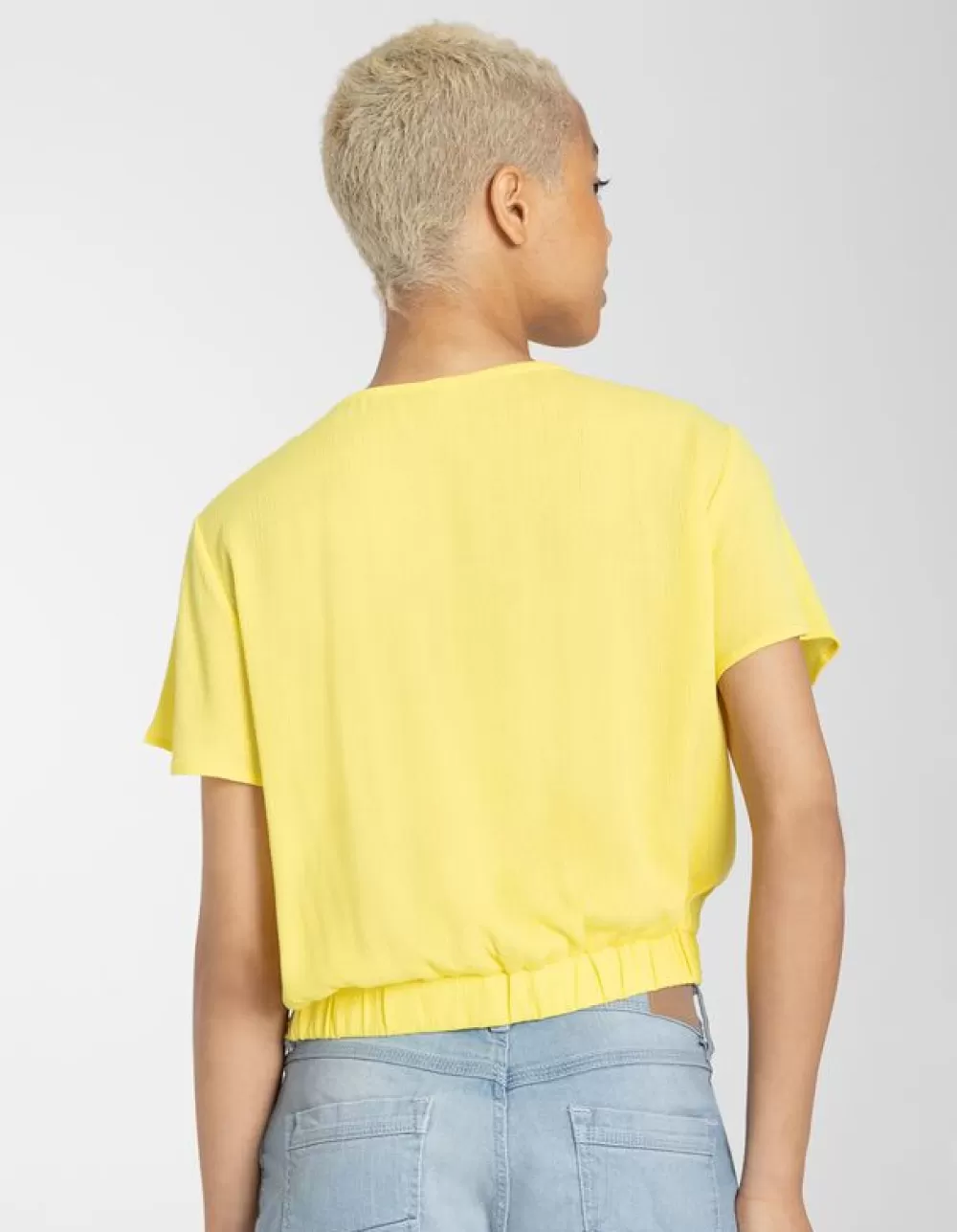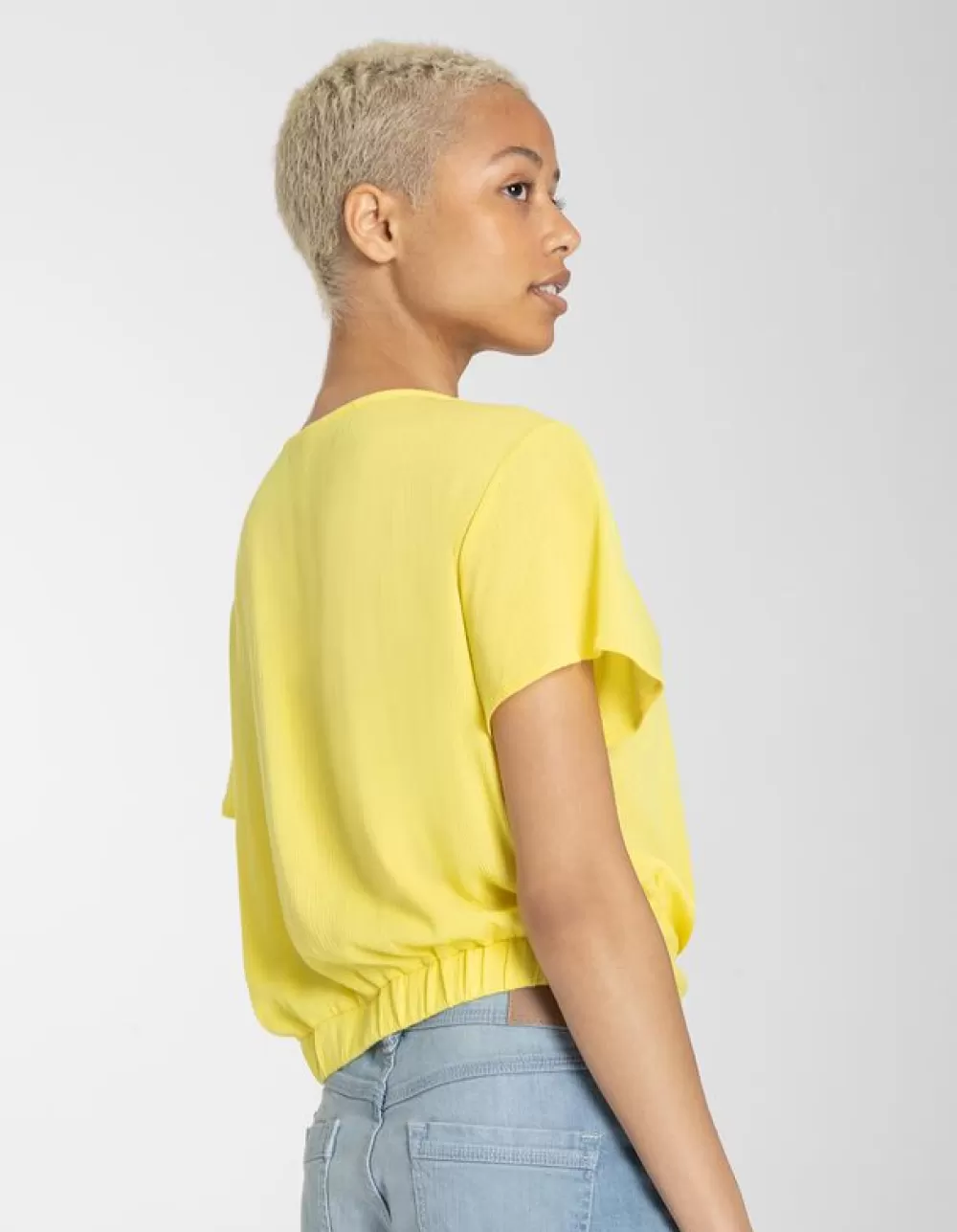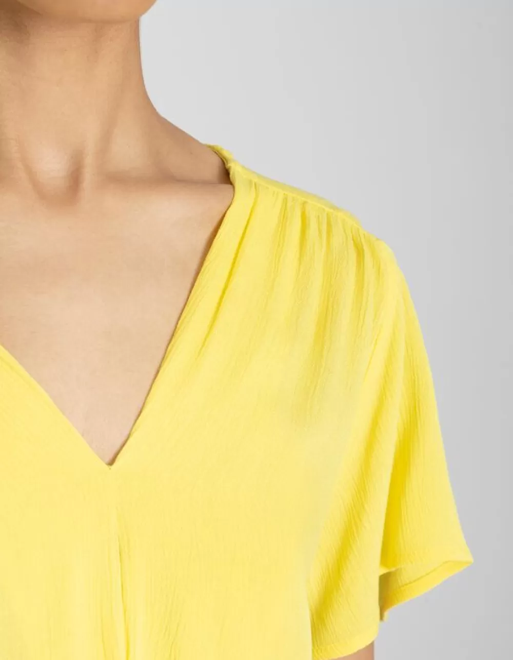 LichtgeelEffenV-HalsMouwen Met VolantsViscoseGeknoopt Detail