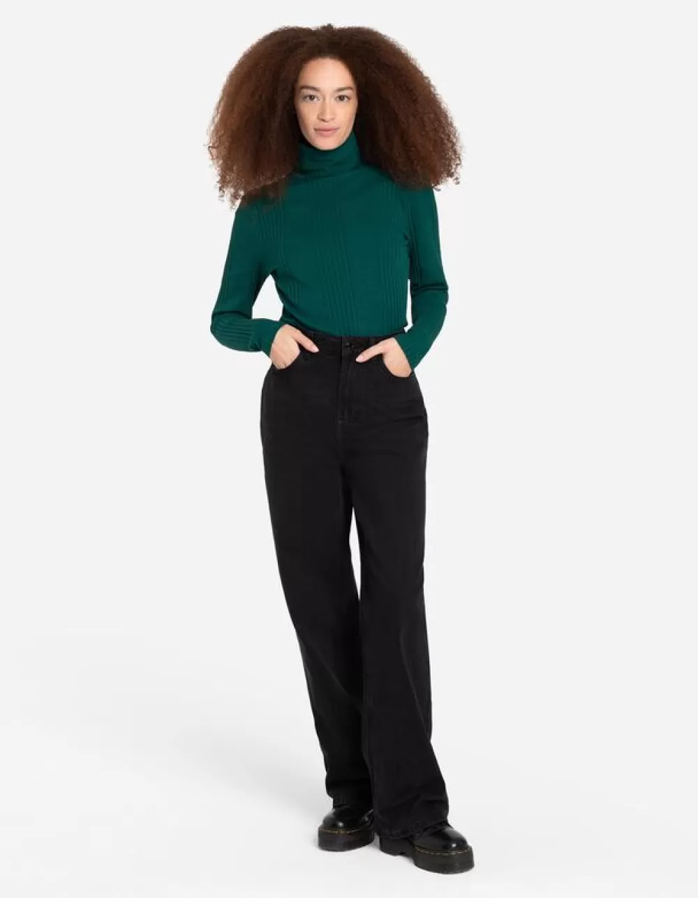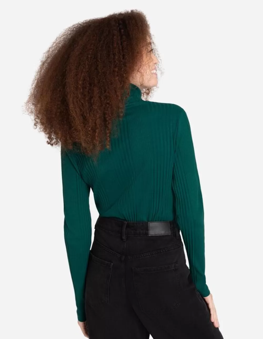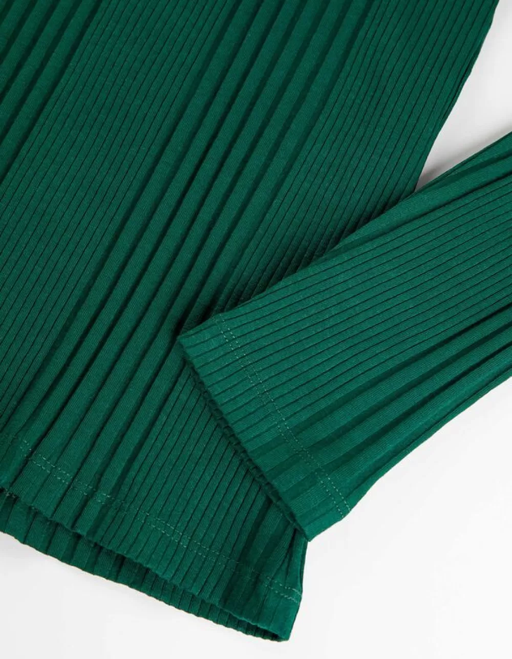 DonkergroenEffenColLange MouwenKatoenmixGeribde Structuur