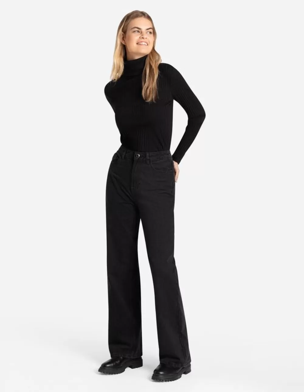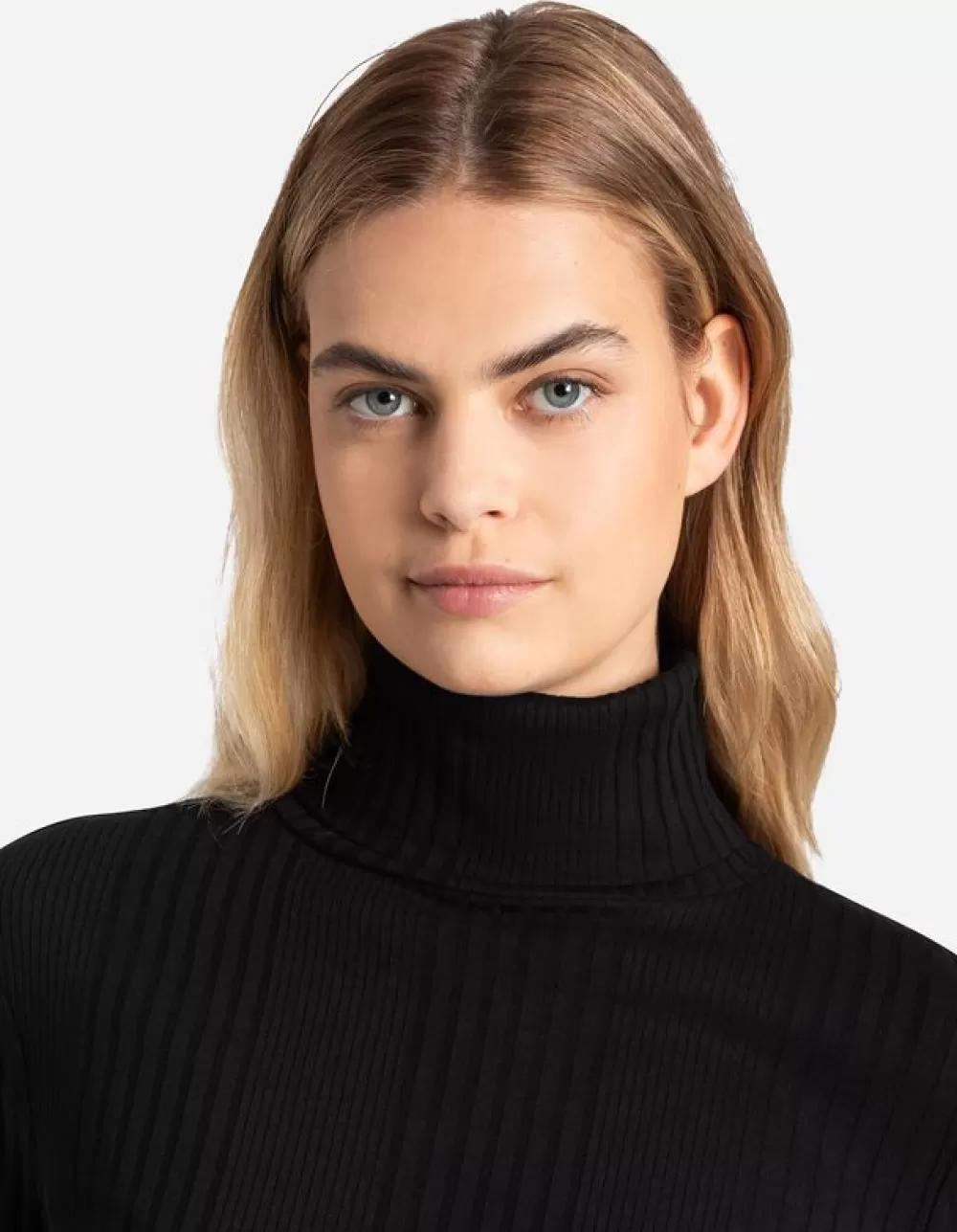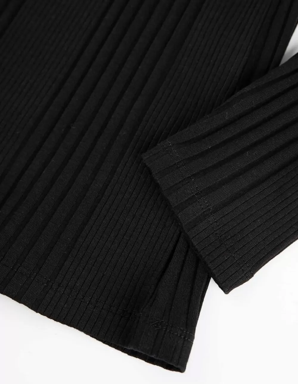 ZwartEffenColLange MouwenKatoenmixGeribde Structuur