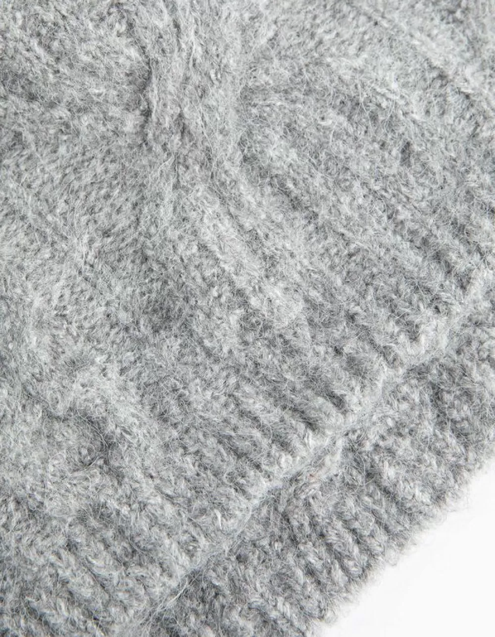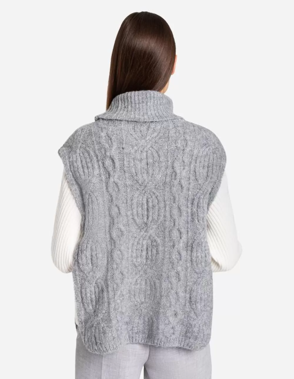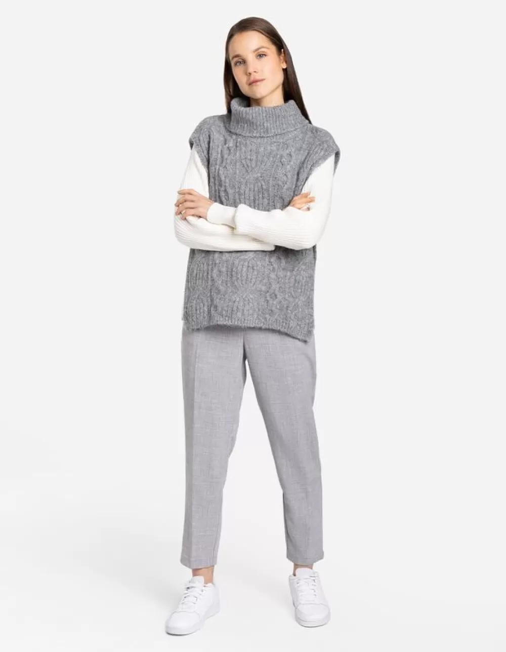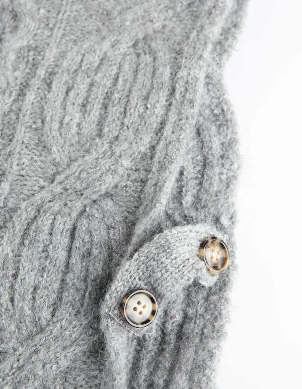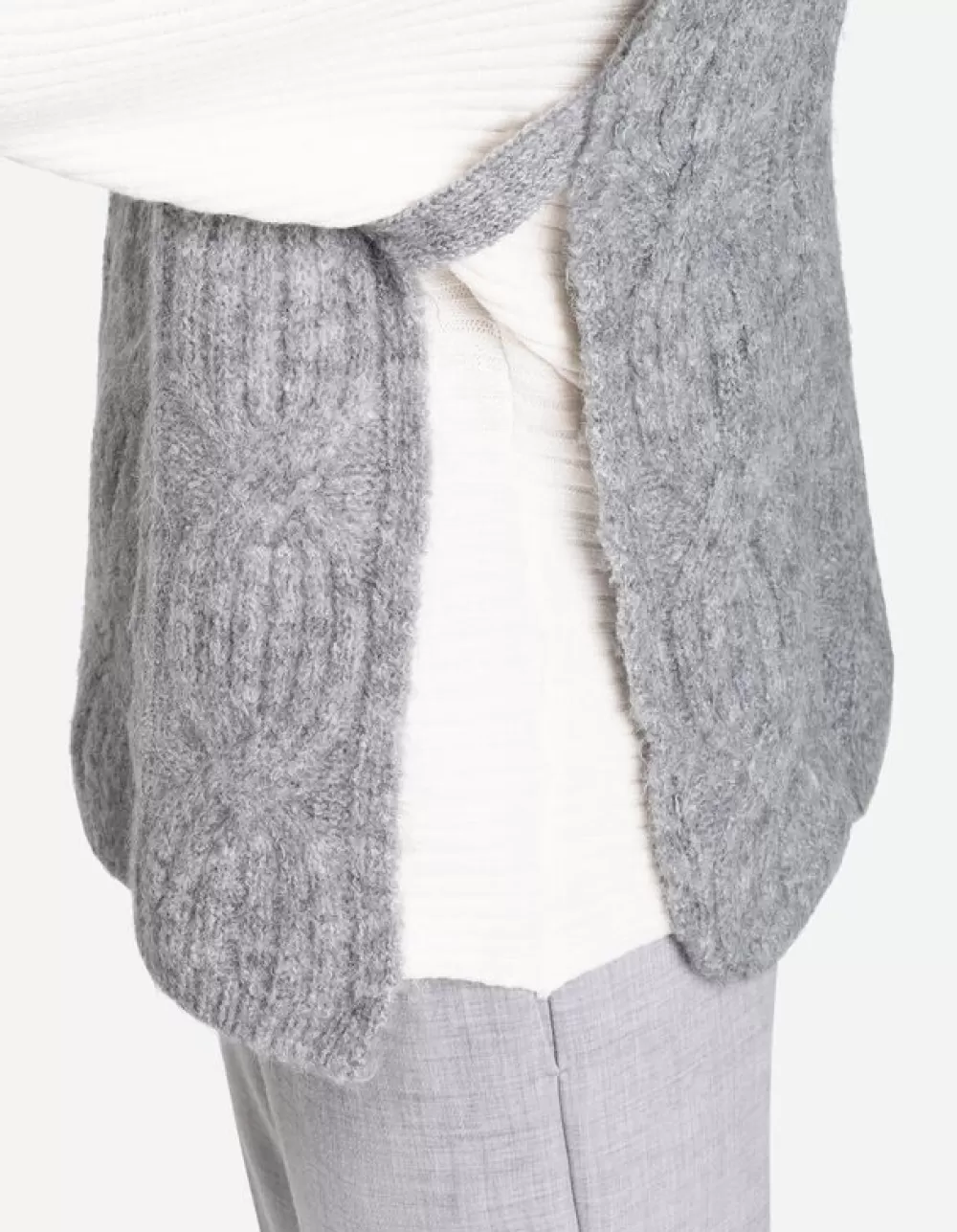 GrijsKabelpatroonColMouwloosWol LookZonder SluitingZacht Materiaal