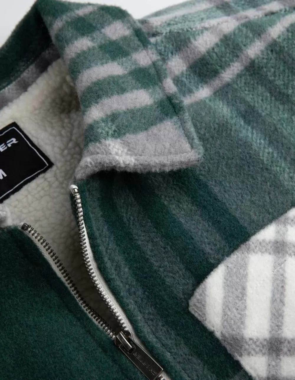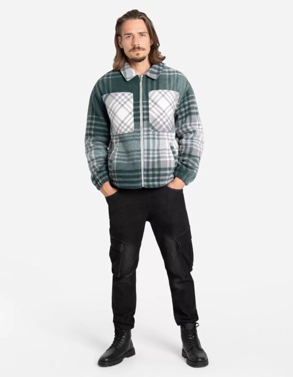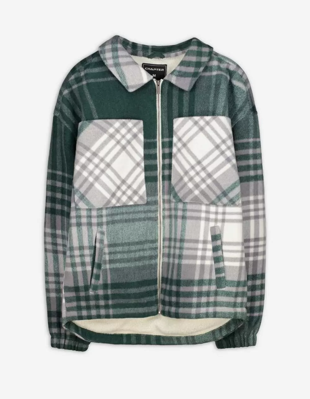 DonkergroenRuitmotiefOverhemd KraagLange MouwenTeddyRitssluitingBorstzakSteekzakken