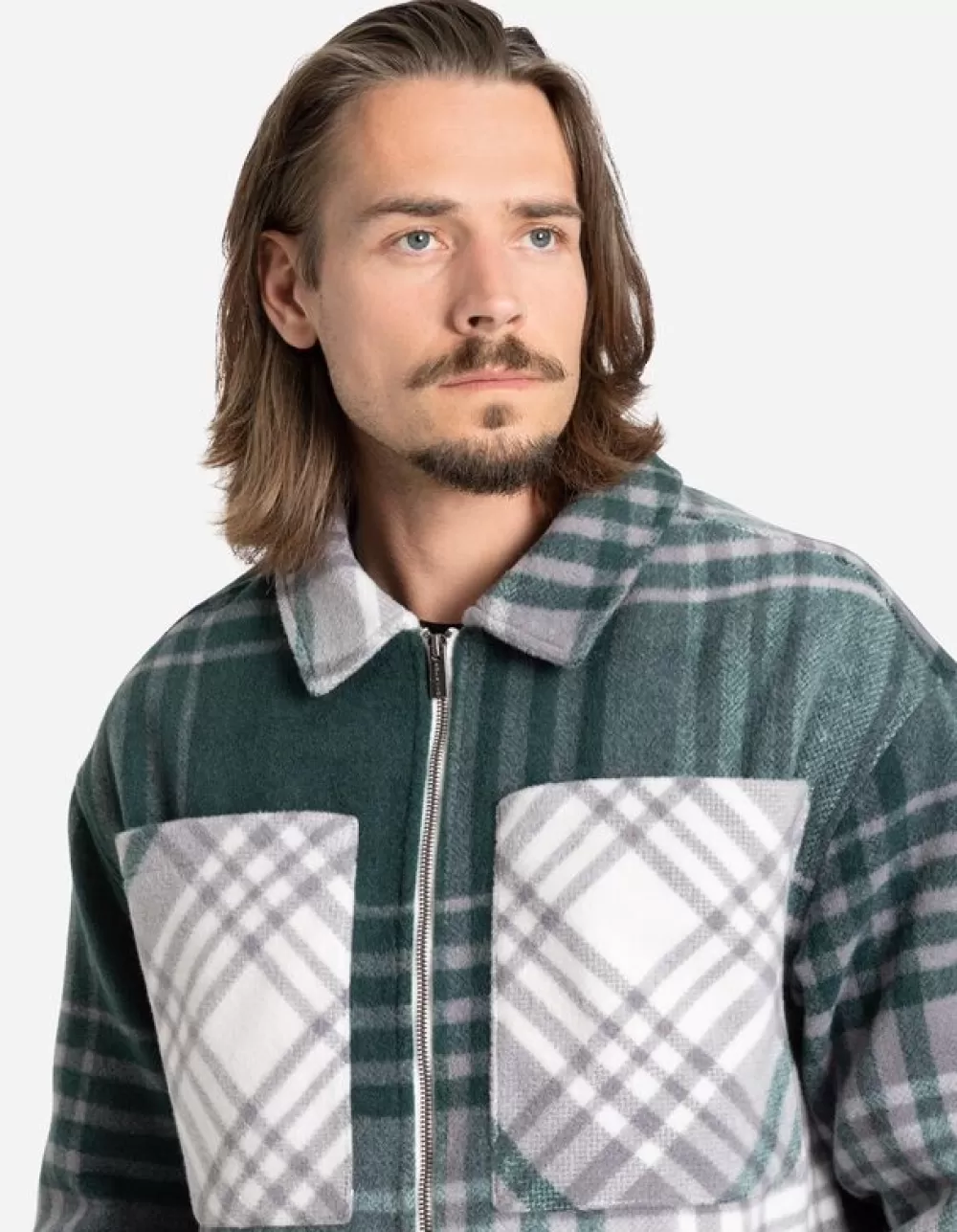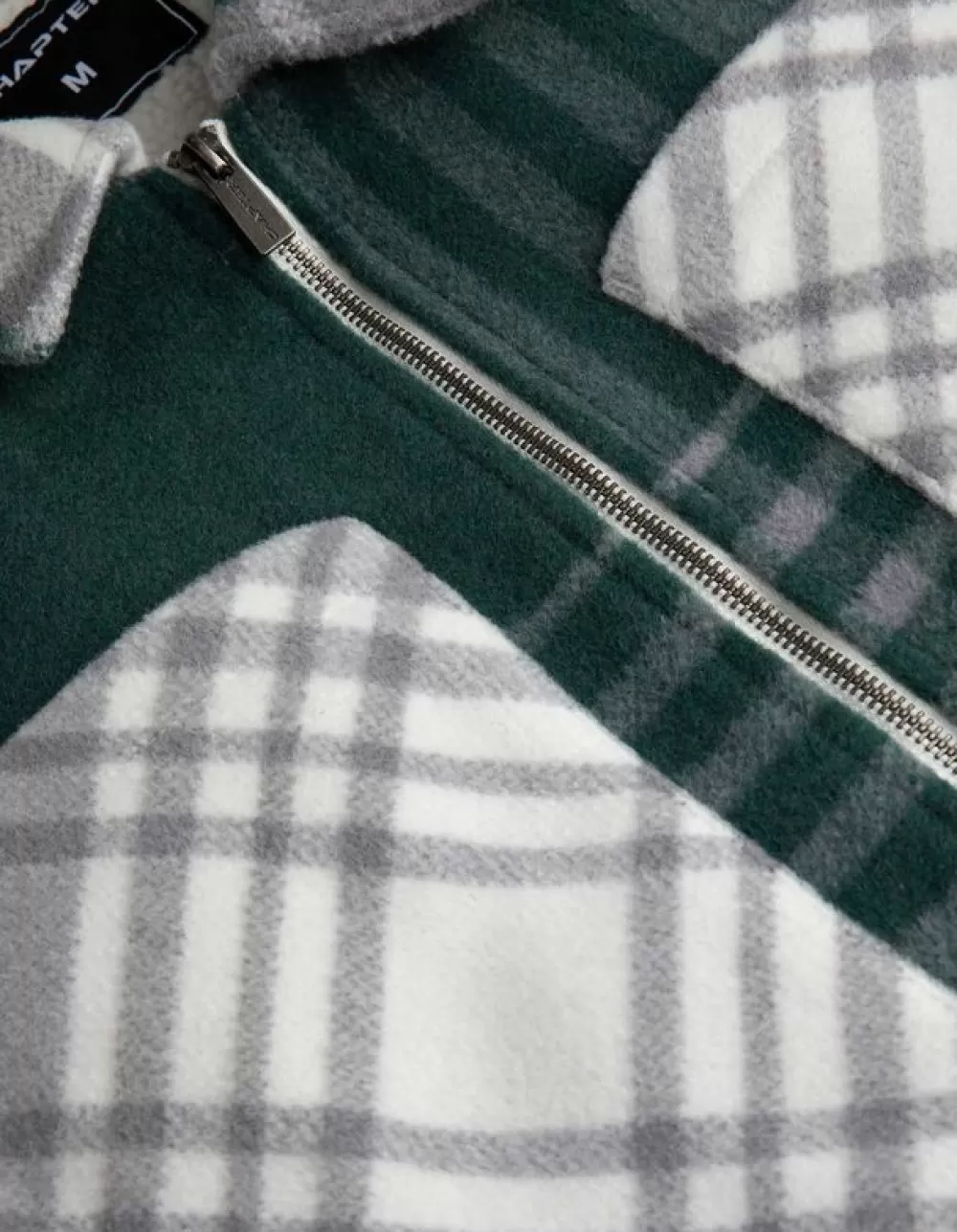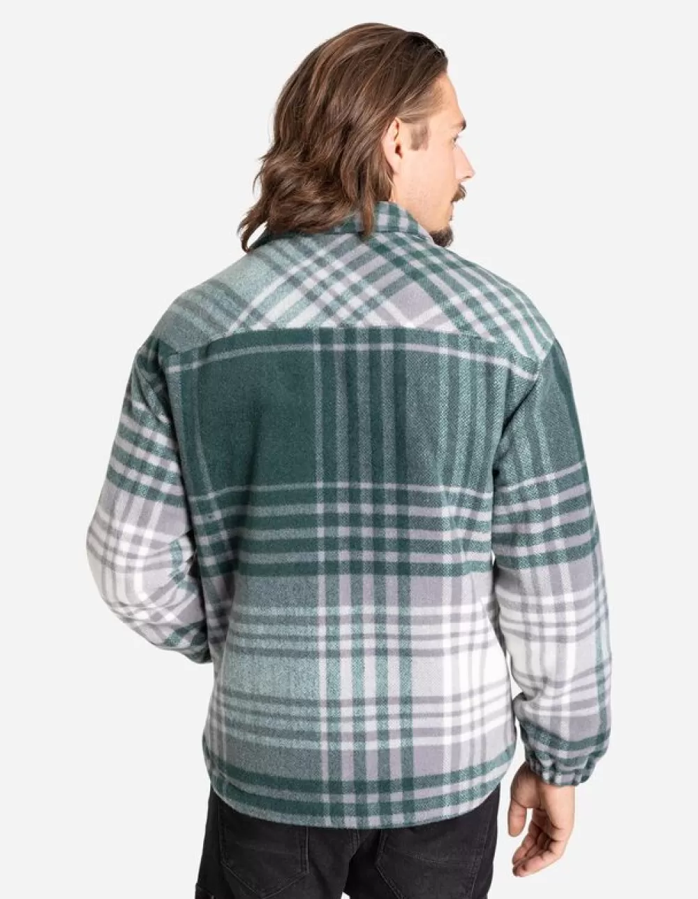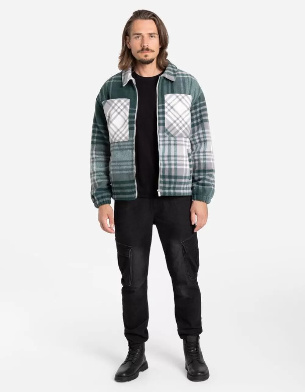 DonkergroenRuitmotiefOverhemd KraagLange MouwenTeddyRitssluitingBorstzakSteekzakken
