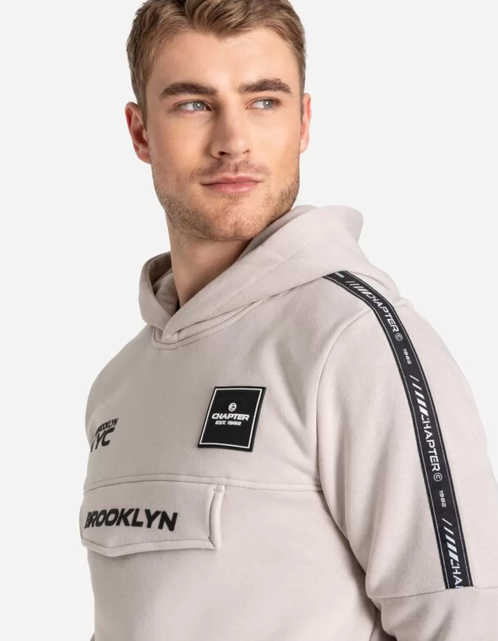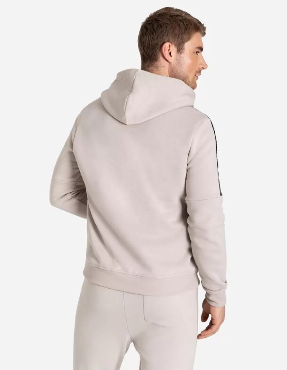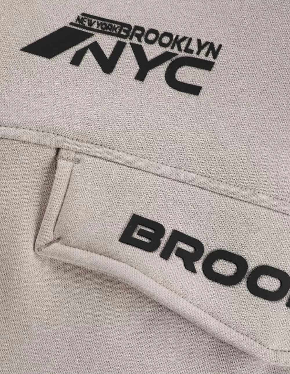 BeigeEffenLoose FitSweatstofCapuchonLabelTekstprint