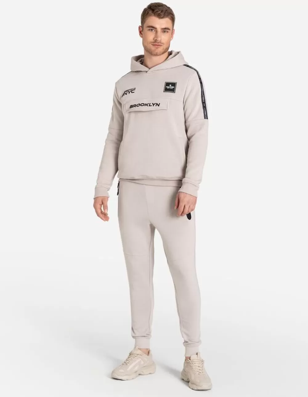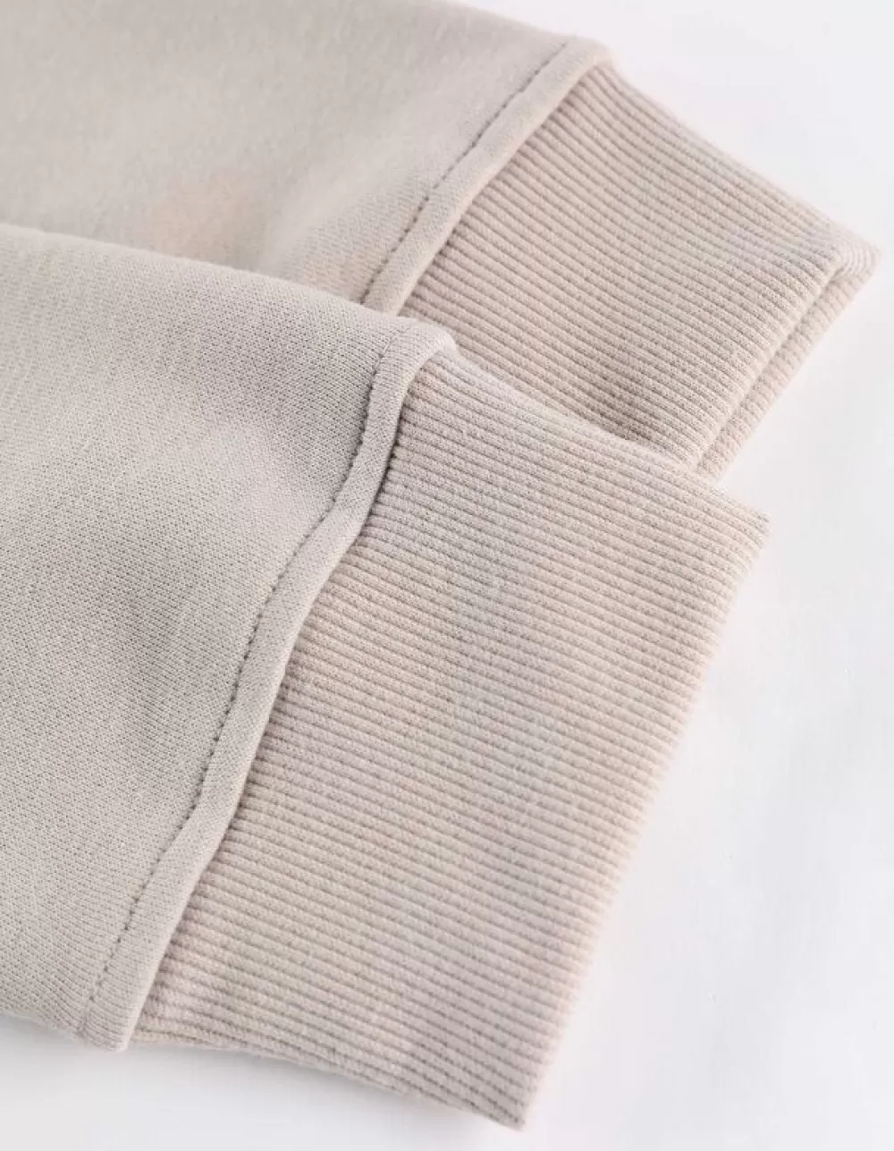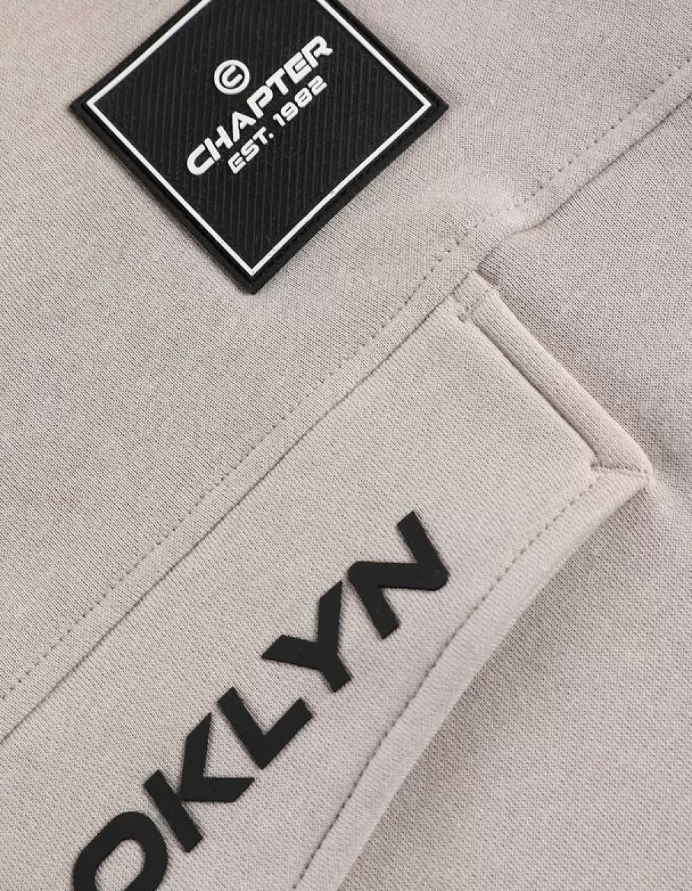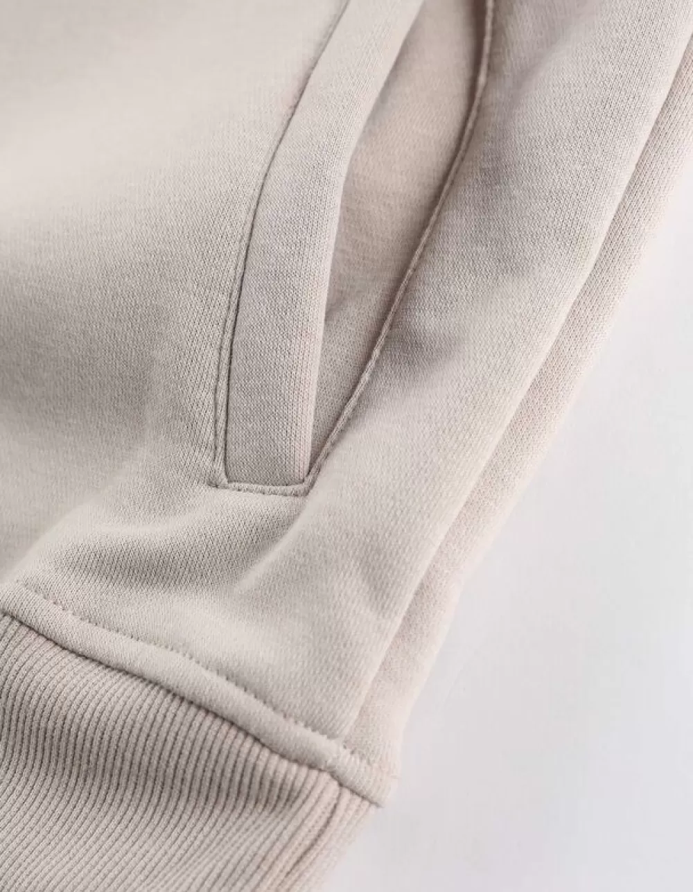 BeigeEffenLoose FitSweatstofCapuchonLabelTekstprint