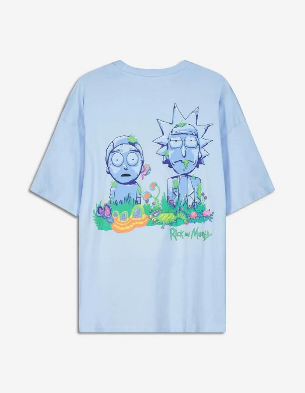 LichtblauwEffenRonde HalsKorte MouwenKatoenPrintPrintPrint
