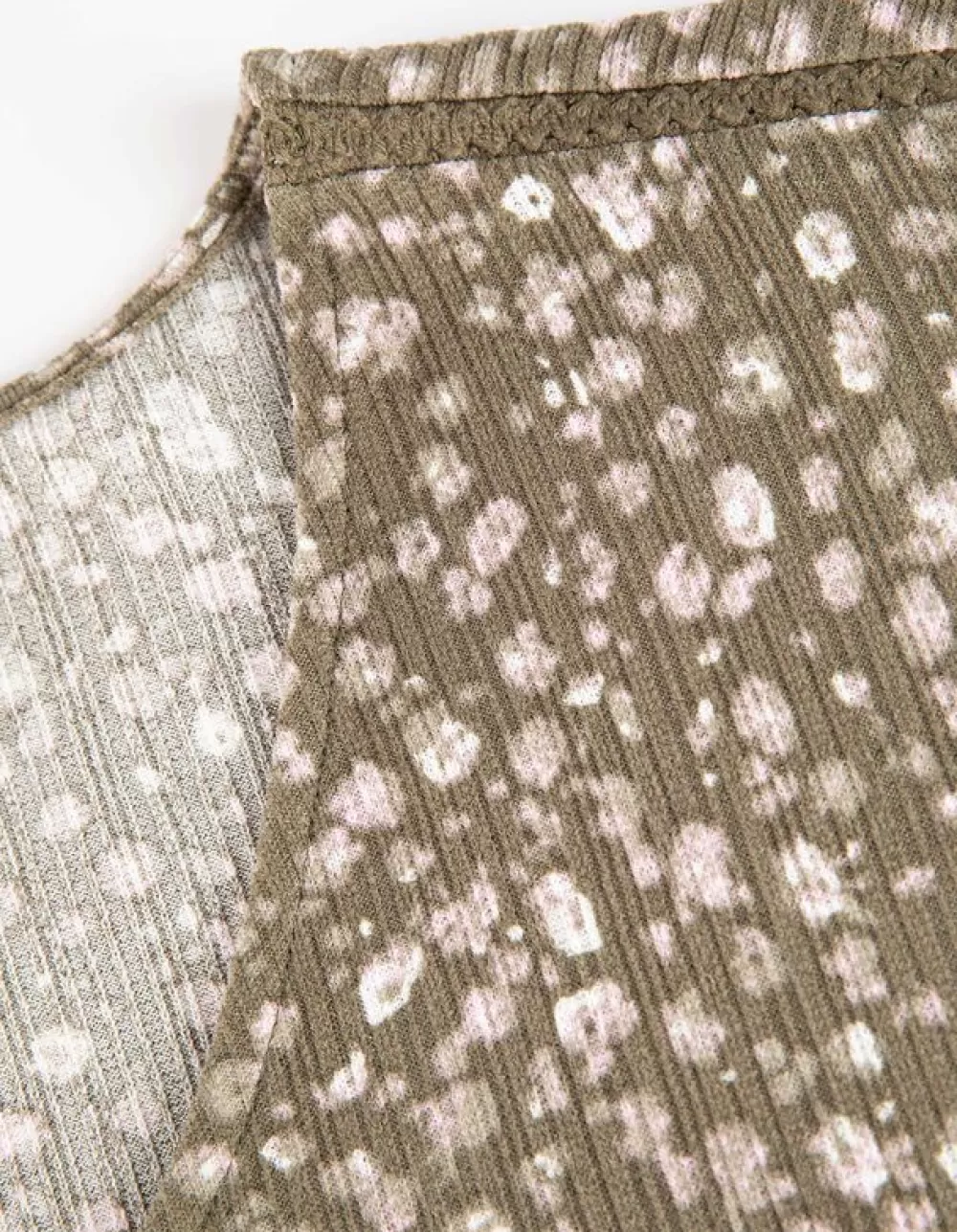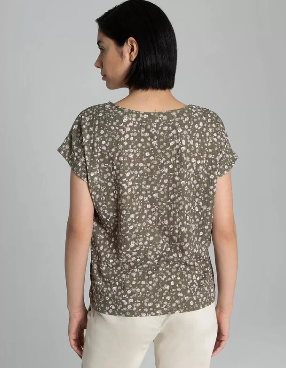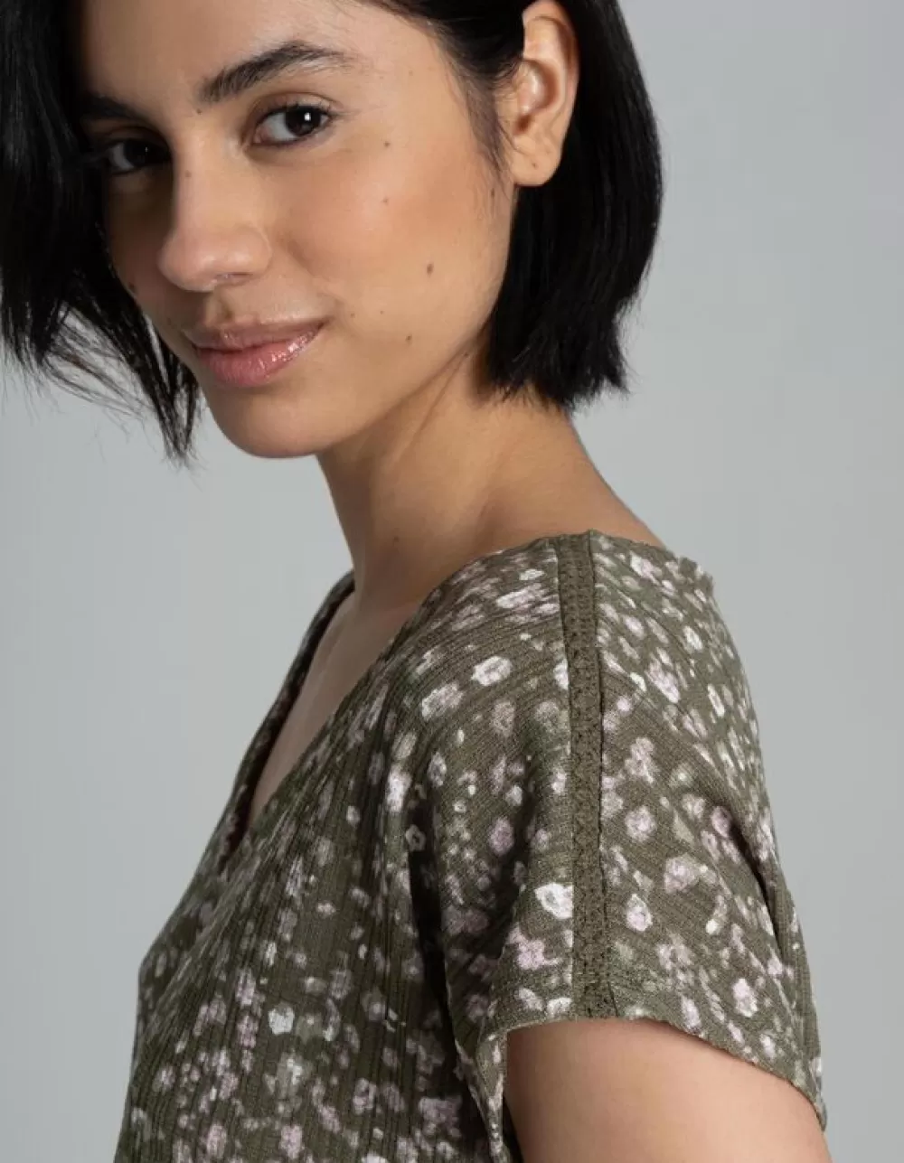 DonkergroenBloemenmotiefV-HalsKorte MouwenMet Stretch