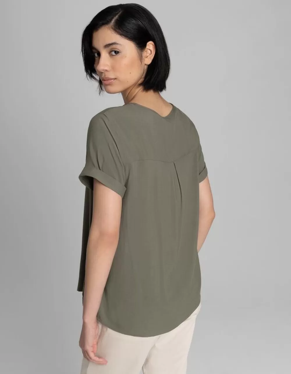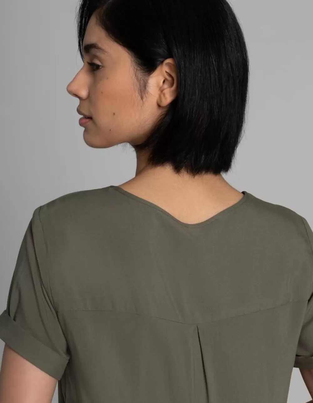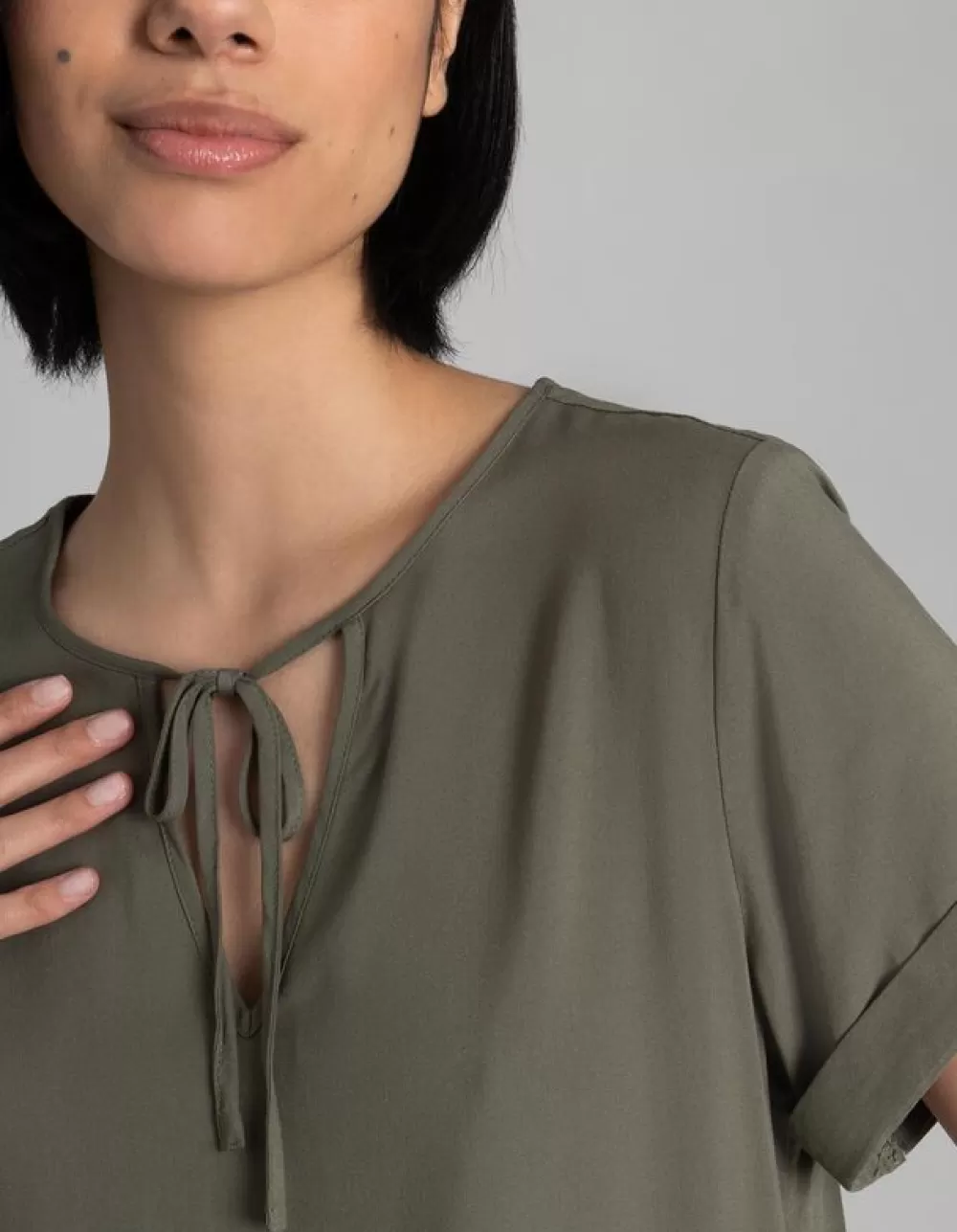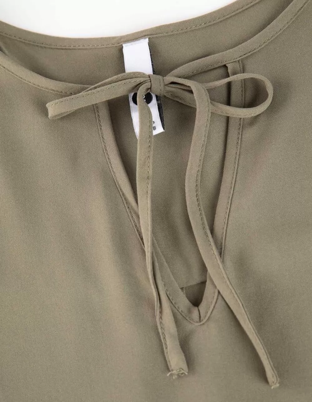 DonkergroenEffenRonde Hals Met KnoopjesKorte MouwenViscoseVetersluitingElastische Randen