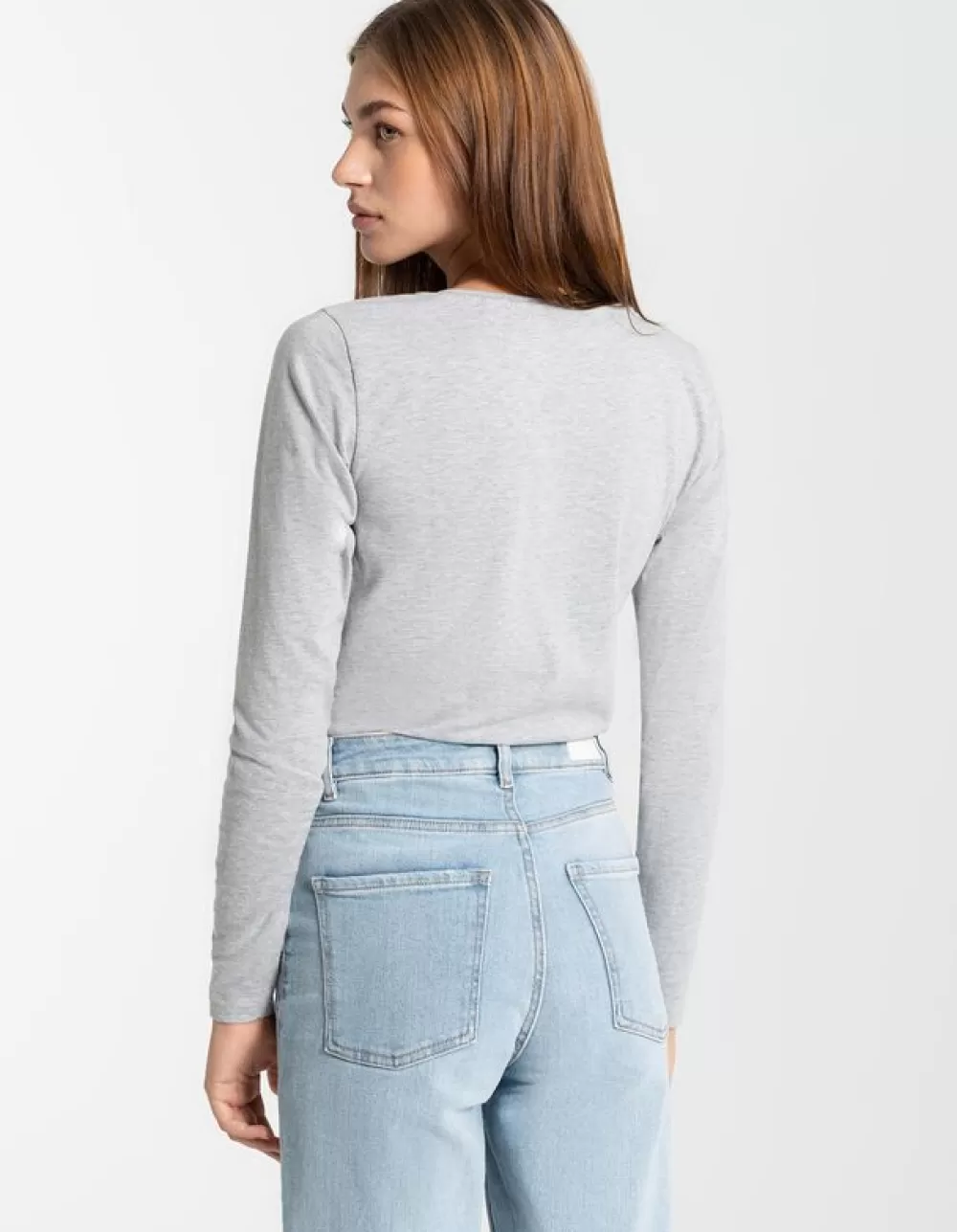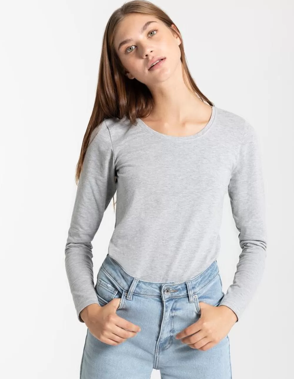 GrijsEffenRonde HalsLange MouwenKatoenmixZonder SluitingMet Stretch