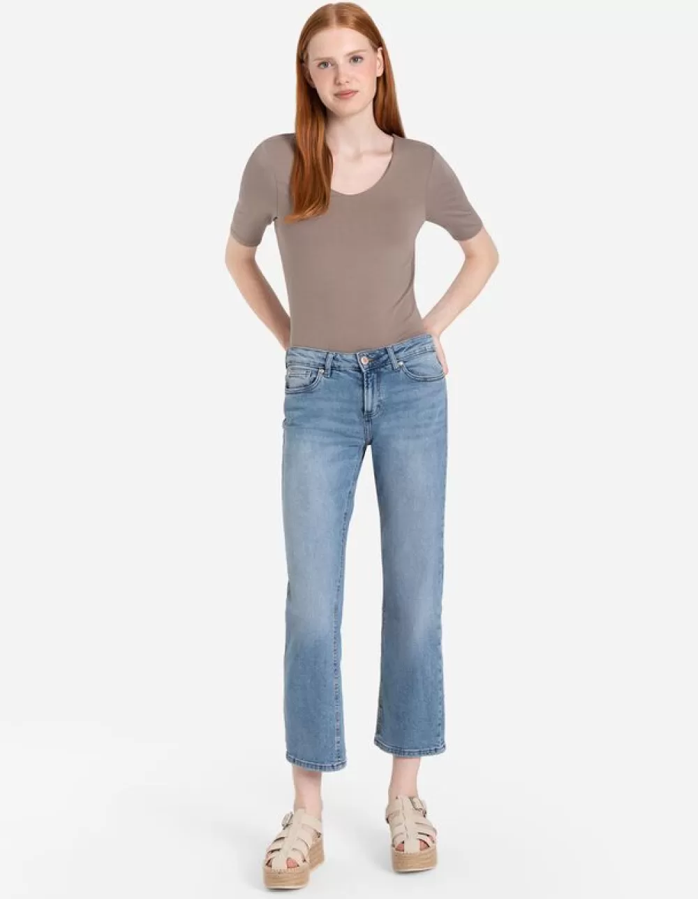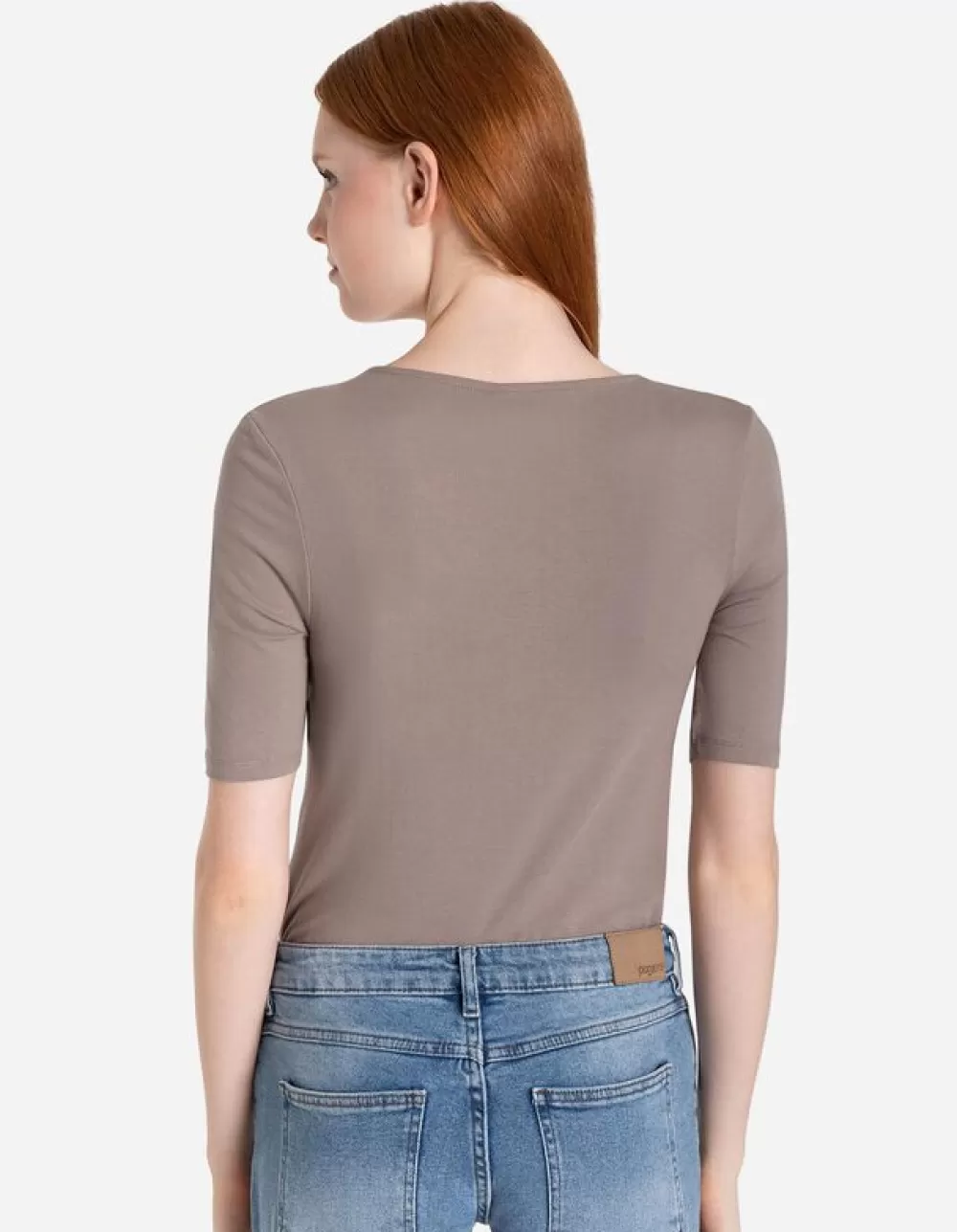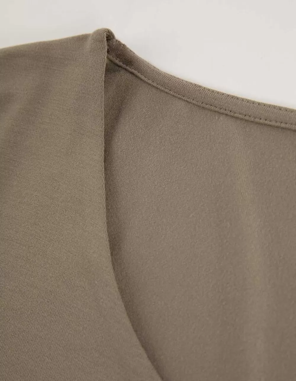 BeigeEffenRonde HalsKorte MouwenViscosemixMet StretchDubbellaagse Look