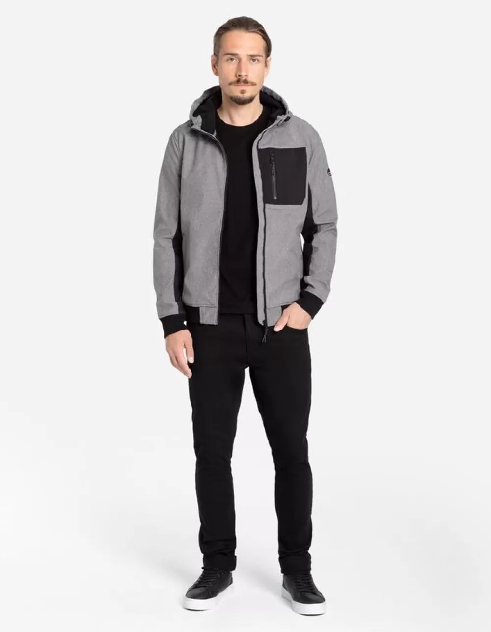 GrijsGemeleerdKapLange MouwenSoftshellRitssluitingCapuchon
