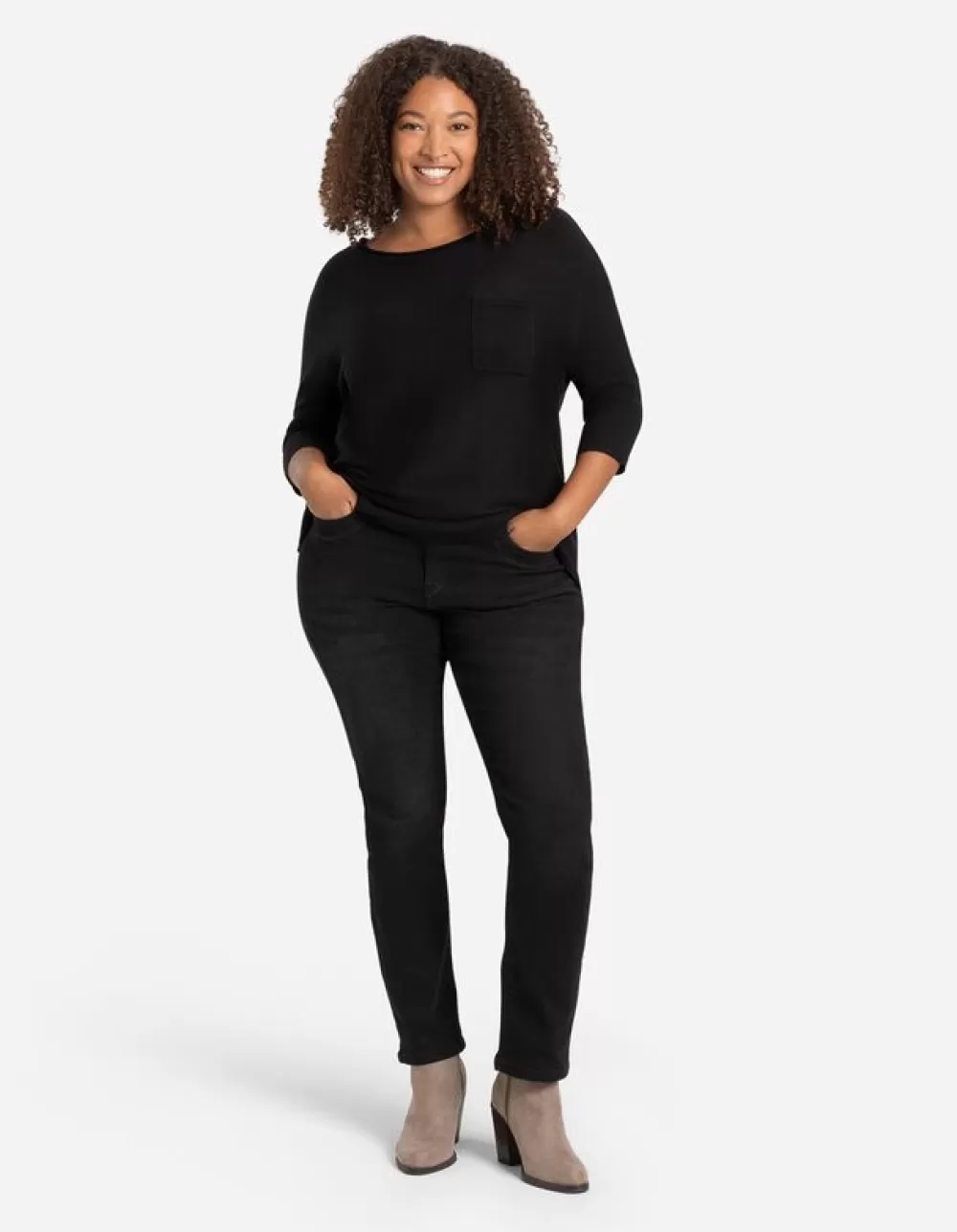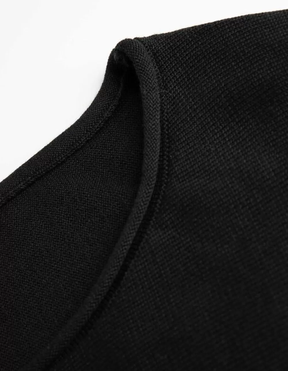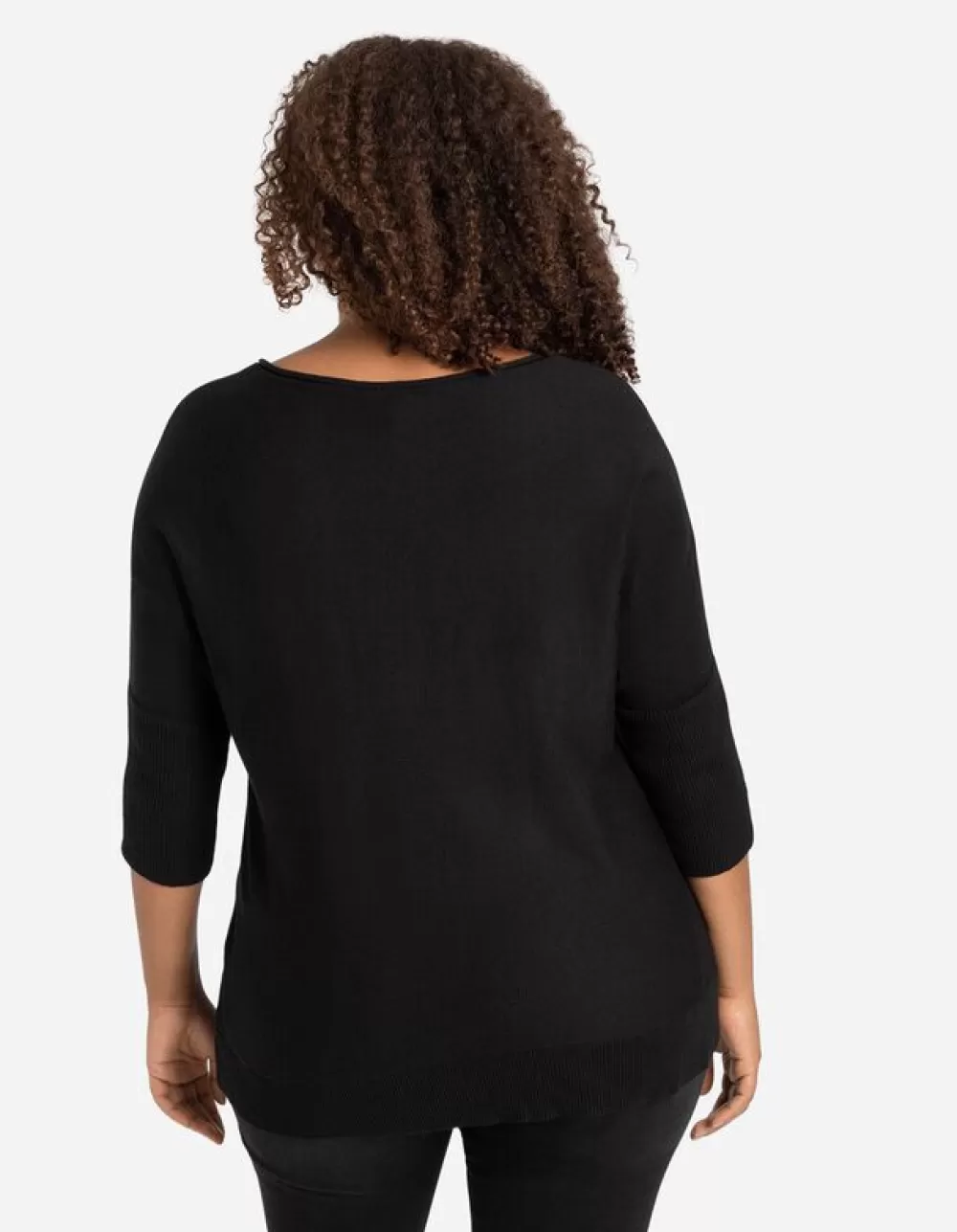ZwartEffenRonde Hals3/4-MouwenFijn BreiselBorstzakRolrandjes