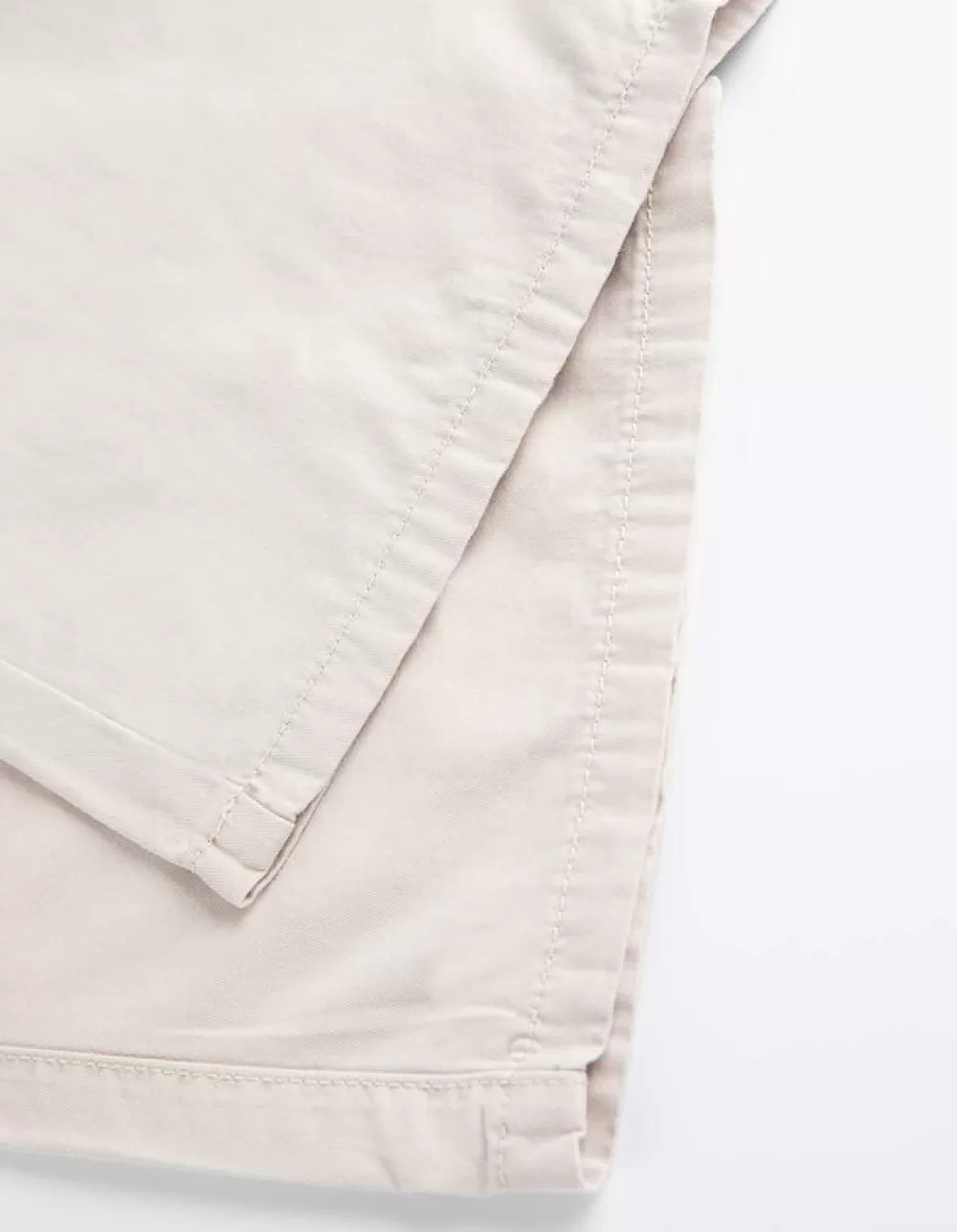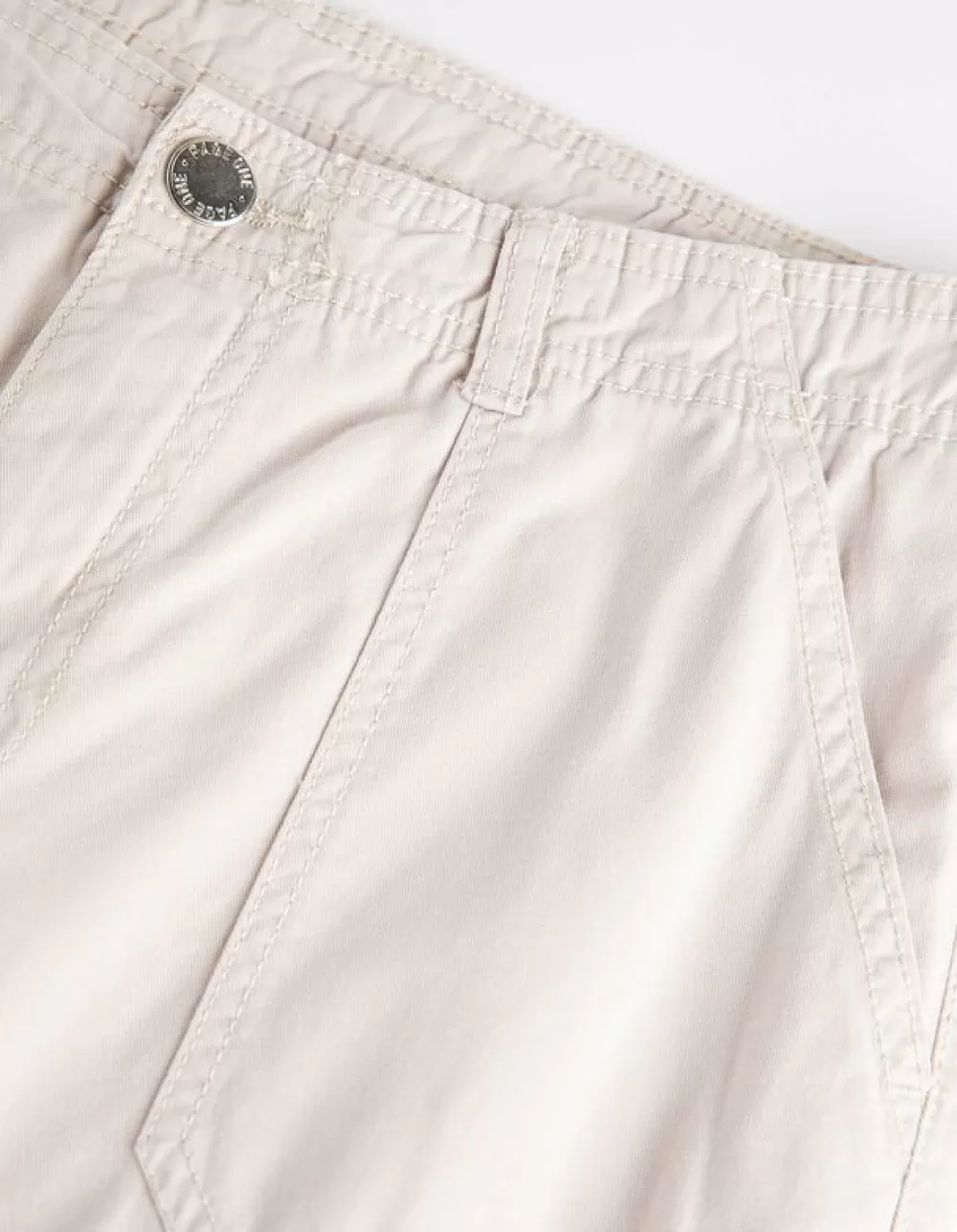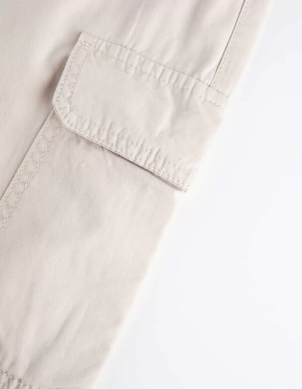 BeigeEffenHoge TailleNormale LengteKatoenKnoop- En RitssluitingOpgestikte Zakken