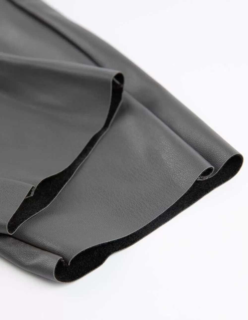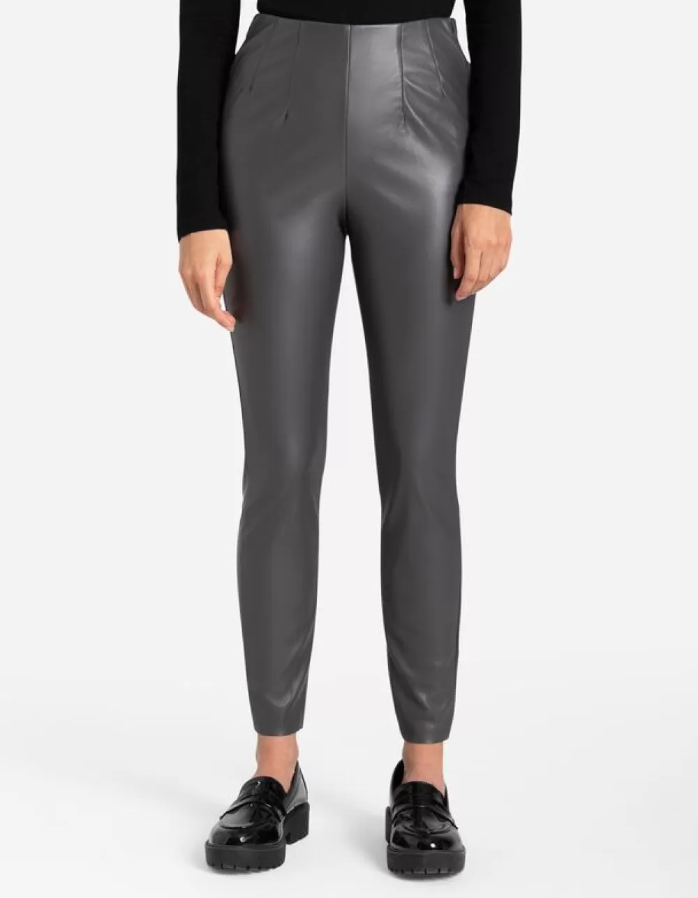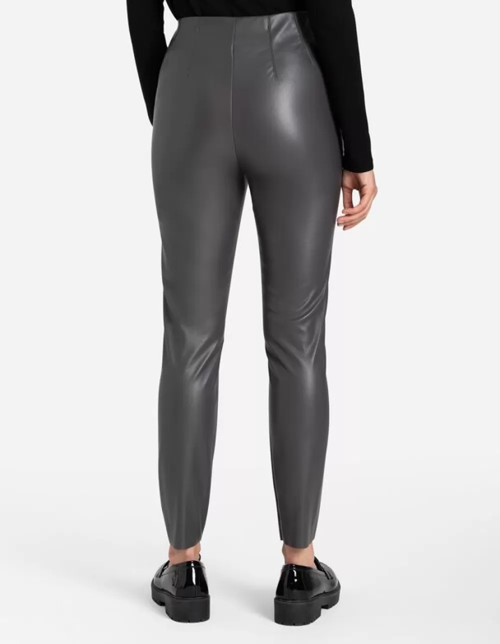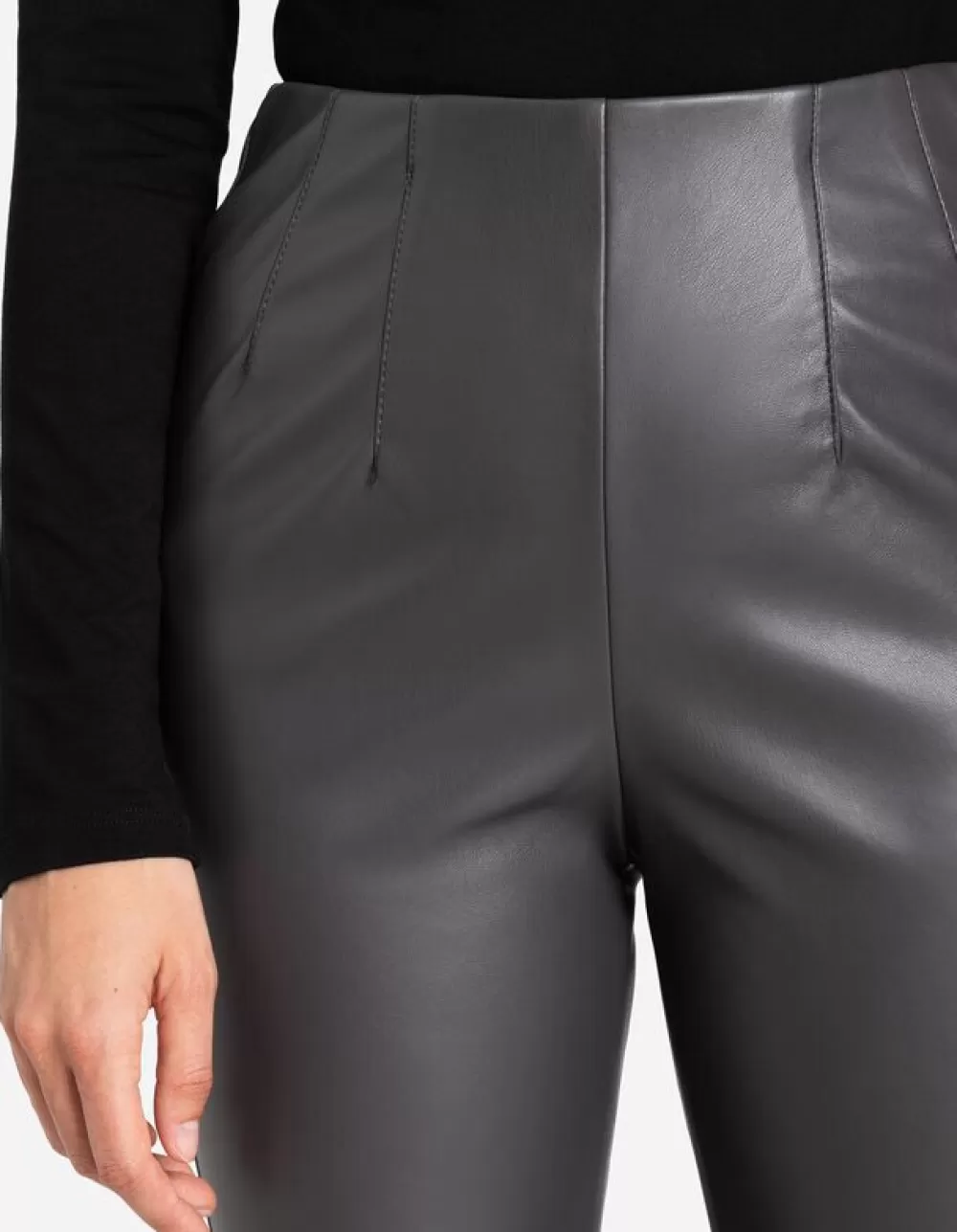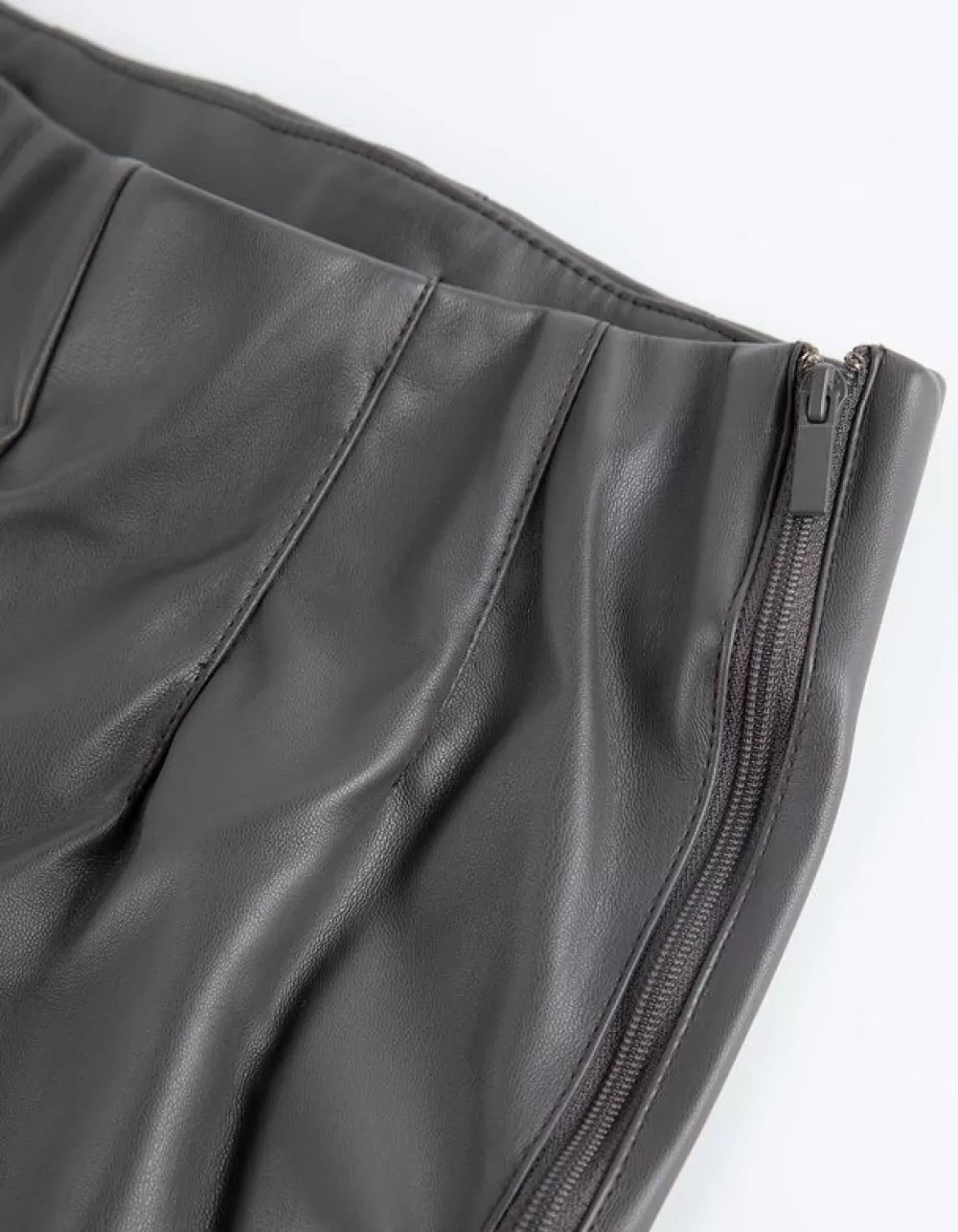 DonkergrijsEffenHoge TailleEnkellengteImitatieleerRitssluitingOnafgewerkte RandenImitatieleer