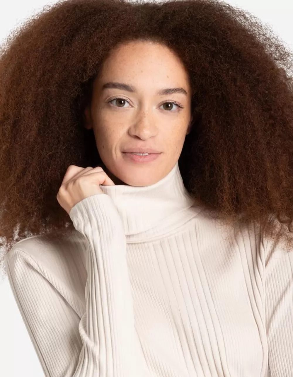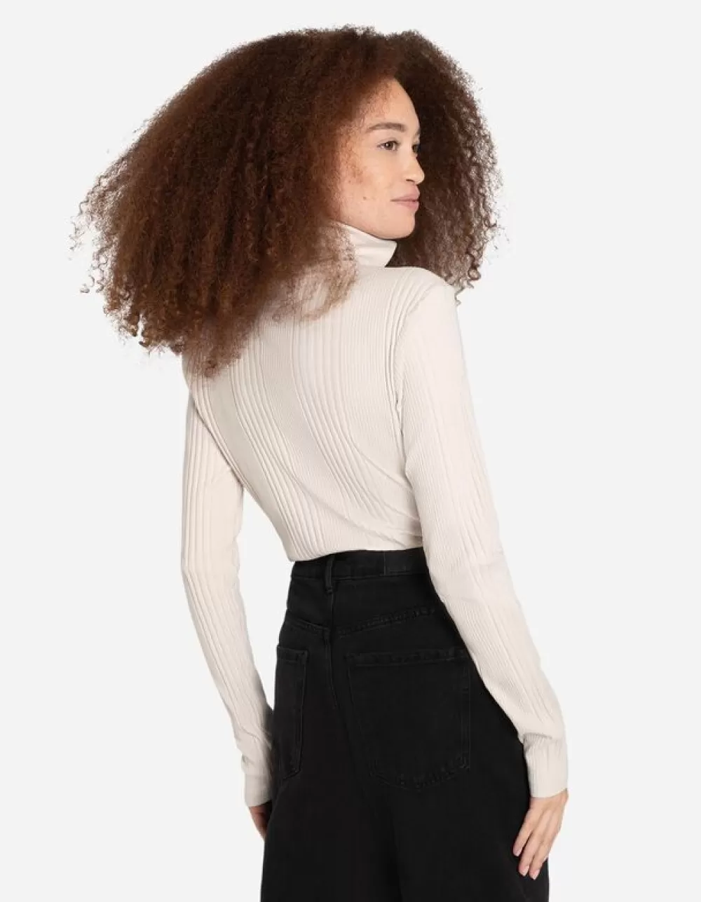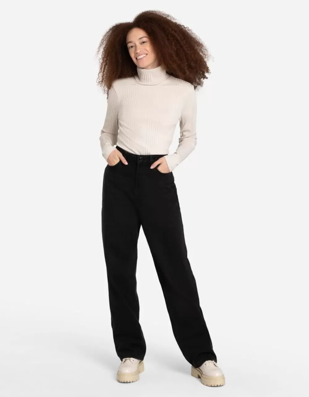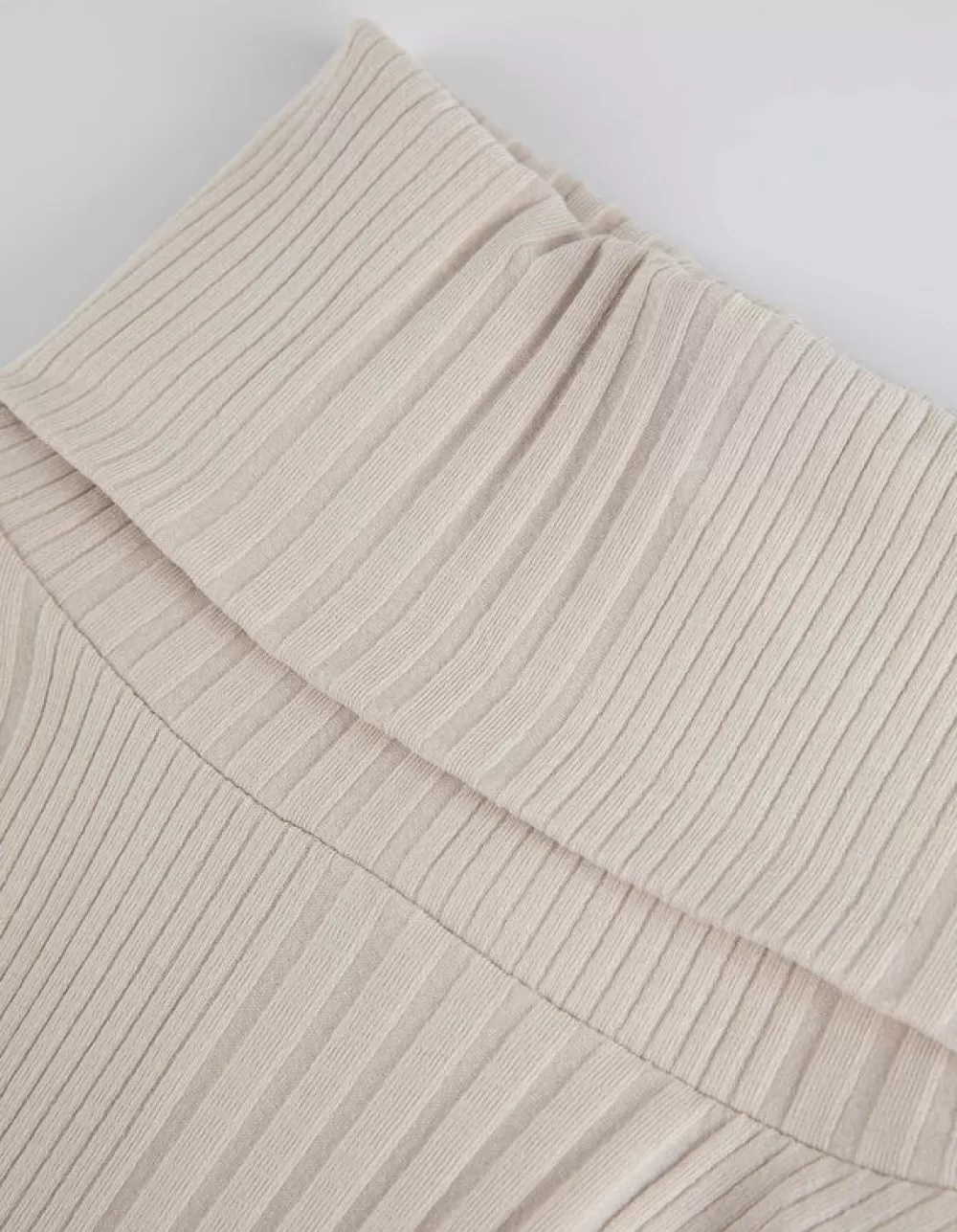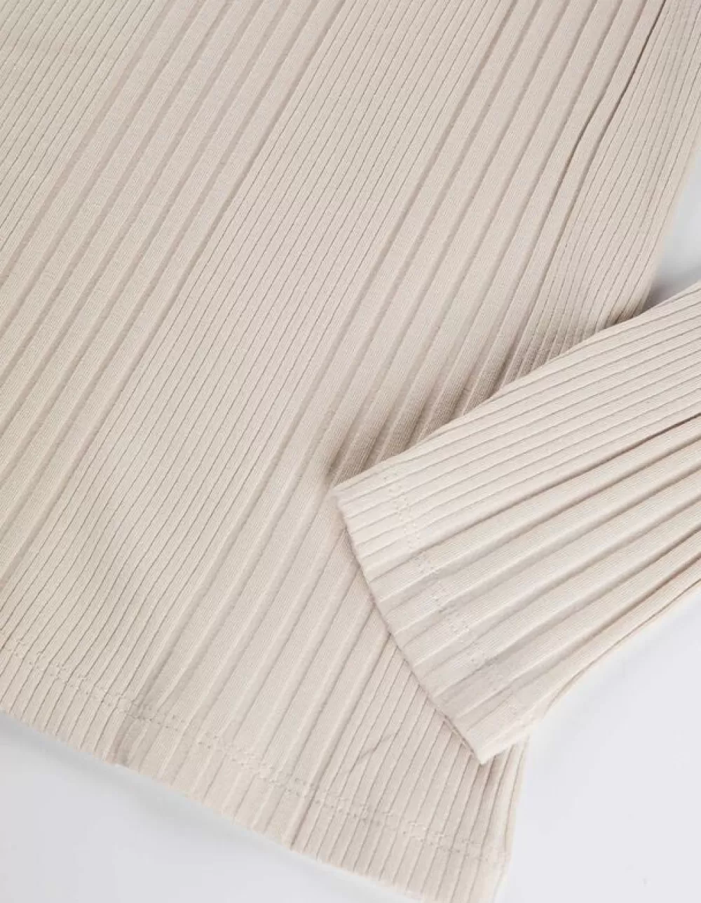 BeigeEffenColLange MouwenKatoenmixGeribde Structuur
