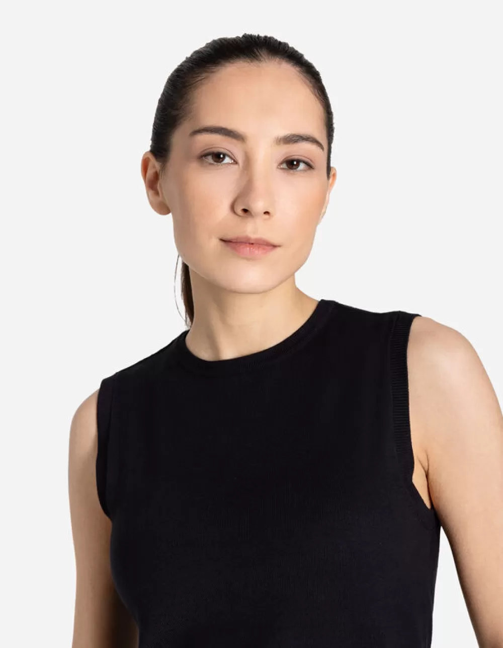 DonkerblauwEffenRonde HalsMouwloosViscosemixZacht MateriaalMet StretchZacht Materiaal