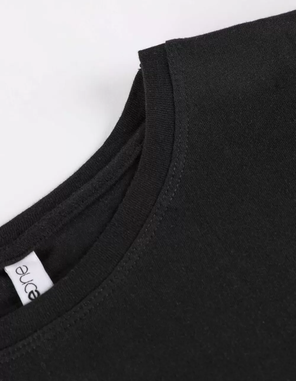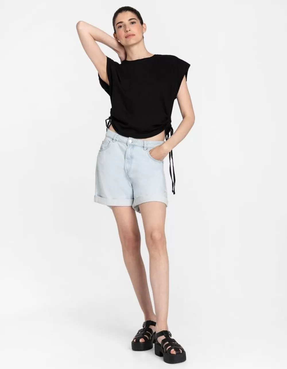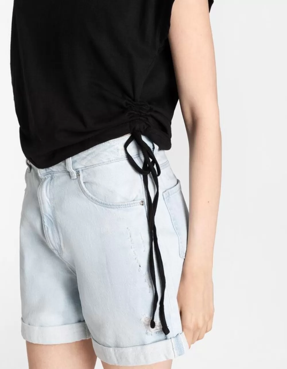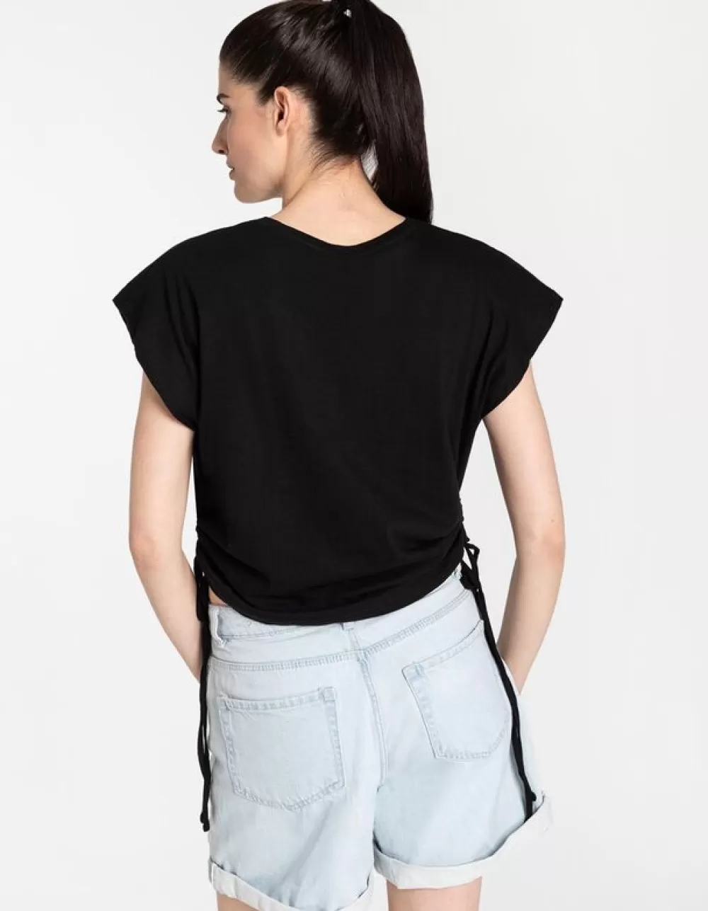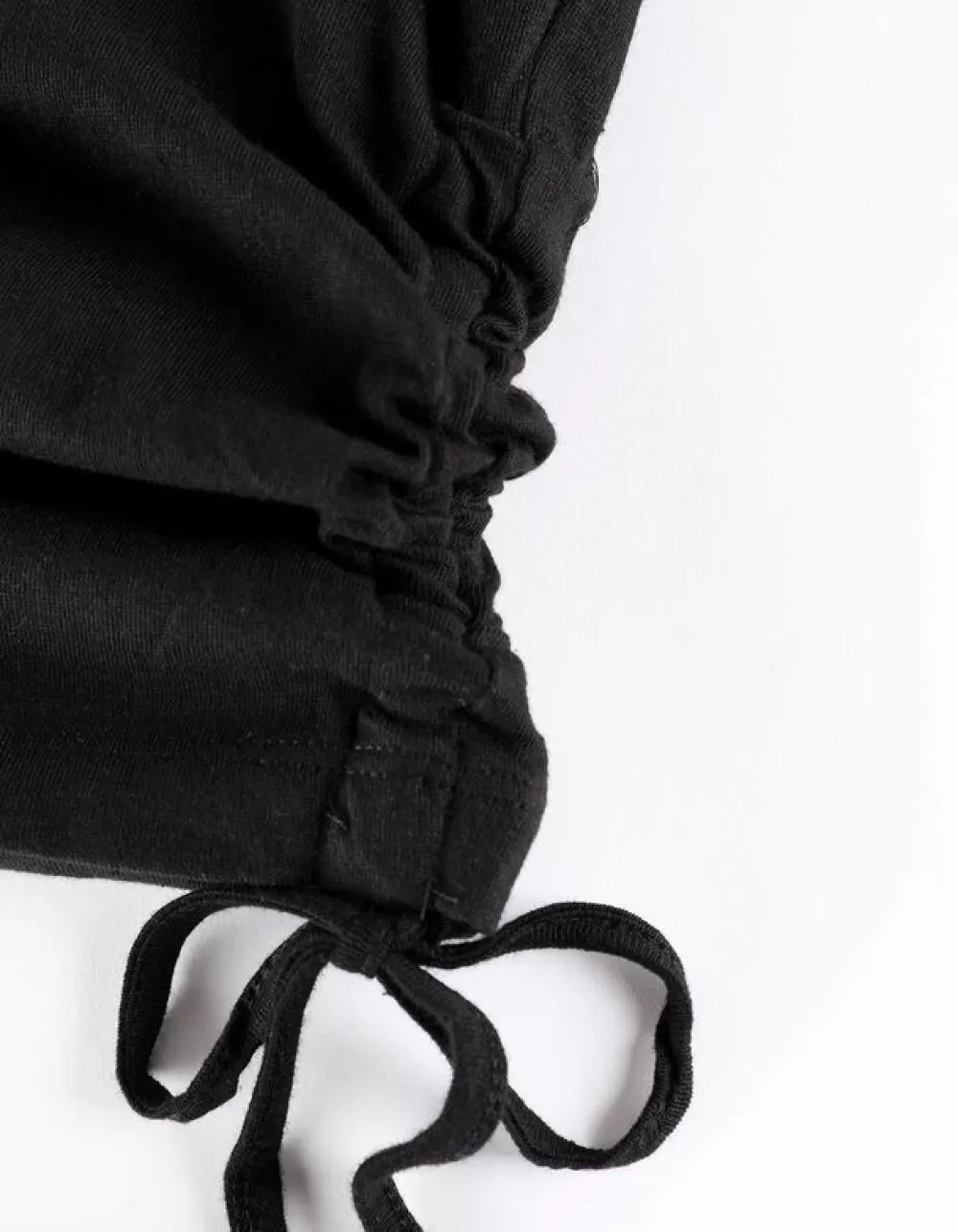 ZwartEffenRonde HalsOversized MouwenKatoenVetersluitingRaffungen
