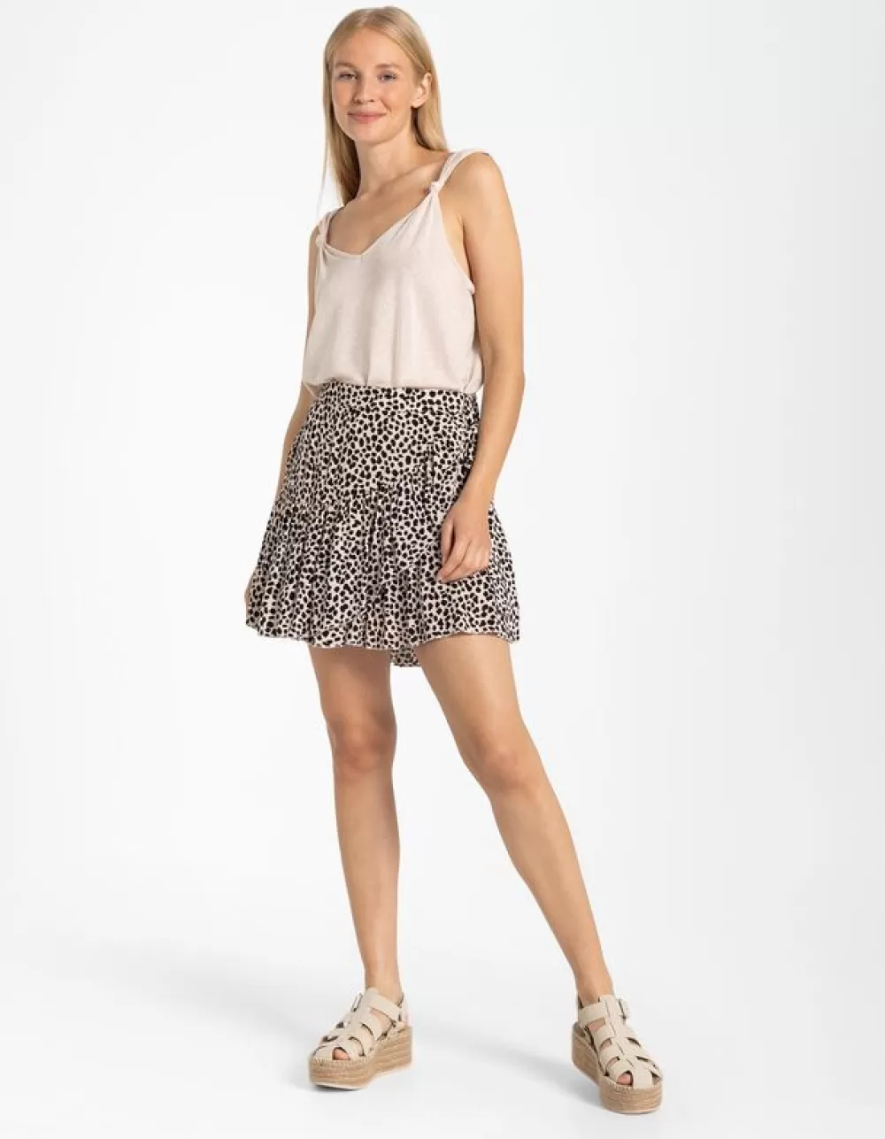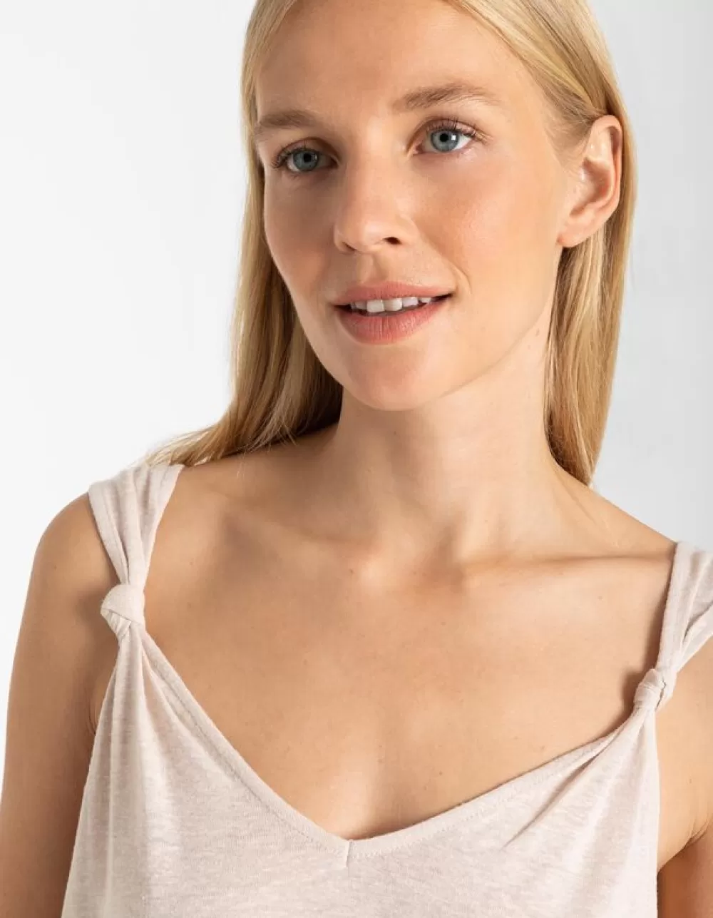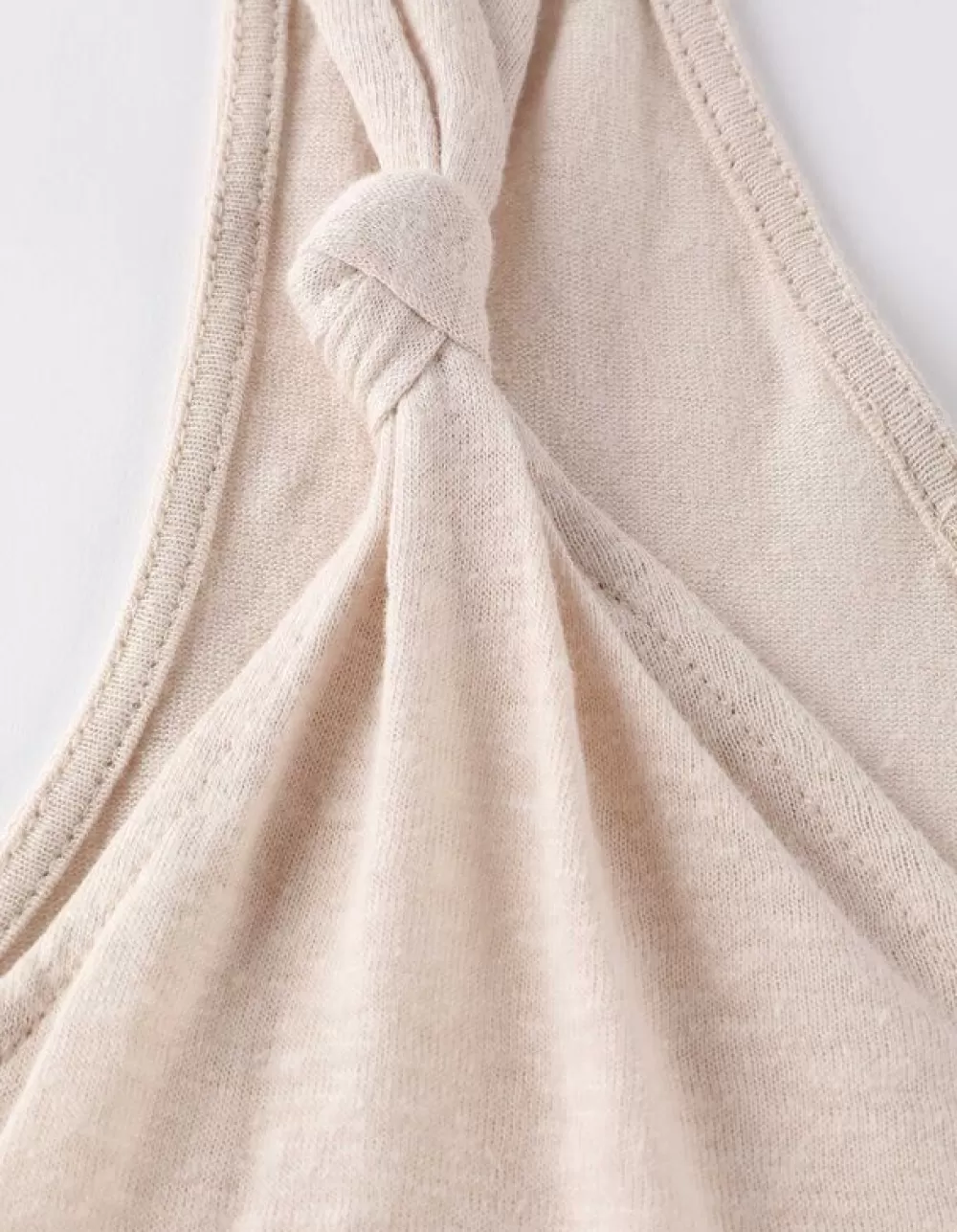 BeigeEffenV-HalsSmalle SchouderbandjesLinnenmixGeknoopt Detail