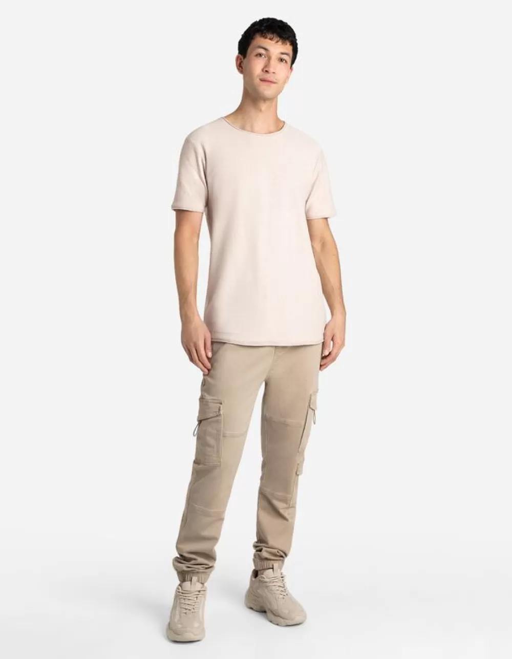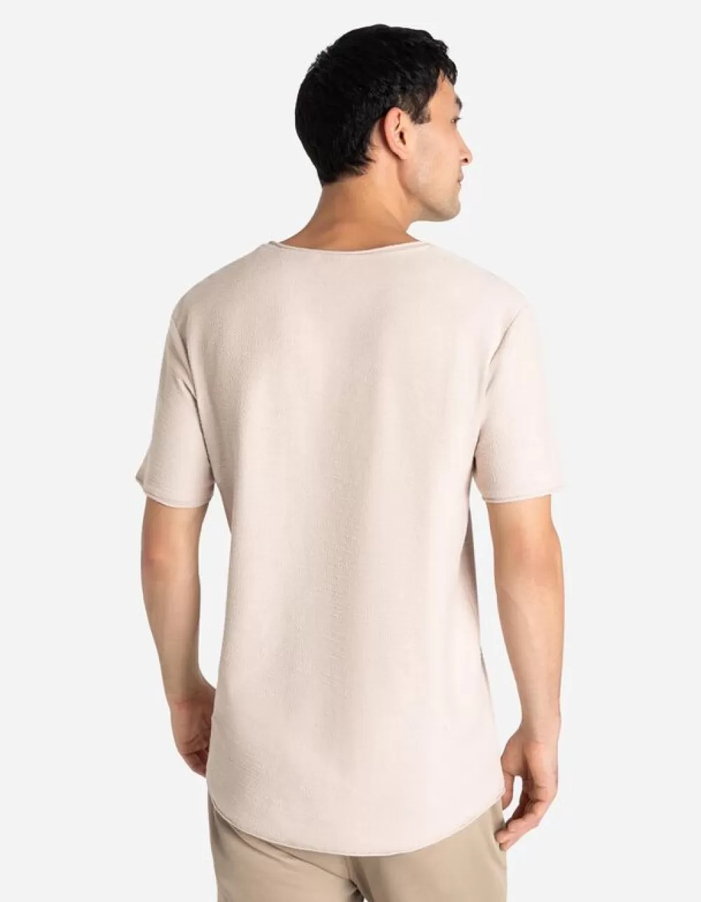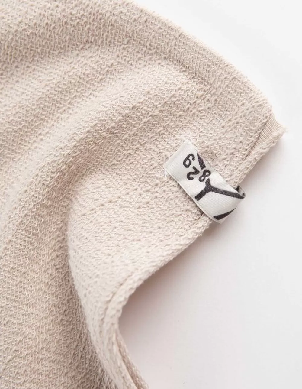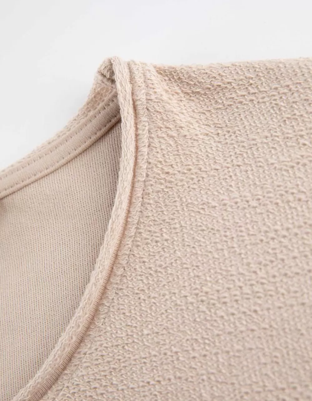 BeigeEffenRonde HalsKorte MouwenRolrandjes