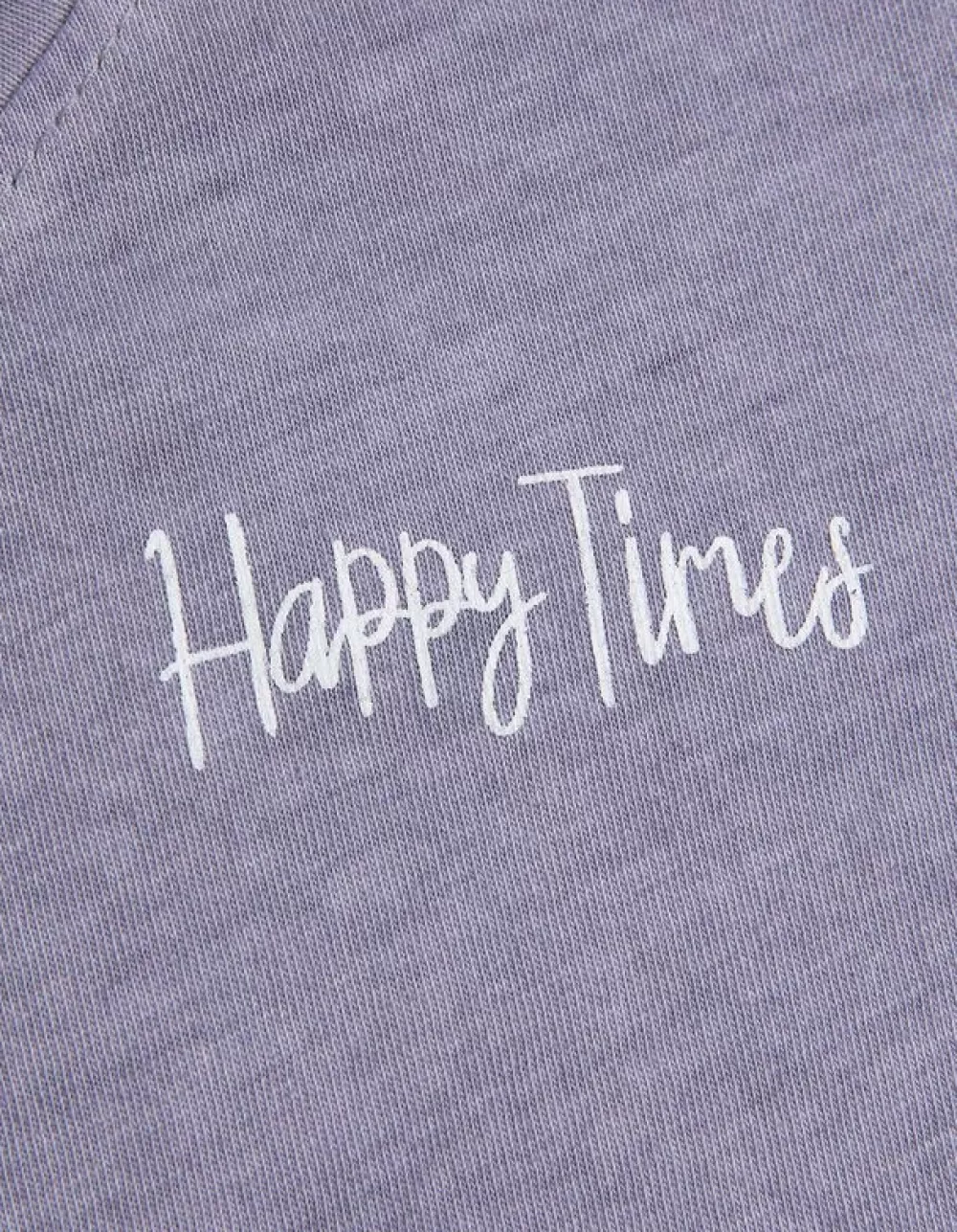 LilaGemeleerdRonde HalsKorte MouwenKatoenTekstprintUsed LookUsed Look