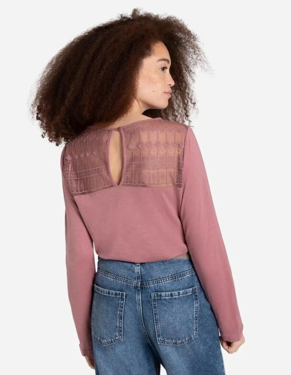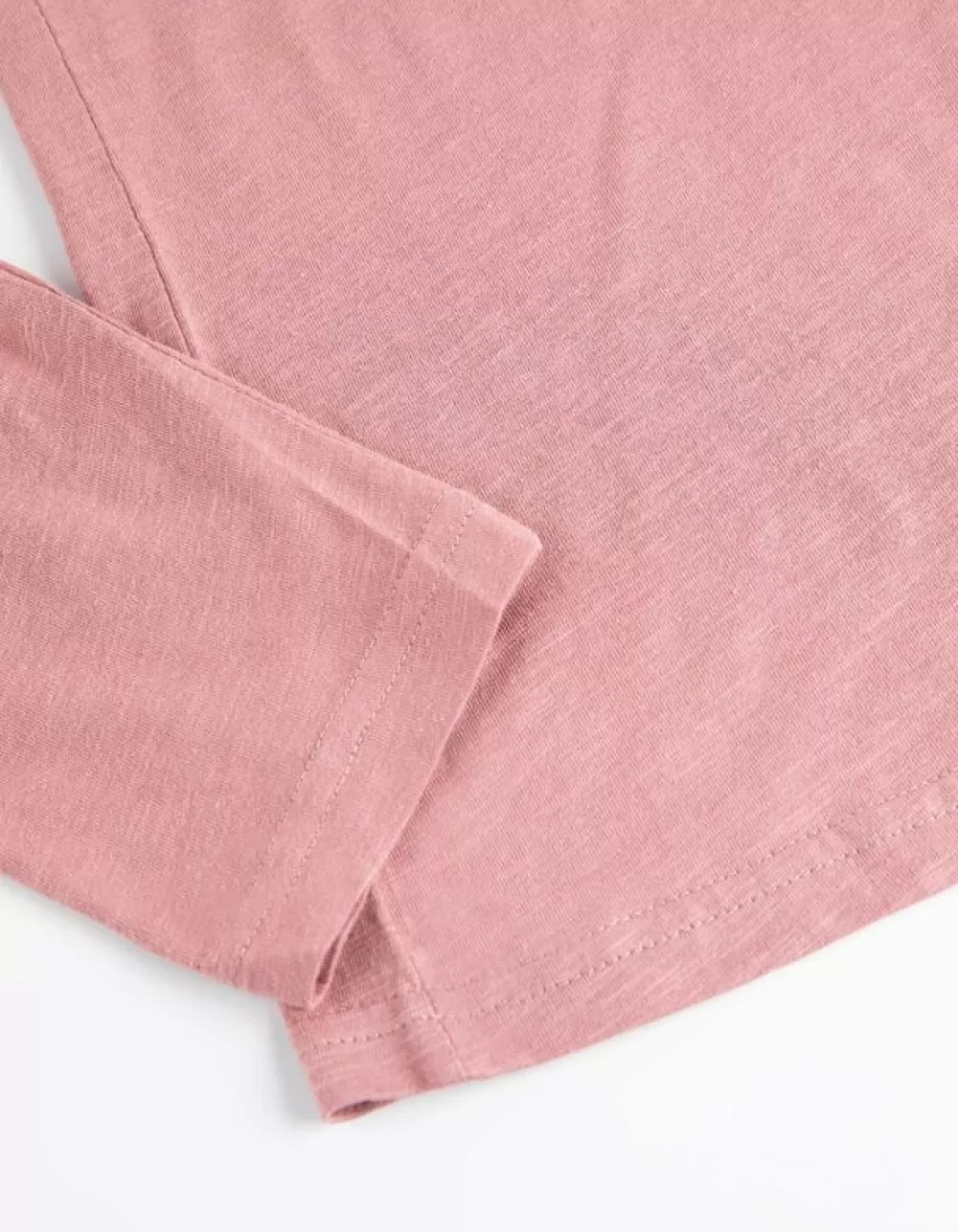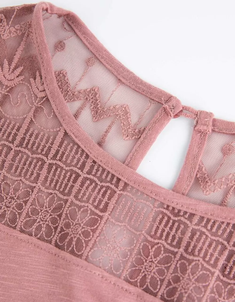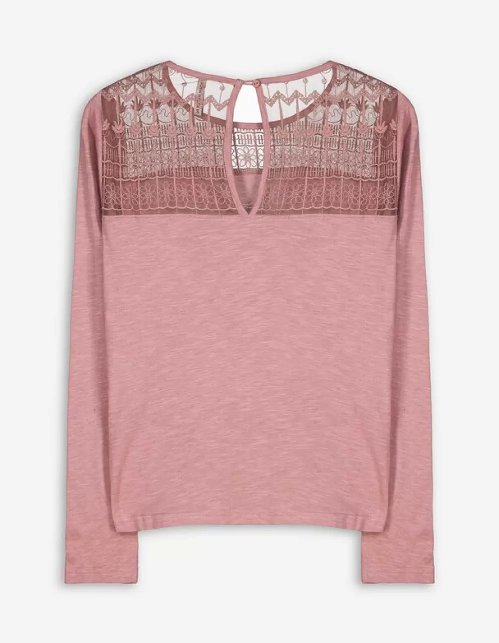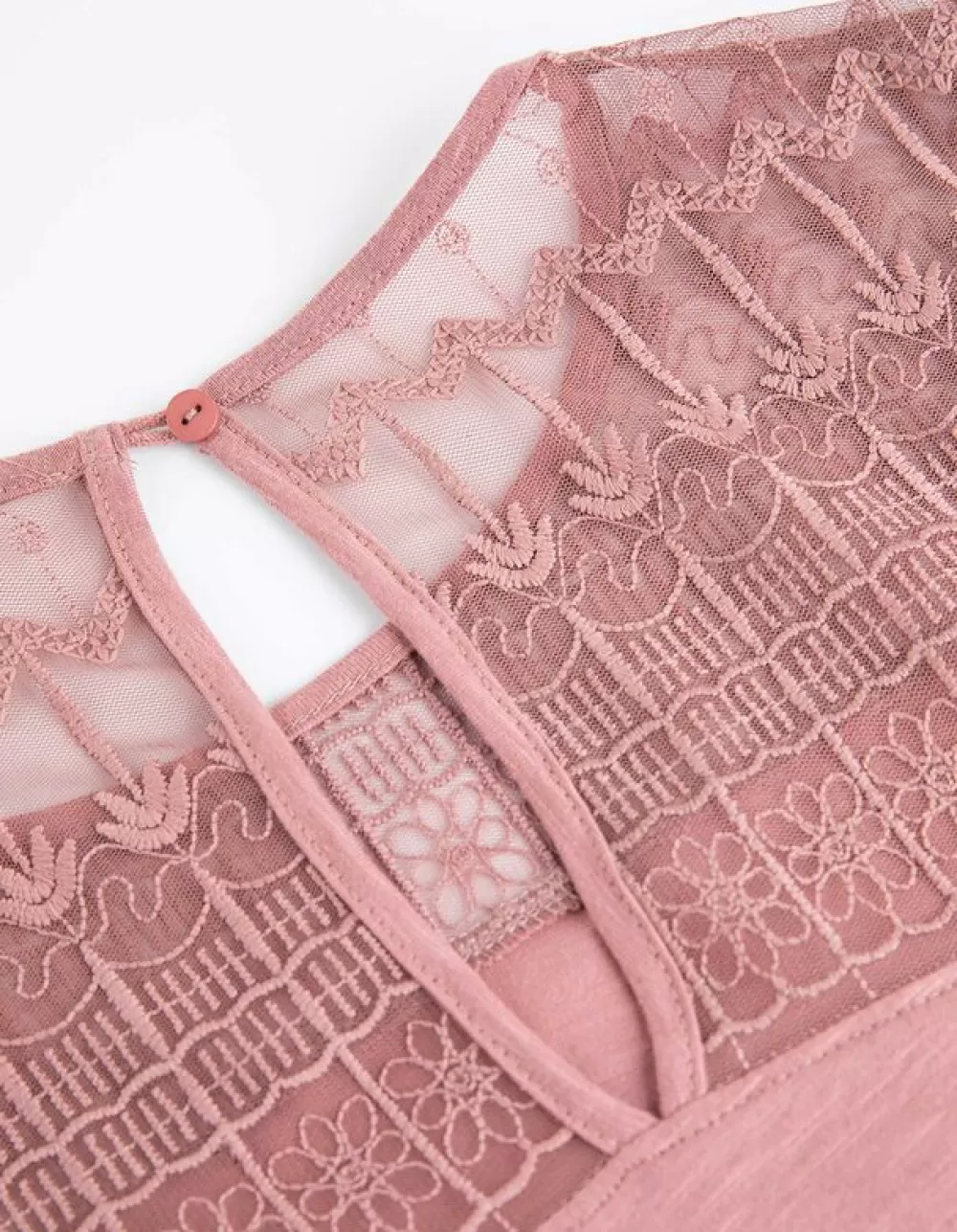 RozeGemeleerdRonde HalsLange MouwenViscoseKnoopsluitingRugdecolleteBroderie