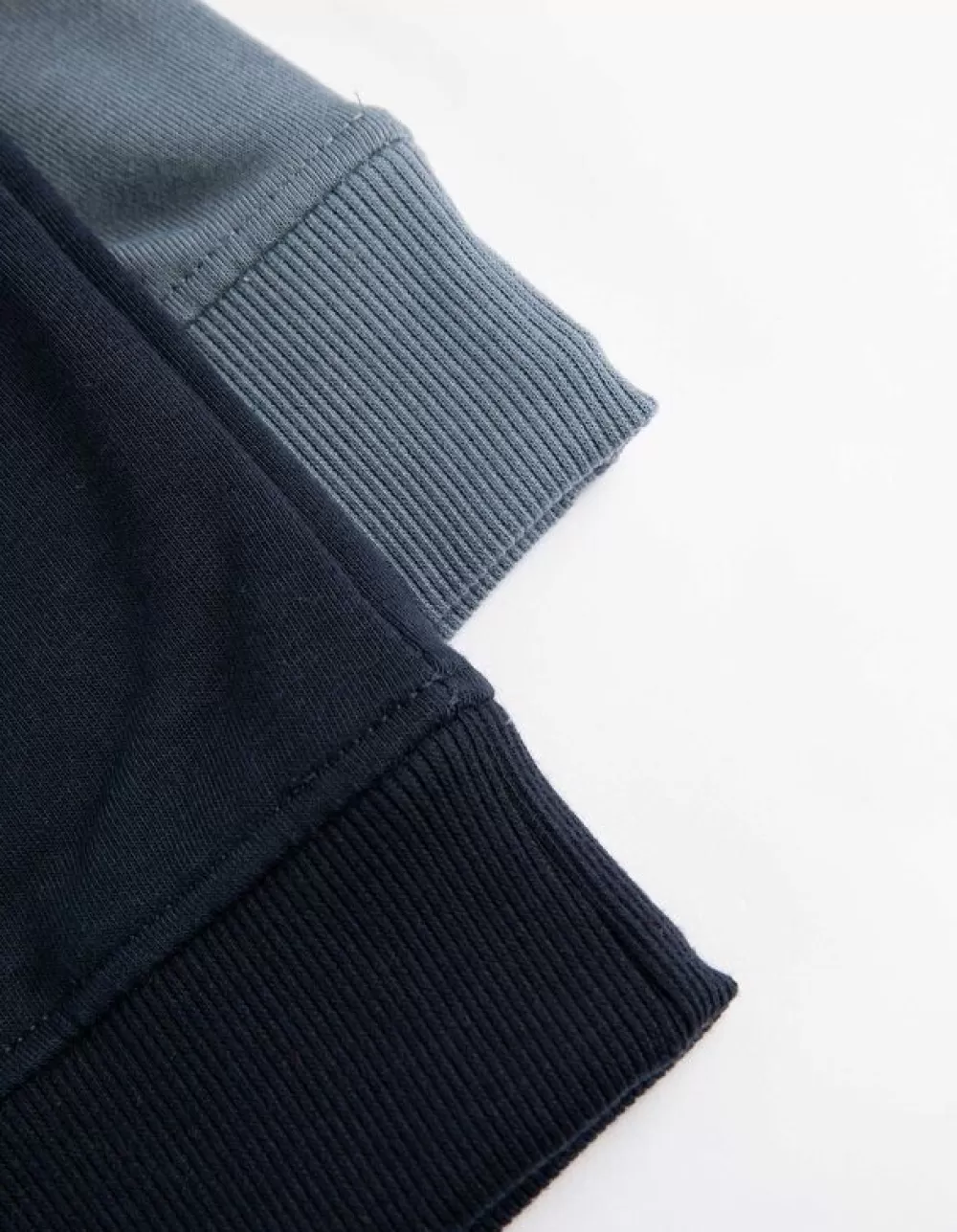 DonkerblauwEffenRonde HalsLange MouwenSweatstofRibboordenSet Van 2Ribboorden