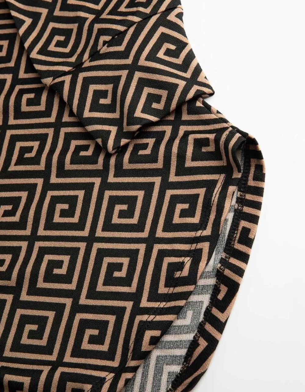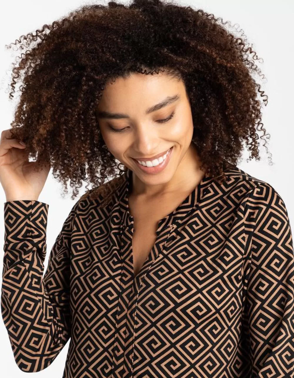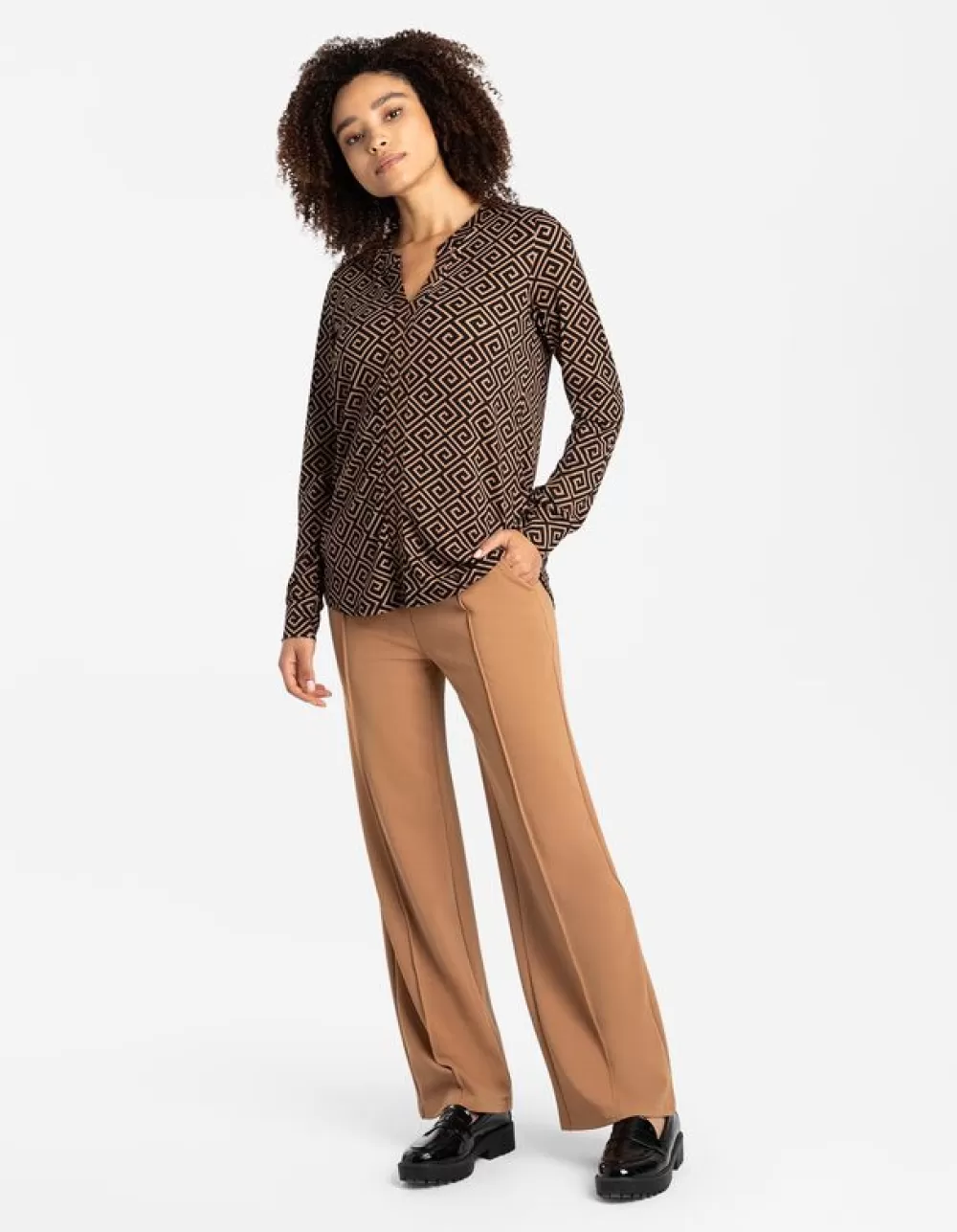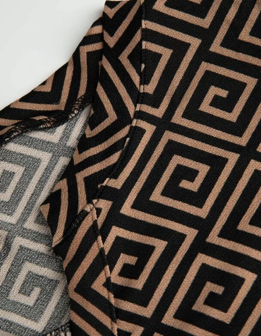BruinMotief All-OverLoose FitMateriaalmixMet StretchLanger Achterpand