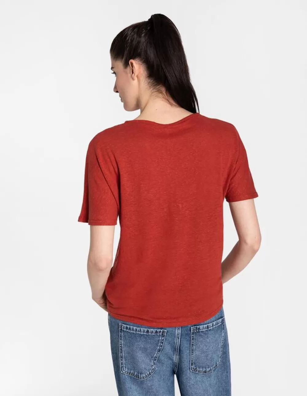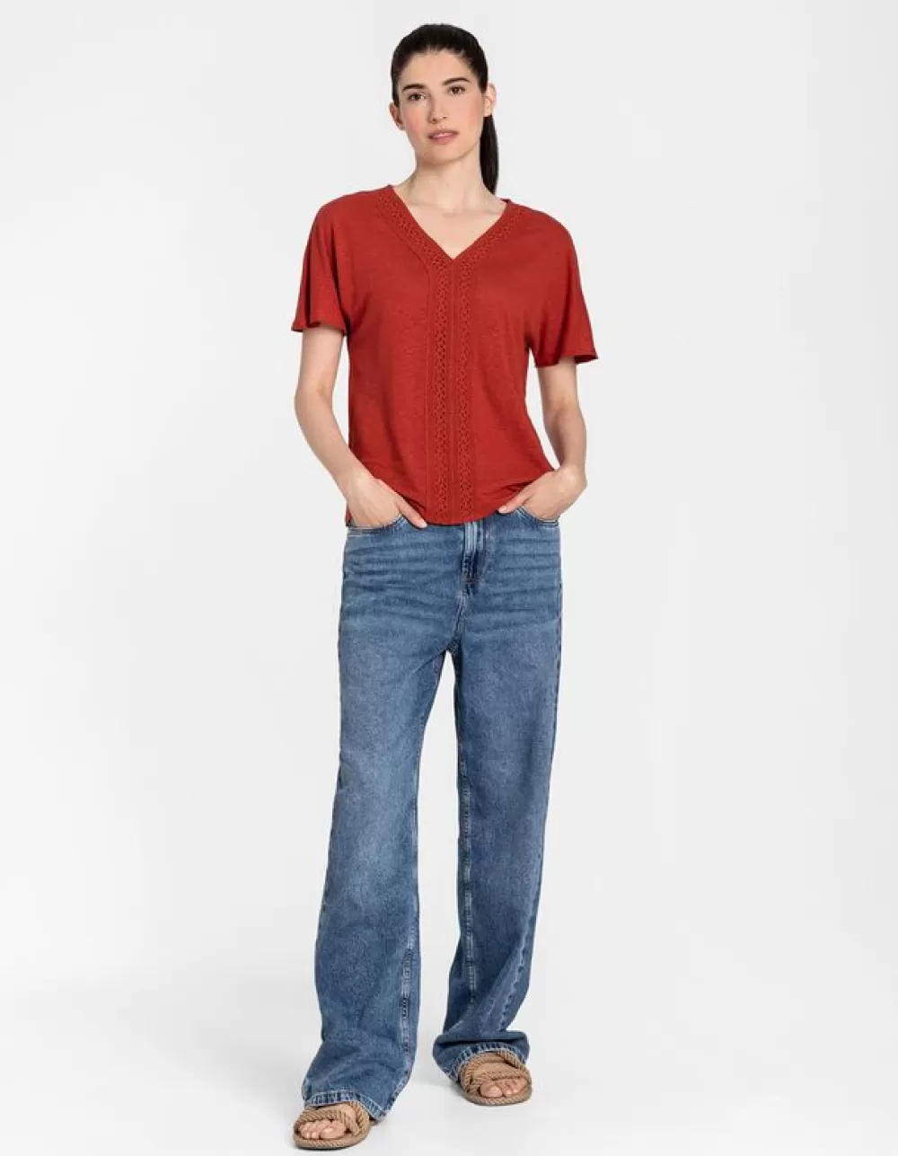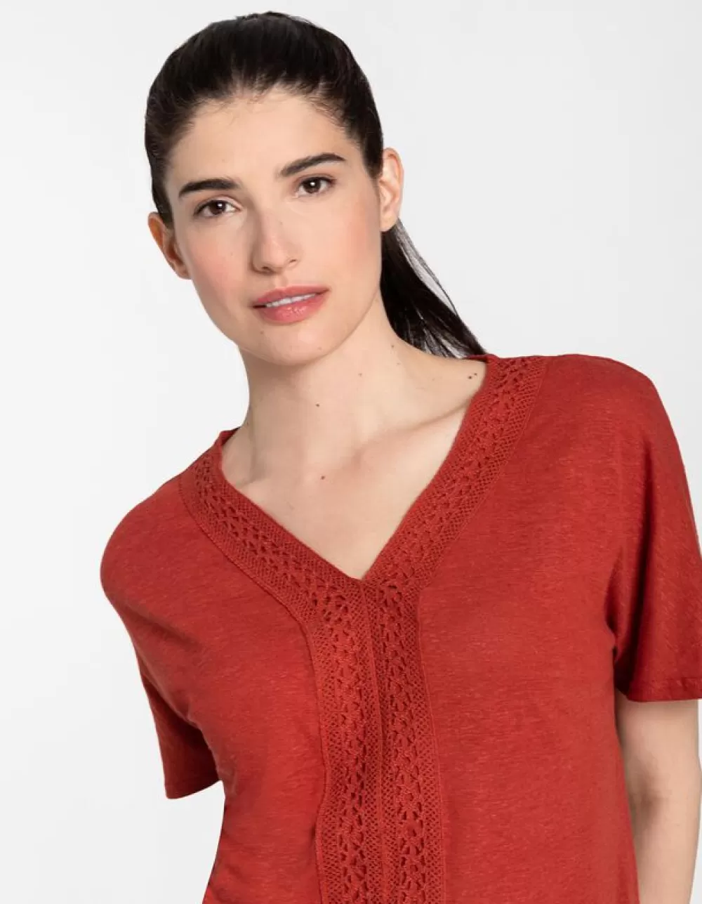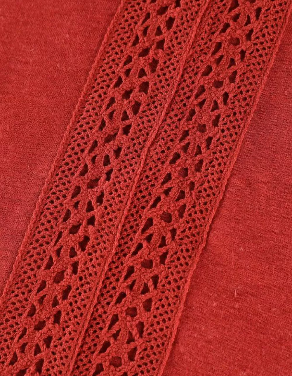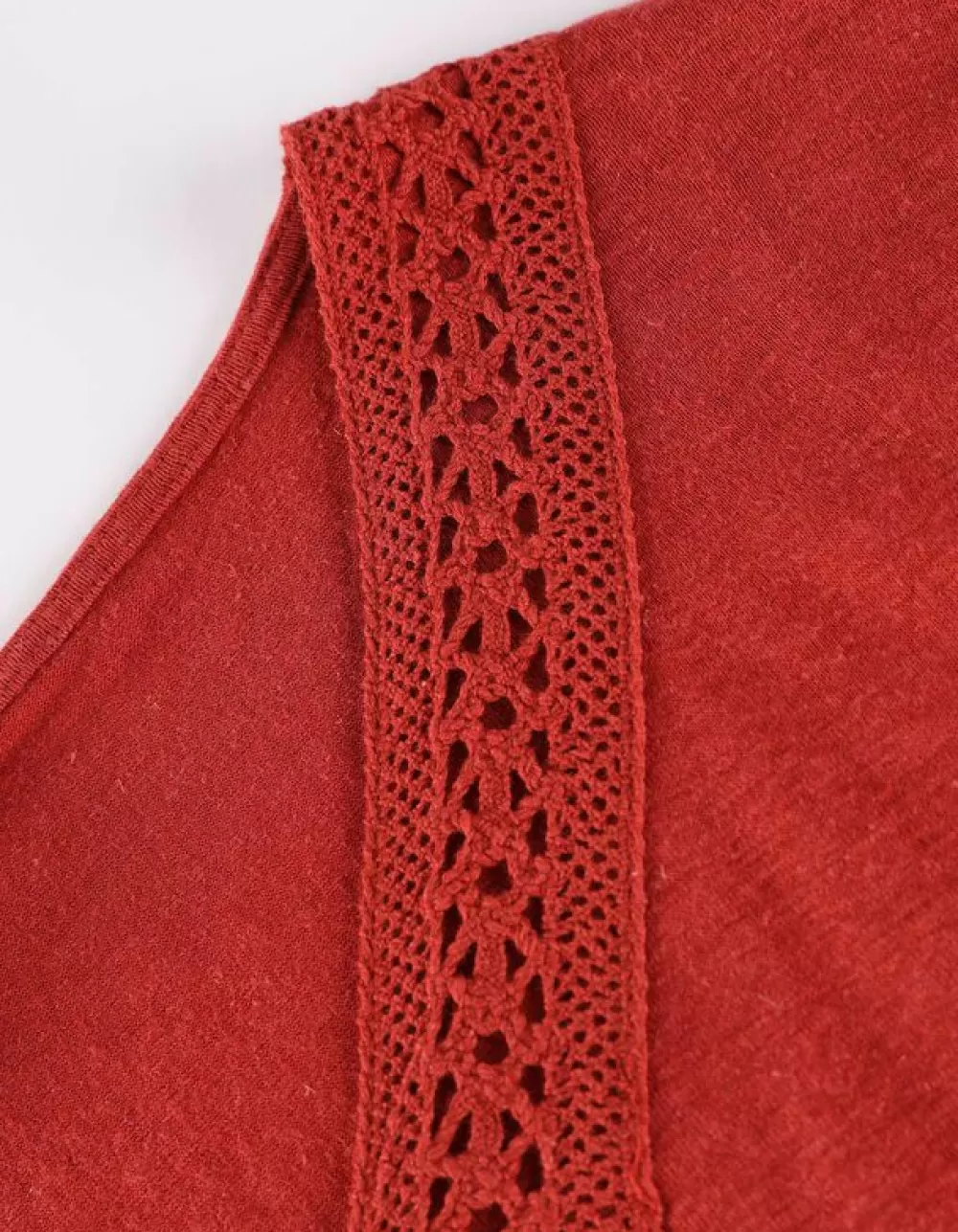 DonkerroodEffenV-HalsOversized MouwenLinnenmixGehaakte Kant