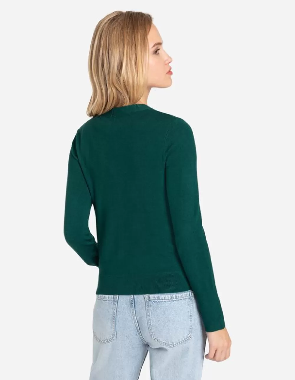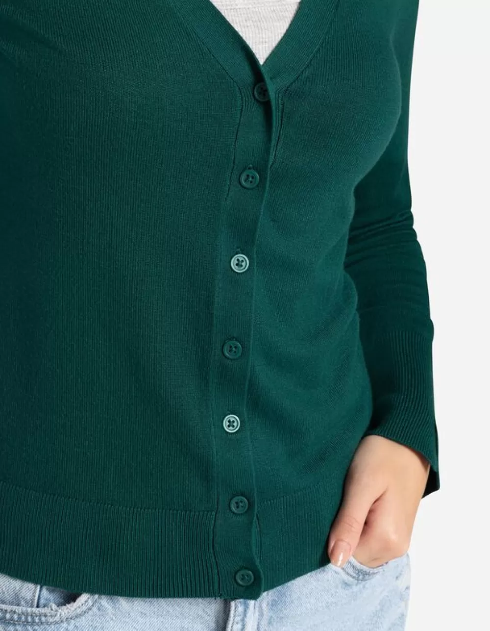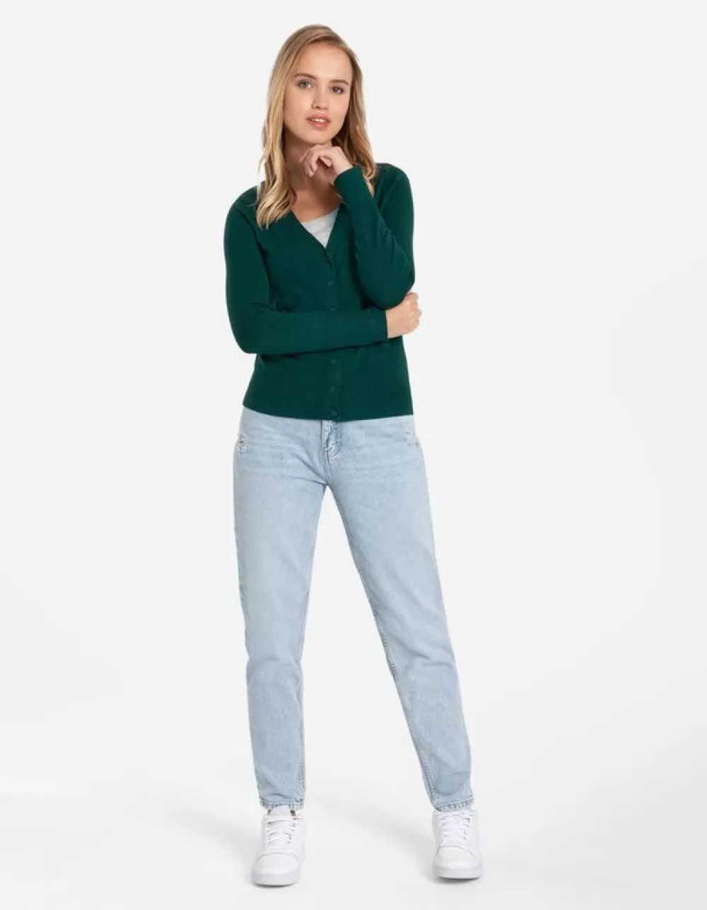 DonkergroenEffenV-HalsLange MouwenViscosemixKnoopsluitingMet Stretch