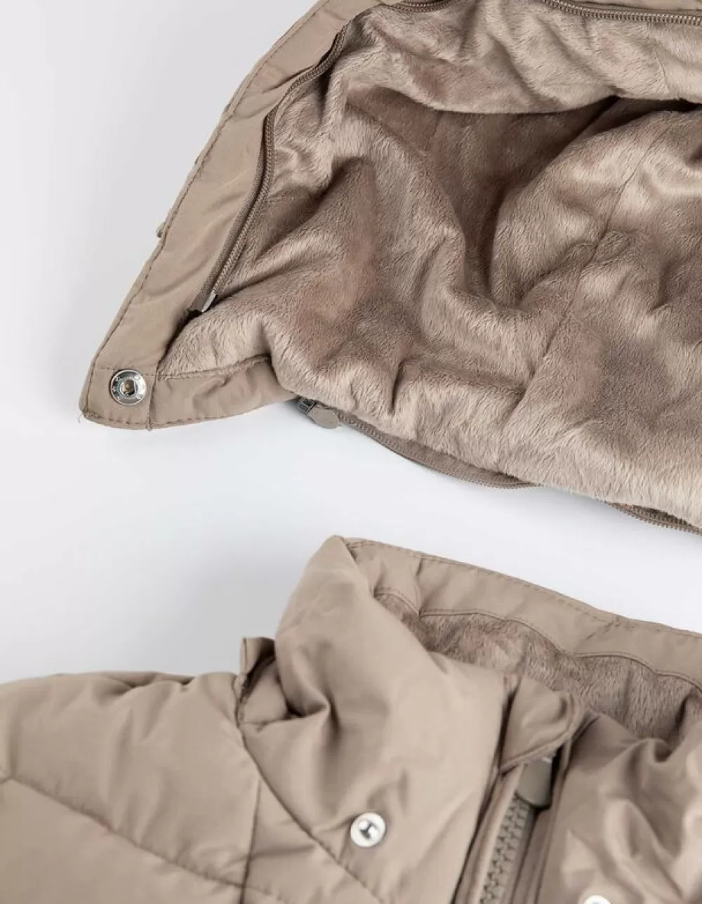 BeigeEffenKapLange MouwenPolyesterSierritsAfneembare Rand Van ImitatiebontWaterafstotendWattering