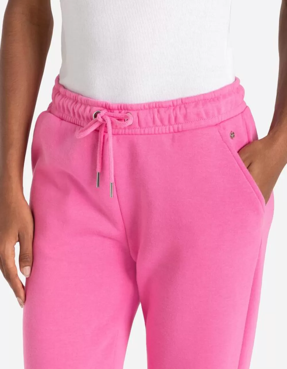 PinkEffenRegular WaistNormale LengteSweatstofKoordElastische BandMetallic DetailsTunnelkoord In De Zoom