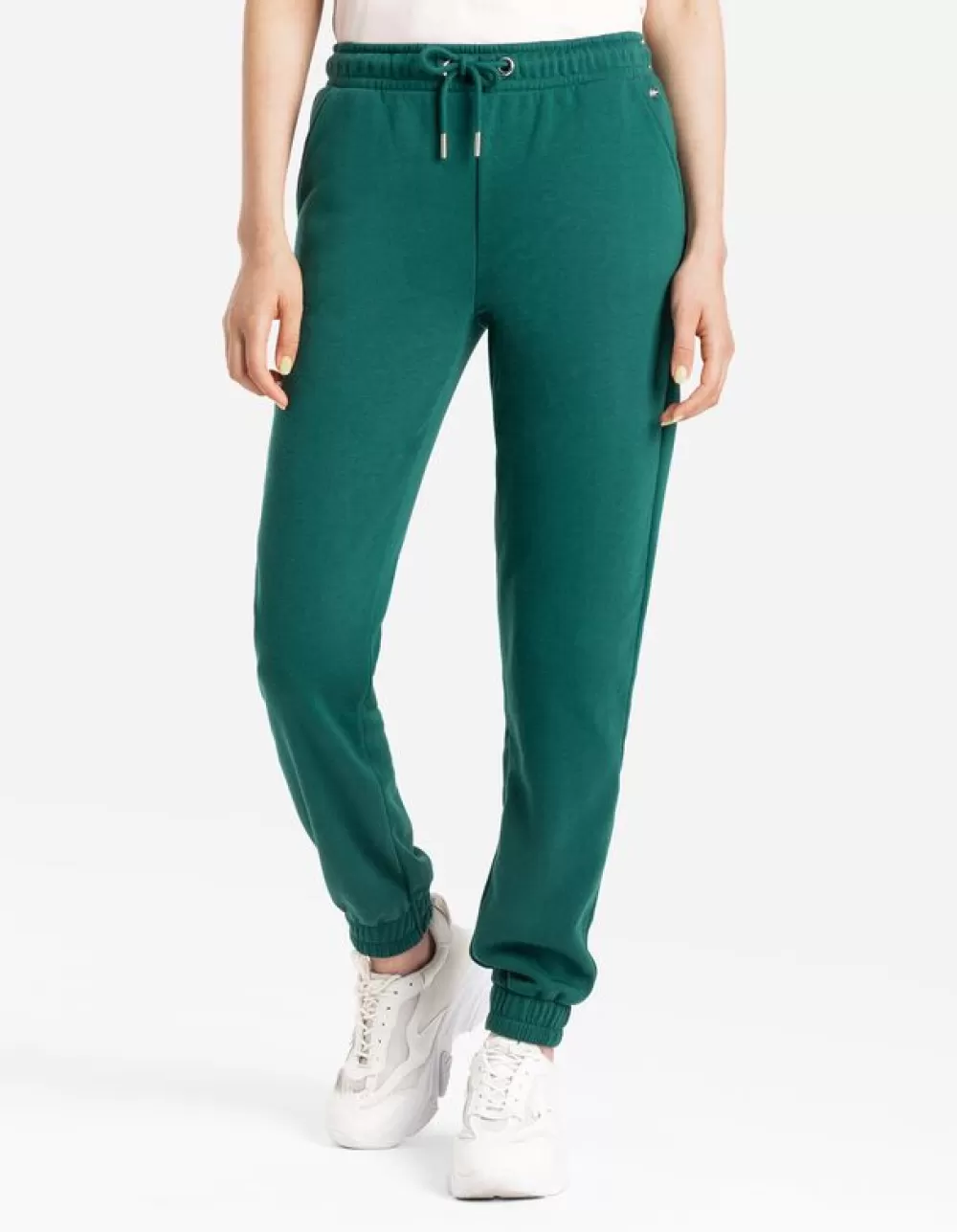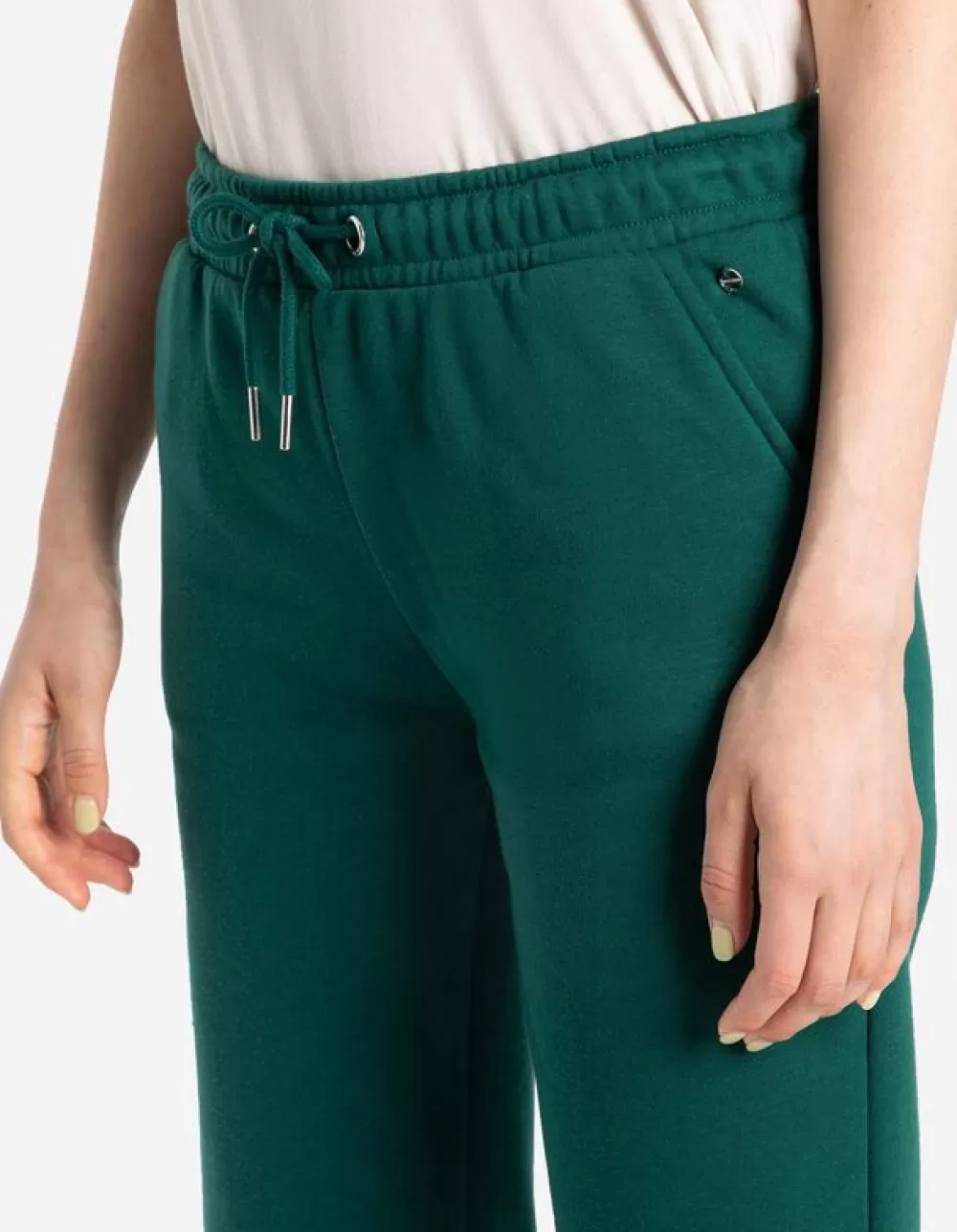 DonkergroenEffenRegular WaistNormale LengteSweatstofKoordElastische BandMetallic DetailsTunnelkoord In De Zoom