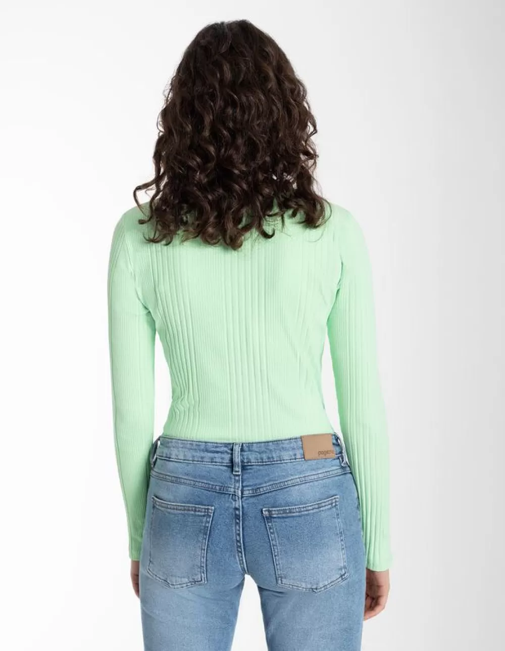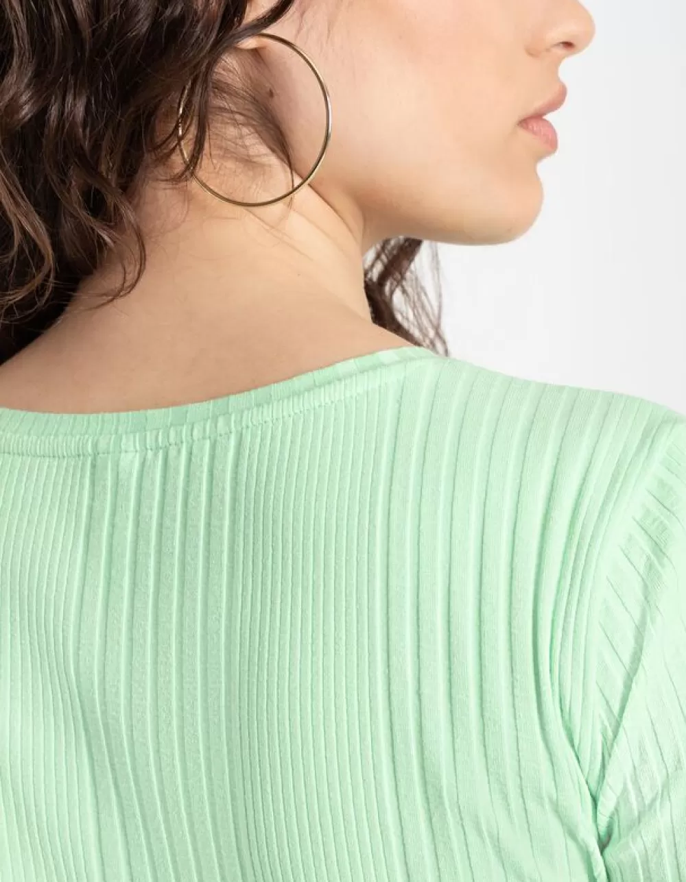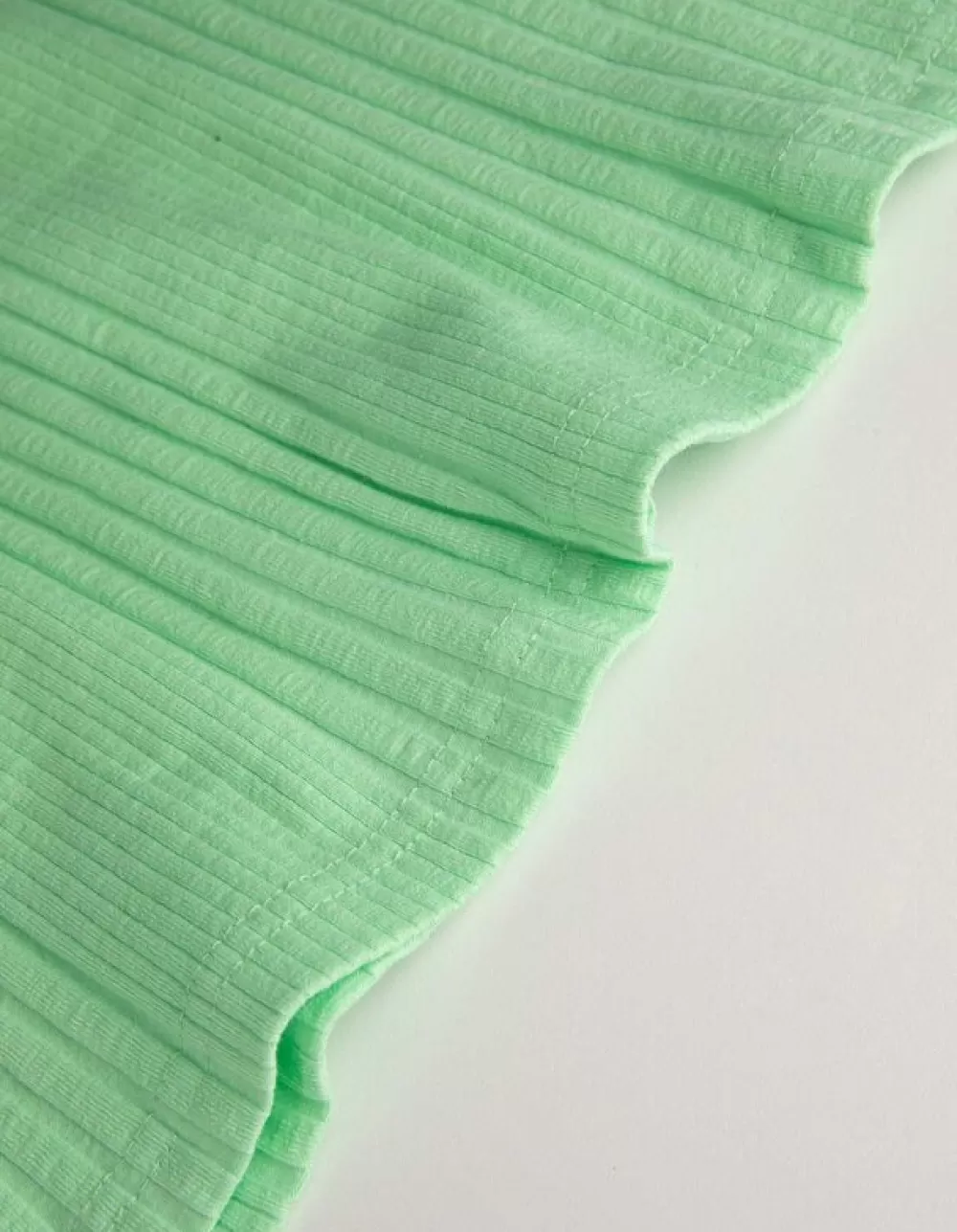 LichtgroenEffenRonde HalsLange MouwenJerseyGeribde Structuur