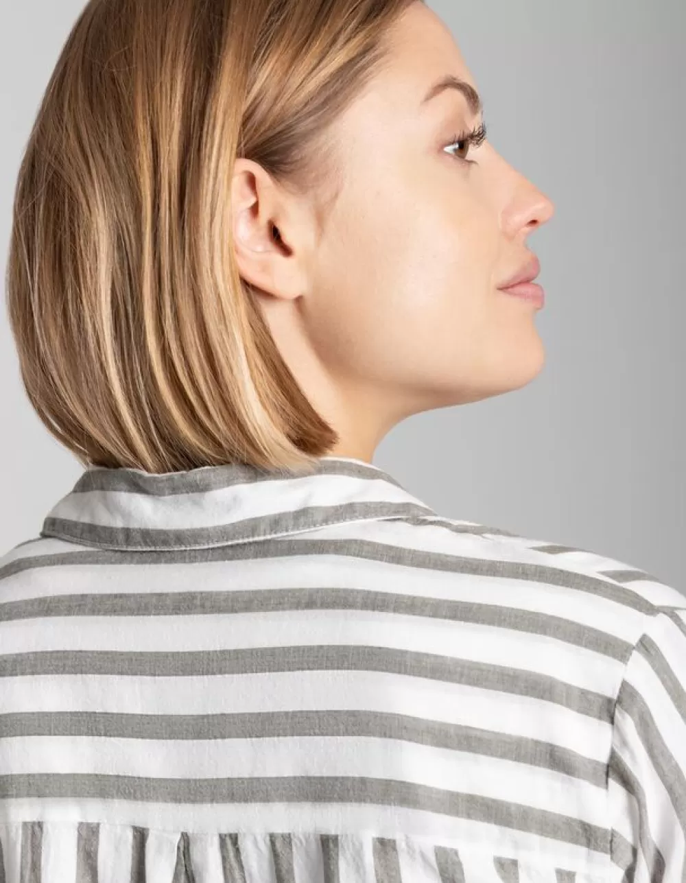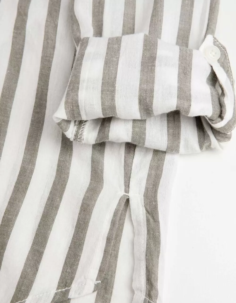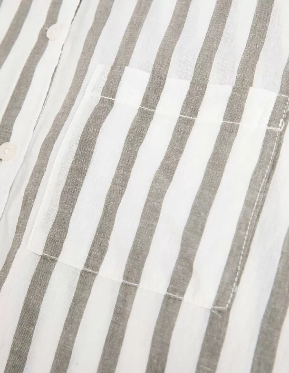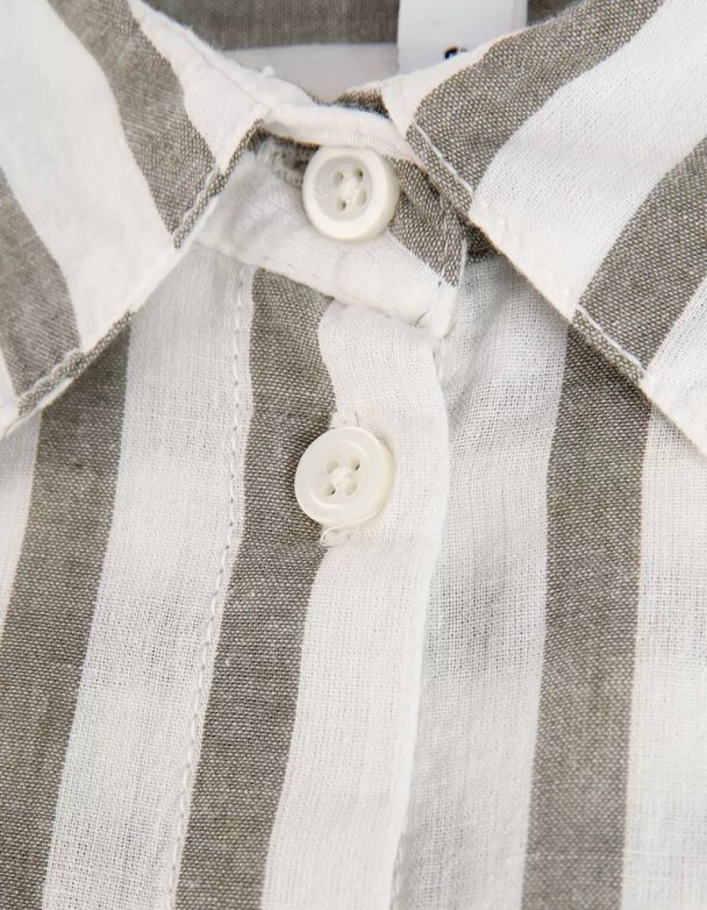 DonkergroenStrepenRonde HalsLange MouwenKatoenKnoopsluitingBorstzak