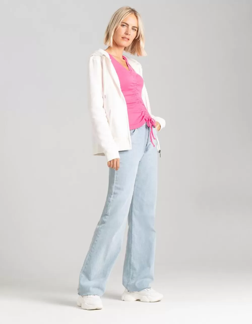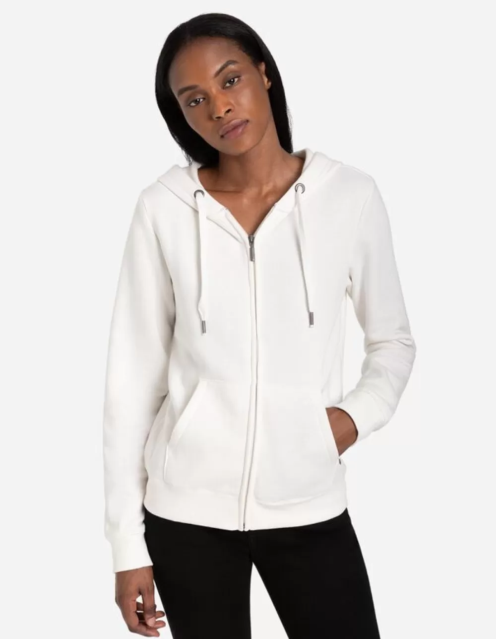 WitEffenKapLange MouwenSweatstofRitssluitingCapuchonMetallic DetailsKangoeroezak
