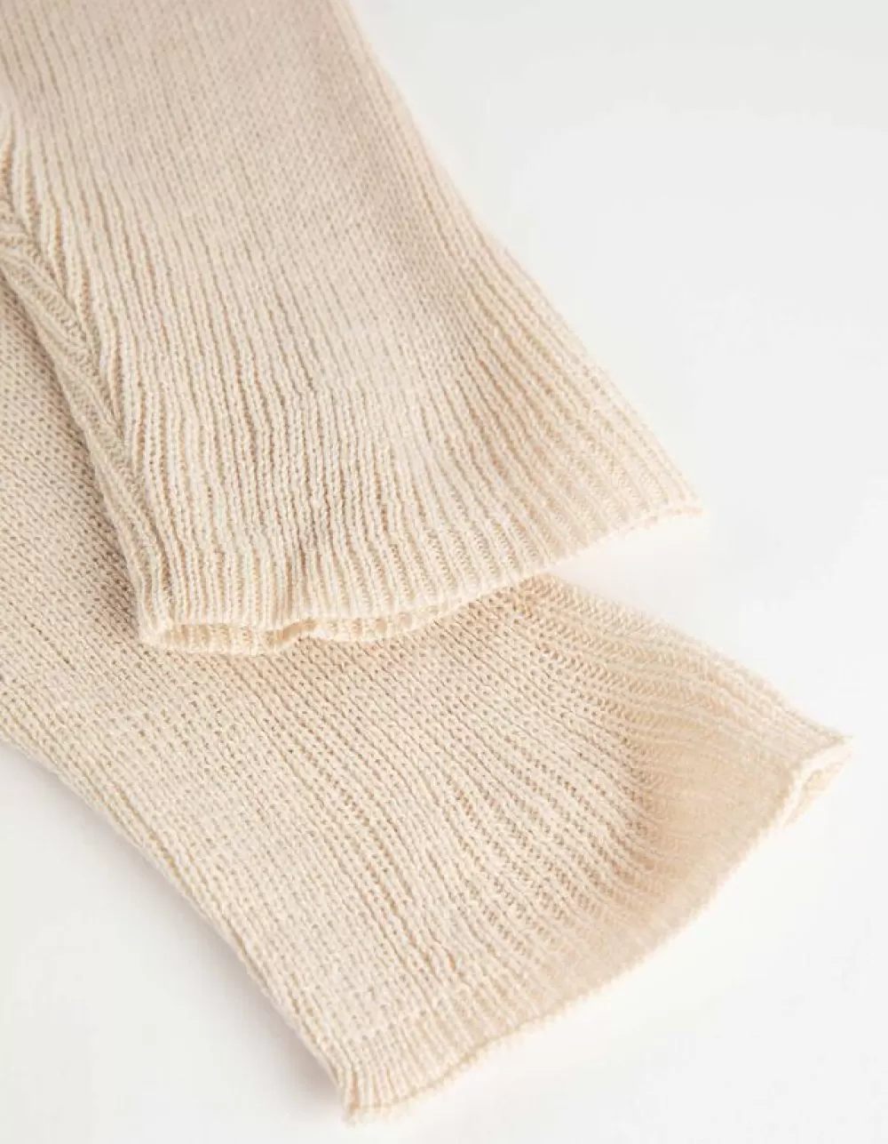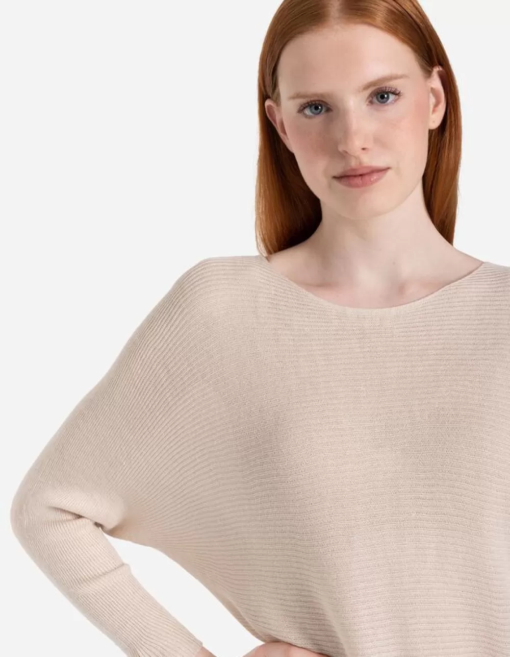 BeigeEffenRonde HalsVleermuismouwenFijn BreiselZonder SluitingElastische RandenGeribde StructuurMet Stretch