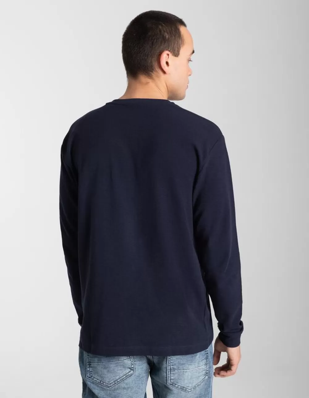DonkerblauwEffenV-HalsLange MouwenKatoenLabel