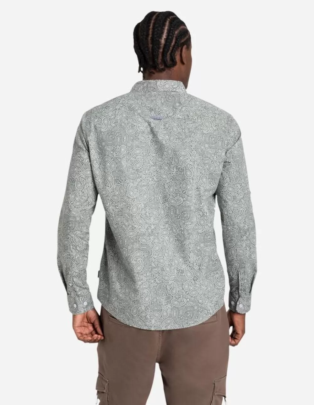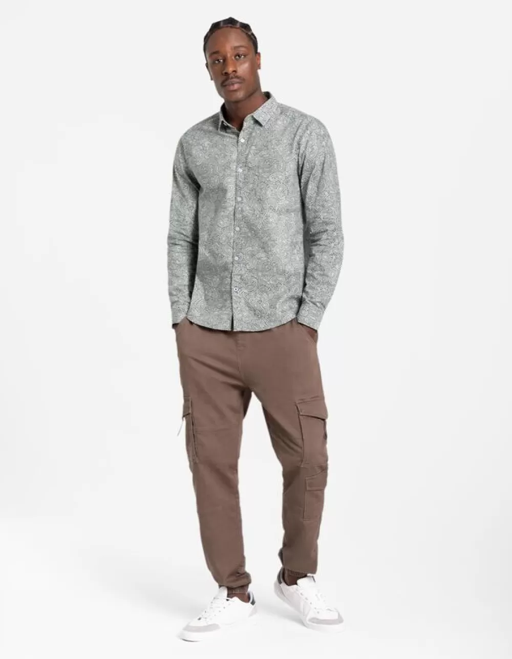 DonkergroenMotief All-OverOverhemd KraagVerstelbare MouwlengteKatoenKnoopsluitingElastische Randen