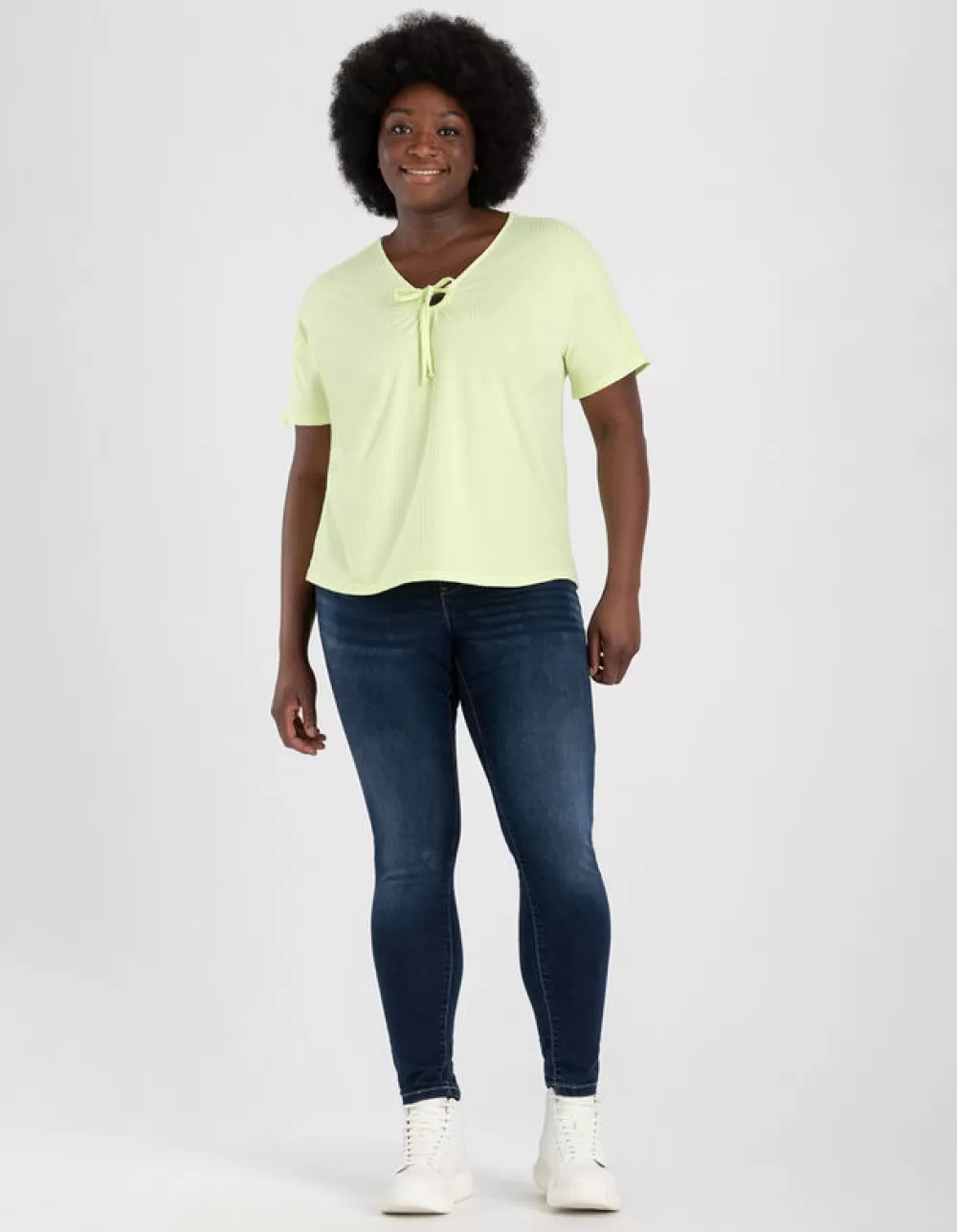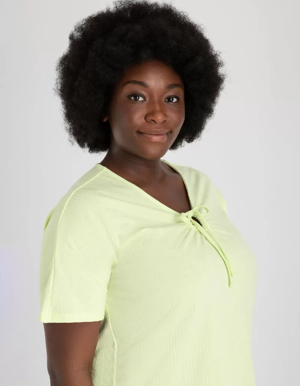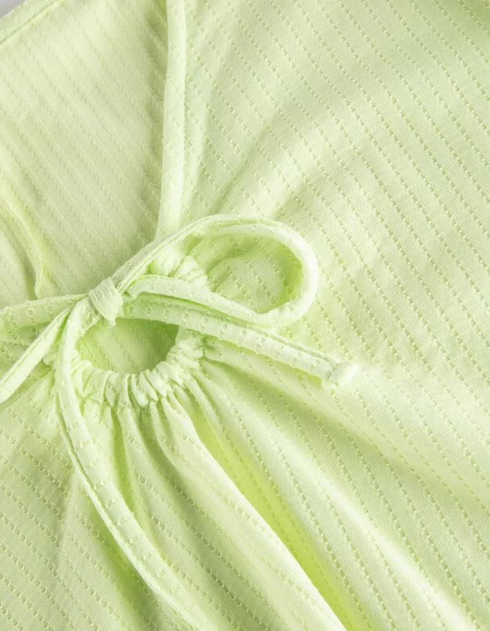 LichtgroenEffenHals Met Cut-OutOversized MouwenViscoseVetersluitingMet Stretch