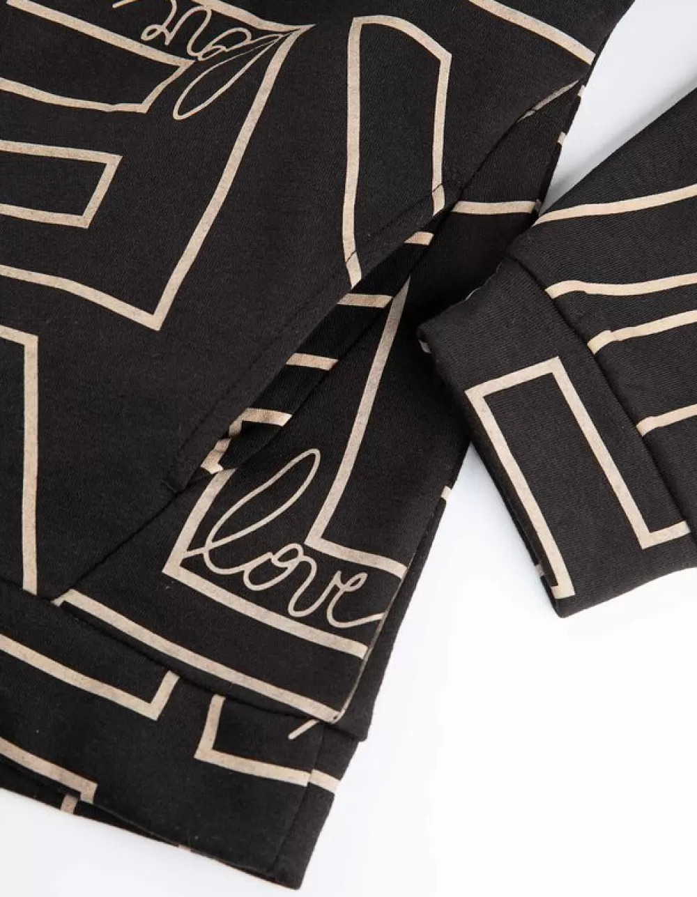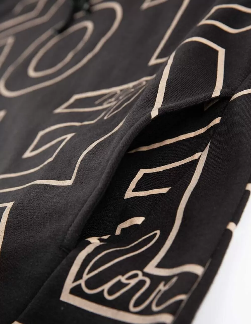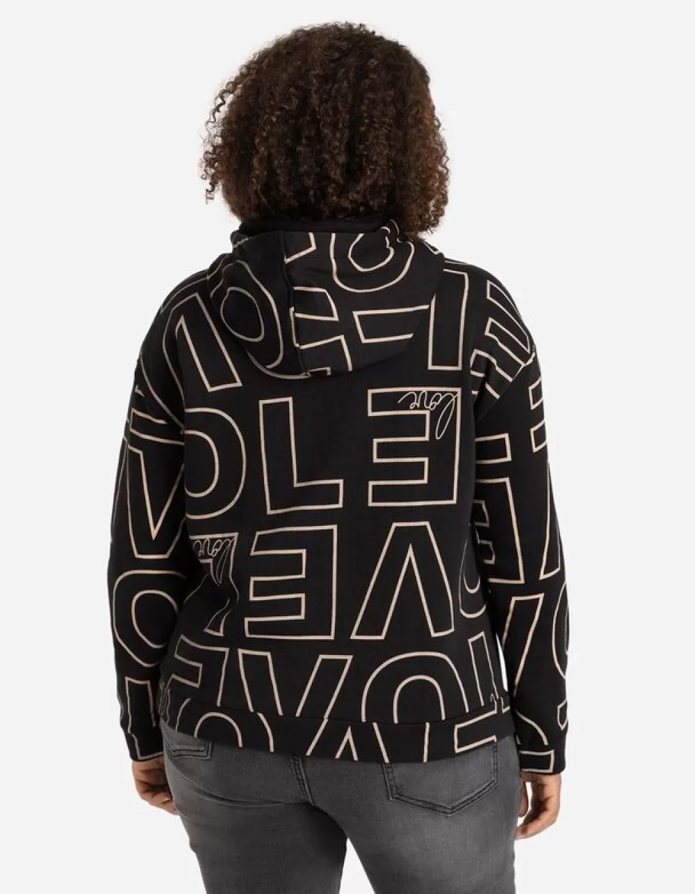 ZwartMotief All-OverKapLange MouwenSweatstofKoordCapuchon Met TunnelkoordSteekzakken