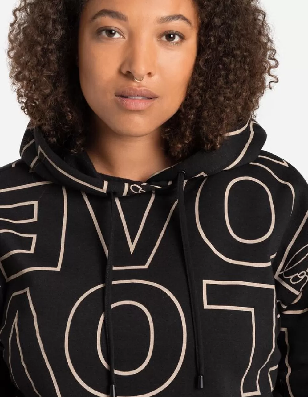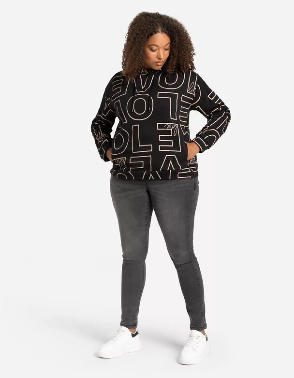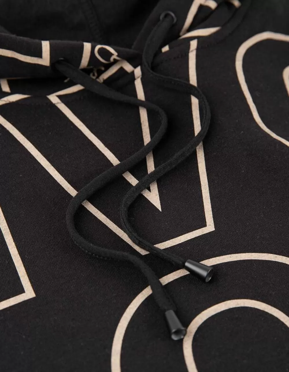 ZwartMotief All-OverKapLange MouwenSweatstofKoordCapuchon Met TunnelkoordSteekzakken