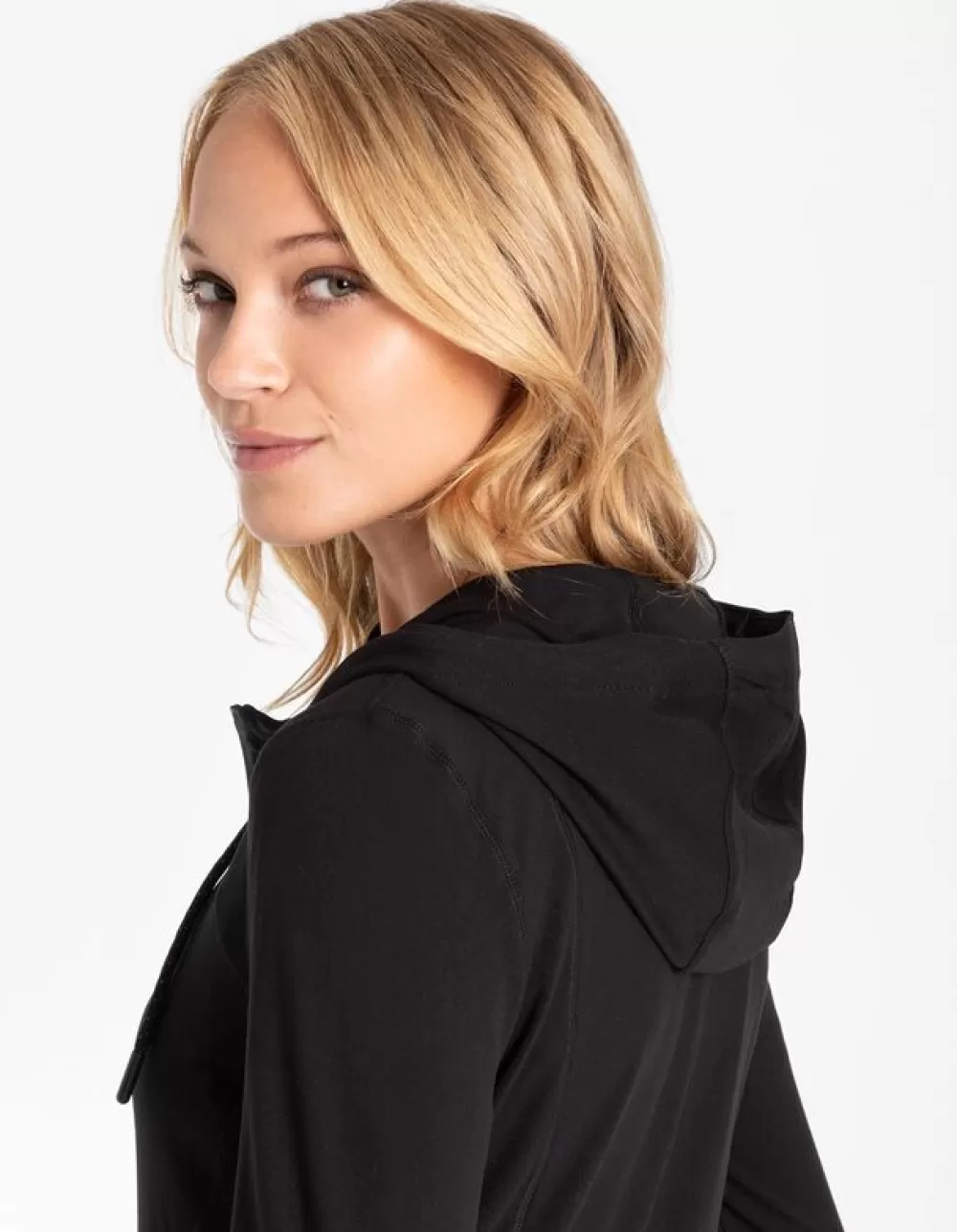 ZwartEffenKapLange MouwenMateriaalmixRitssluitingAdemendMet StretchZachte Touch