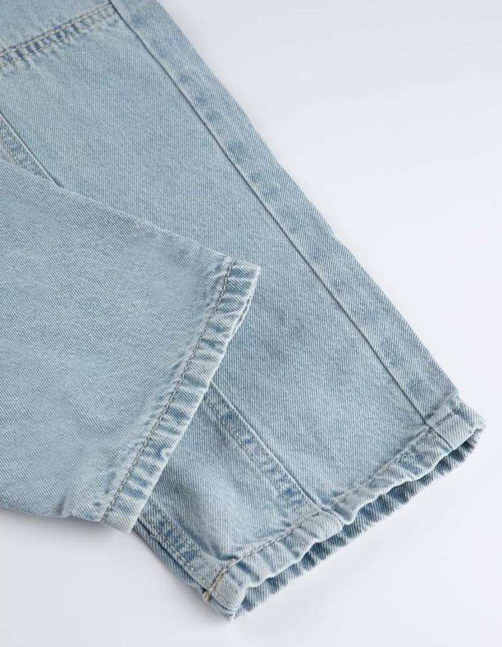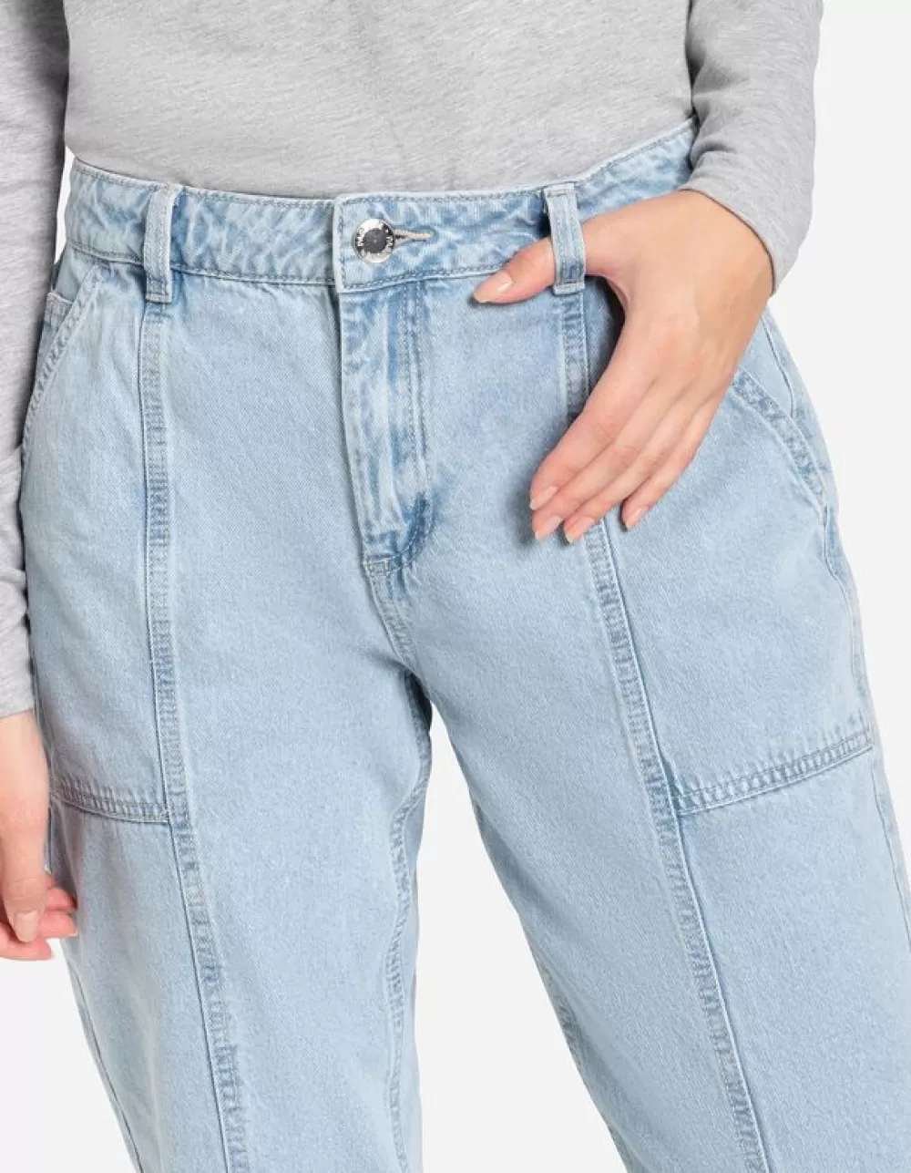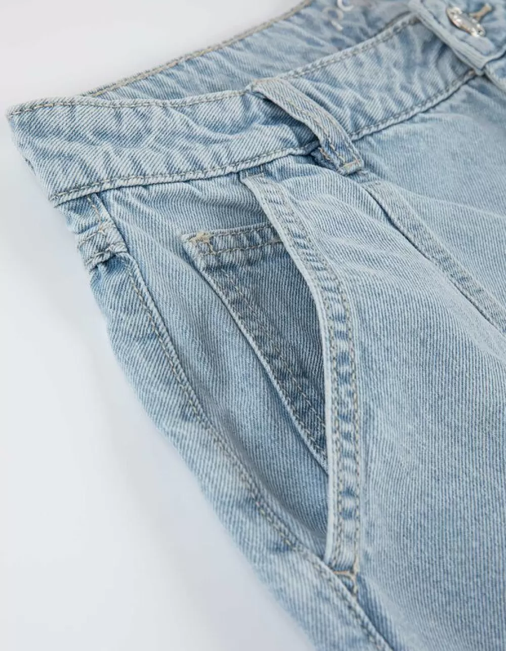 LichtblauwLichtblauw DenimHoge TailleWaseffectenEnkellengteDenimKnoop- En RitssluitingSteekzakkenRiemlussen
